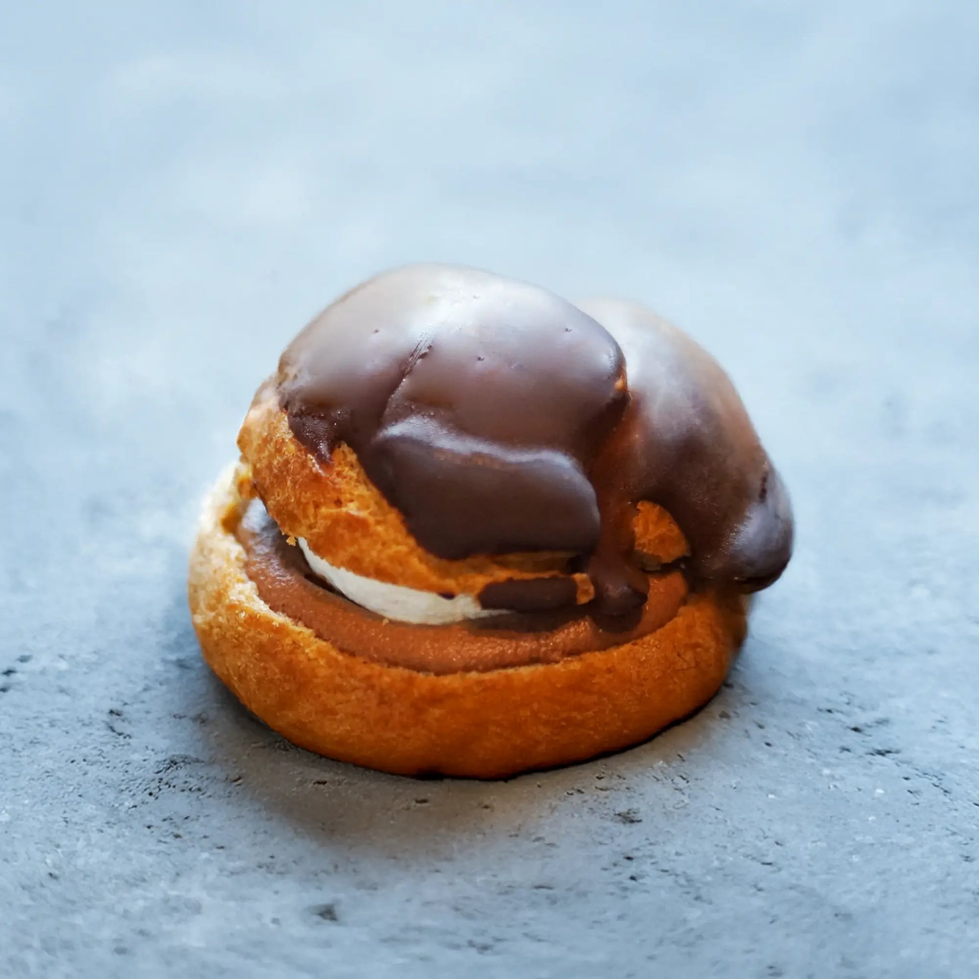 中身には、フスボン独自のチョコカスタードクリームを使用し、カカオマスとバターを贅沢に使い、濃厚ながらも甘さ控えめに仕上げています。