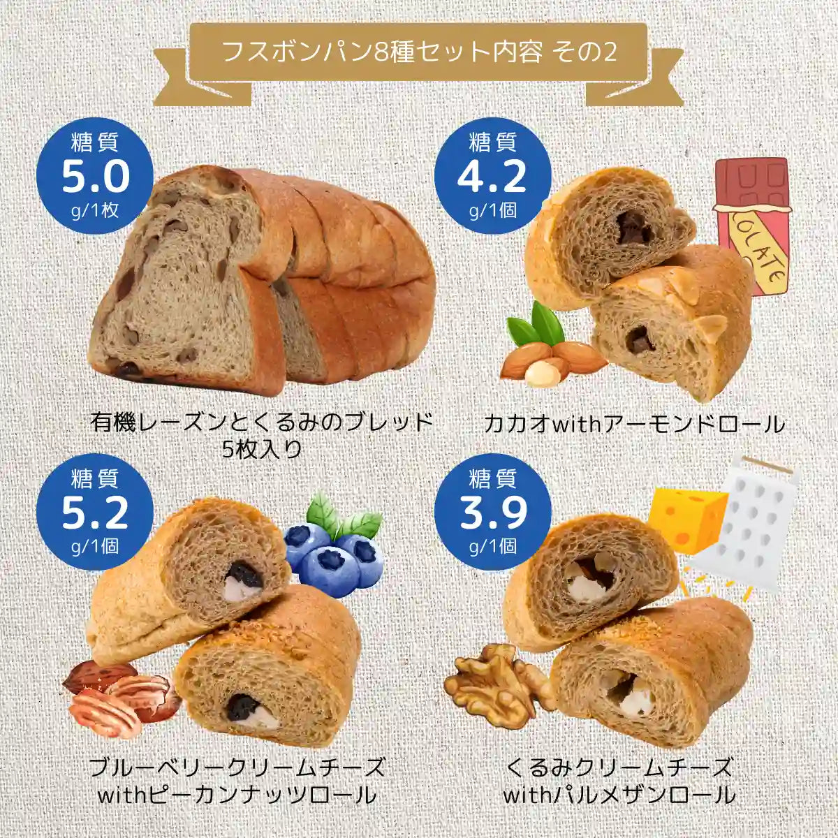 ■フスボン低糖質パン8種セット 内容