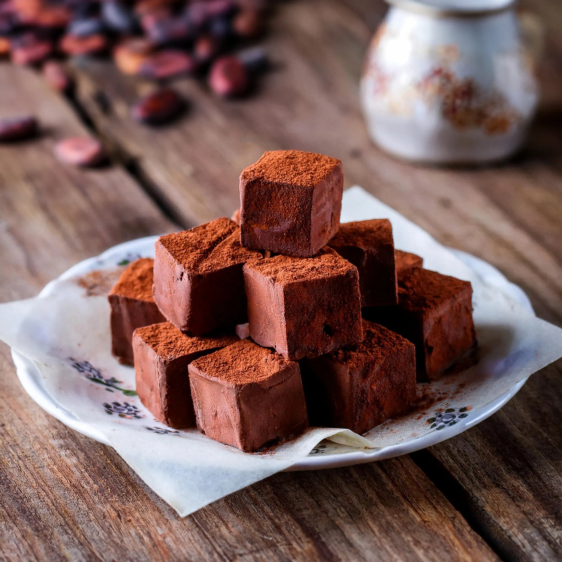 冬季限定で登場するフスボンの「生チョコレート」は、上質なカカオマスとカカオバターを贅沢に使用し、濃厚で滑らかな口どけを実現しました。カカオの深い香りとともに、ひと口で広がるまろやかな風味が、冬の季節にぴったりの特別なひとときをお届けします。