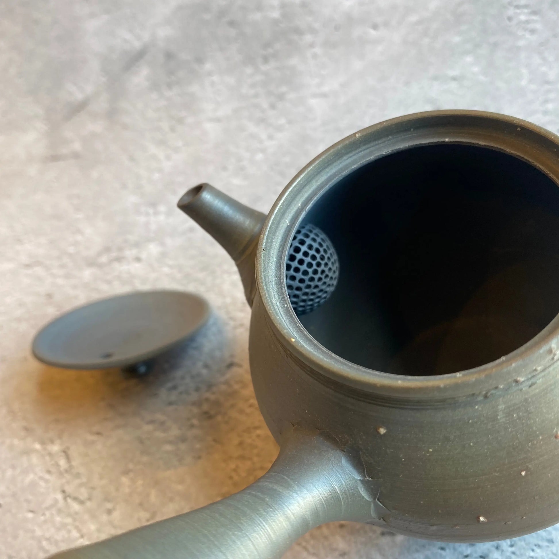 茶こし部分には細かな穴が整然と配置されており、お湯の切れが良く、茶葉の旨味を余すことなく引き出します。常滑焼を生かし、美しさと実用性を兼ね備えて精製された急須は、日常の茶の時間をより豊かに彩ることでしょう。