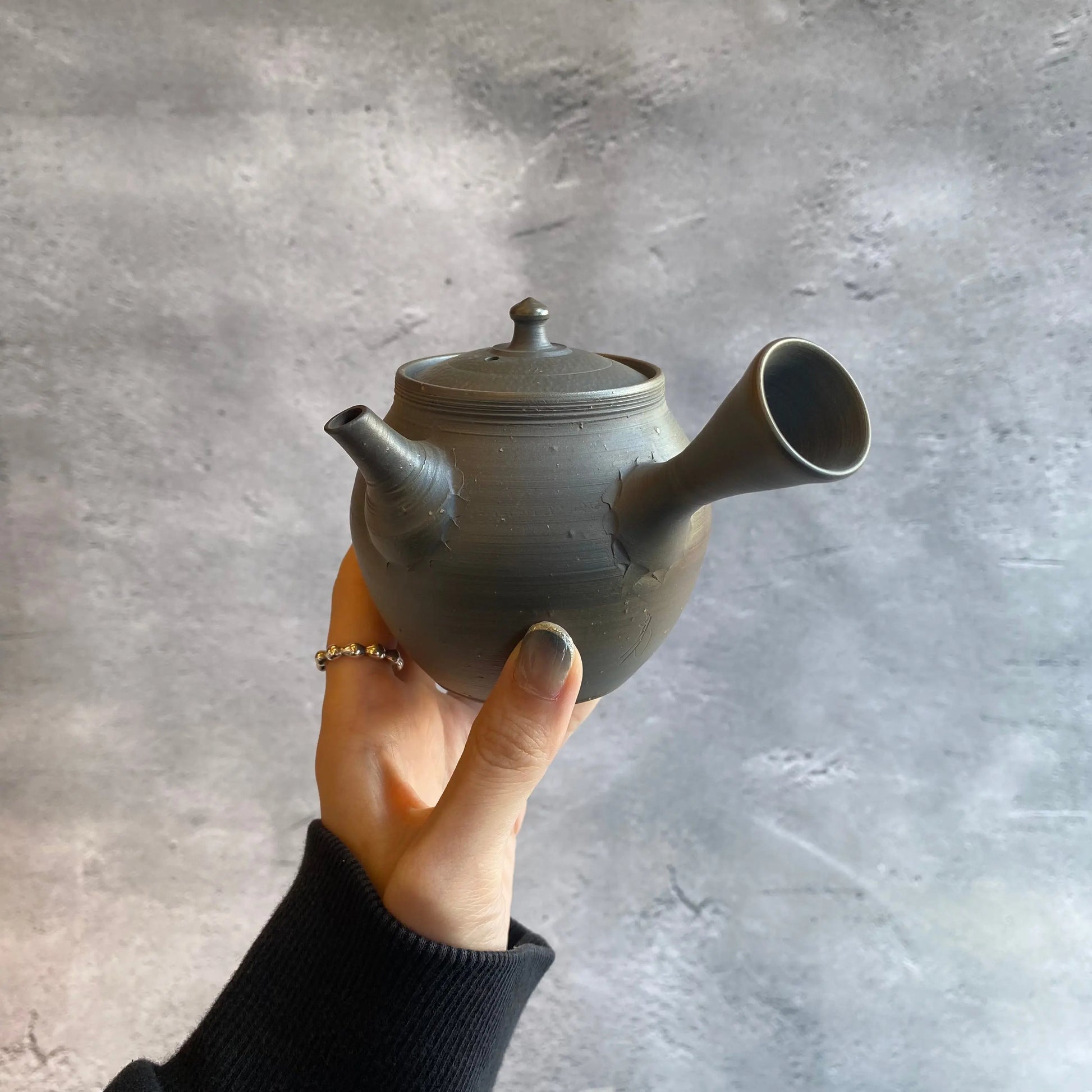 山田 勇太朗氏の急須は、常滑焼の伝統を大切にしながらも、現代的な感覚を加えた洗練されたデザインが特徴です。手に取った瞬間、その軽さと精緻さに驚かされます。軽く、薄く仕上げられた急須は、驚くほどのフィット感を提供し、手に馴染むその感触は、まるで自分の手の延長のように感じられます。