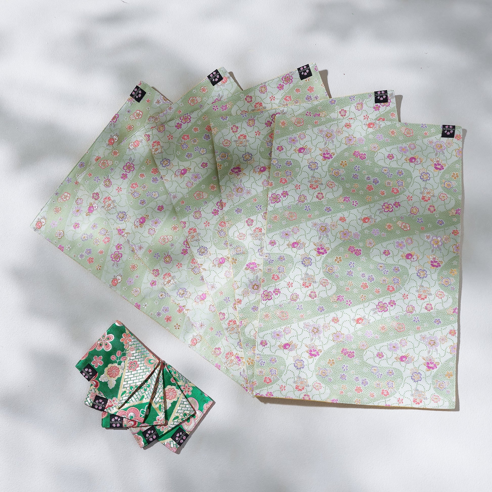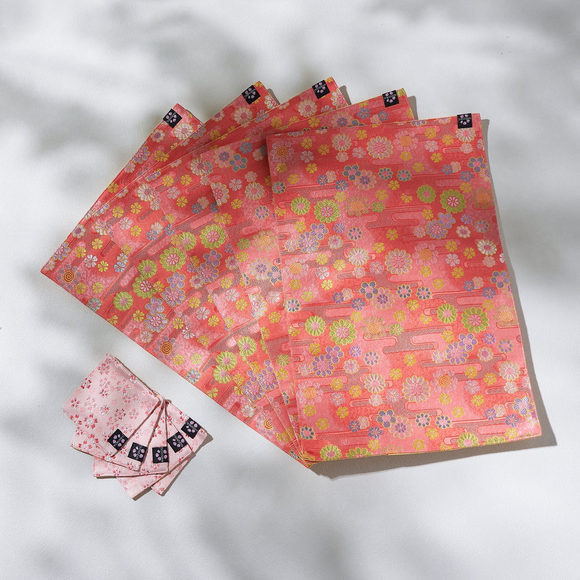 金襴のランチョンマット、コースターの組み合わせは、日常をそっと彩る和の贈り物。