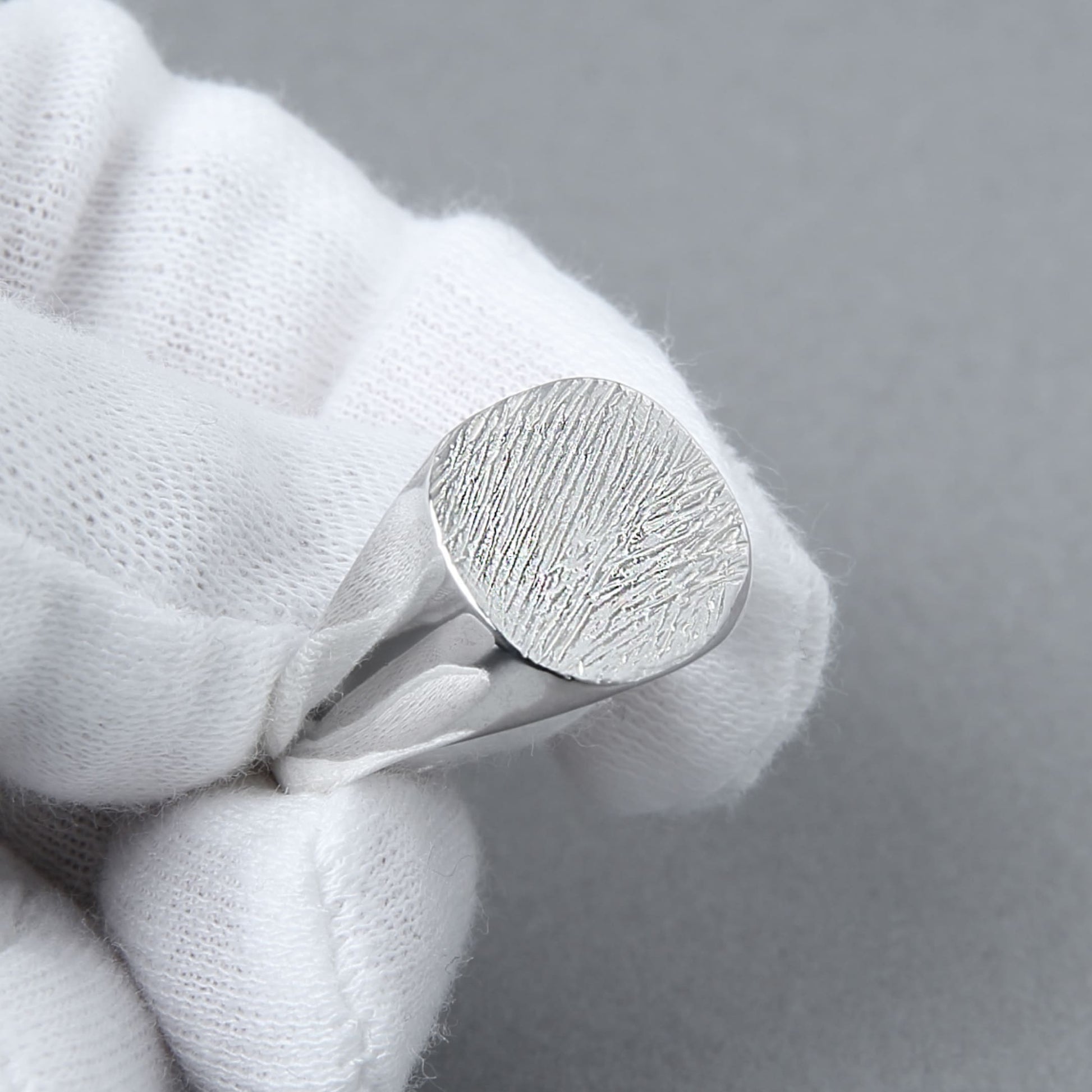 トップに無数の傷のようなデザインを加えることで、時間が経つにつれ溝部分にのみ硫化によって起こる黒色の変色が残るようになります。