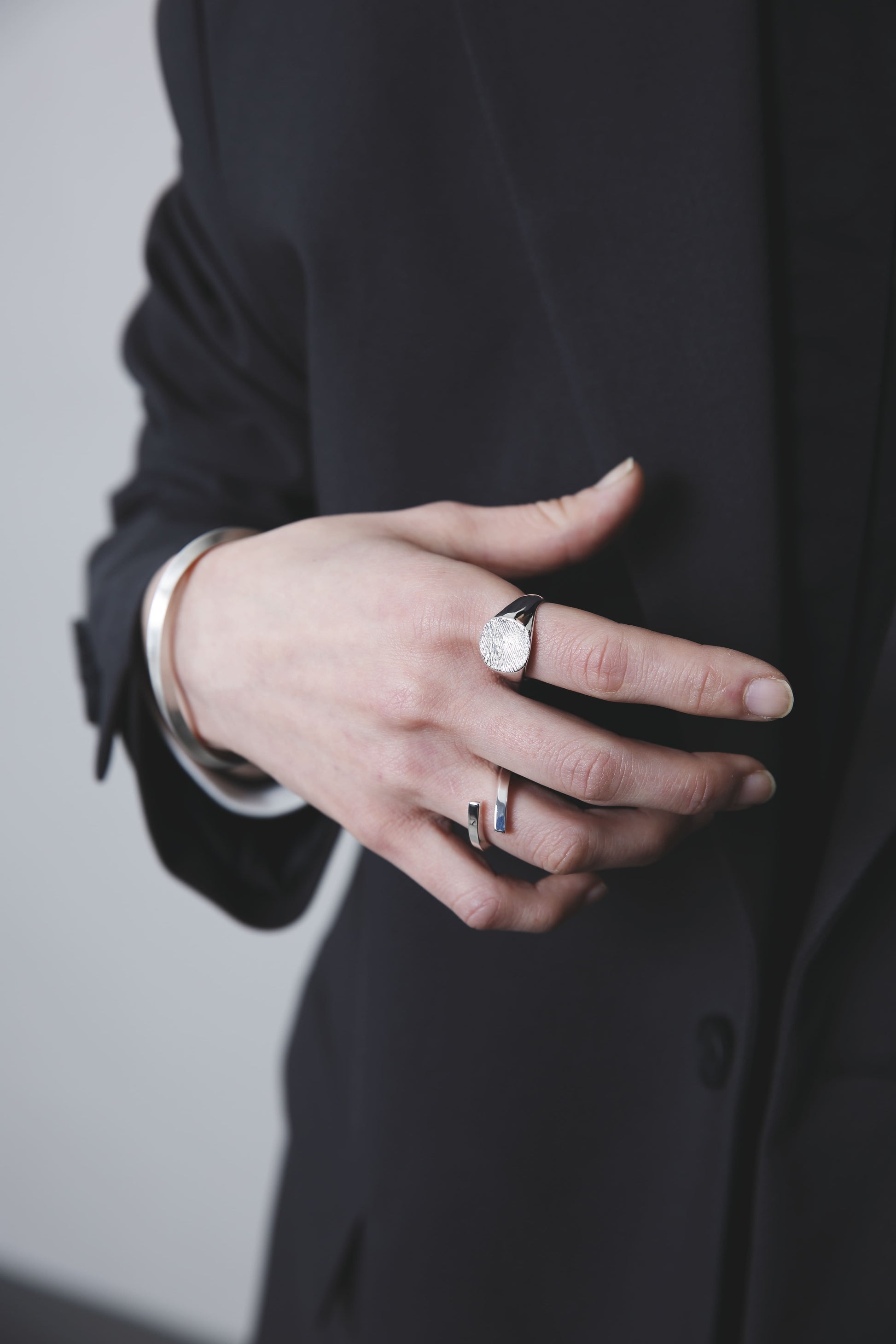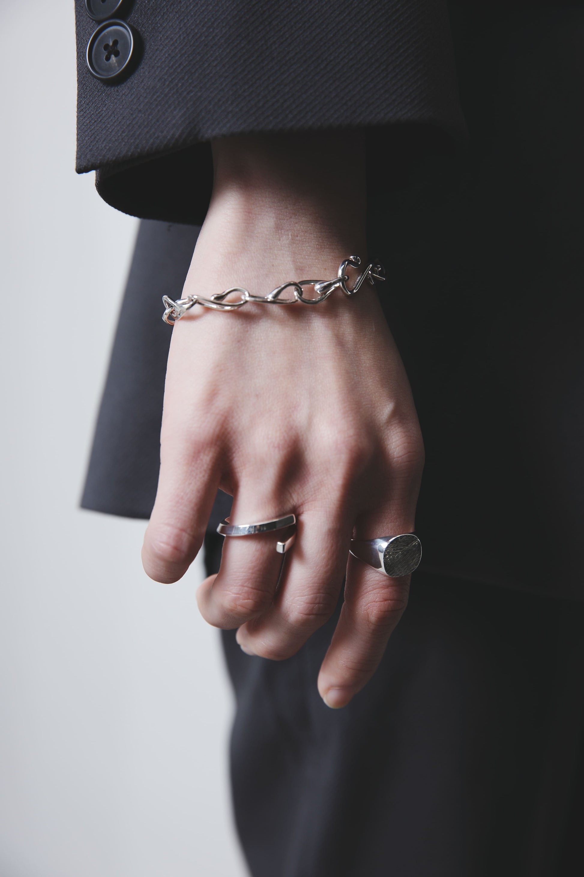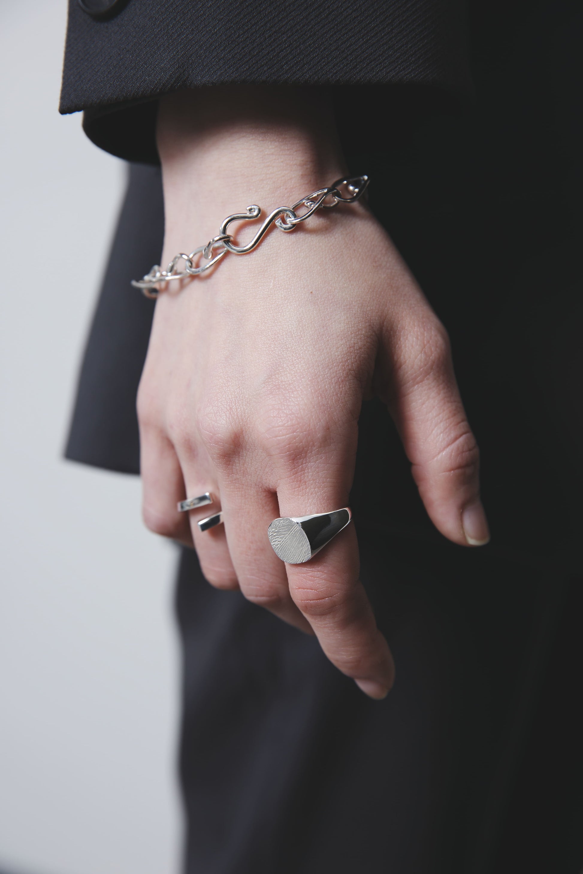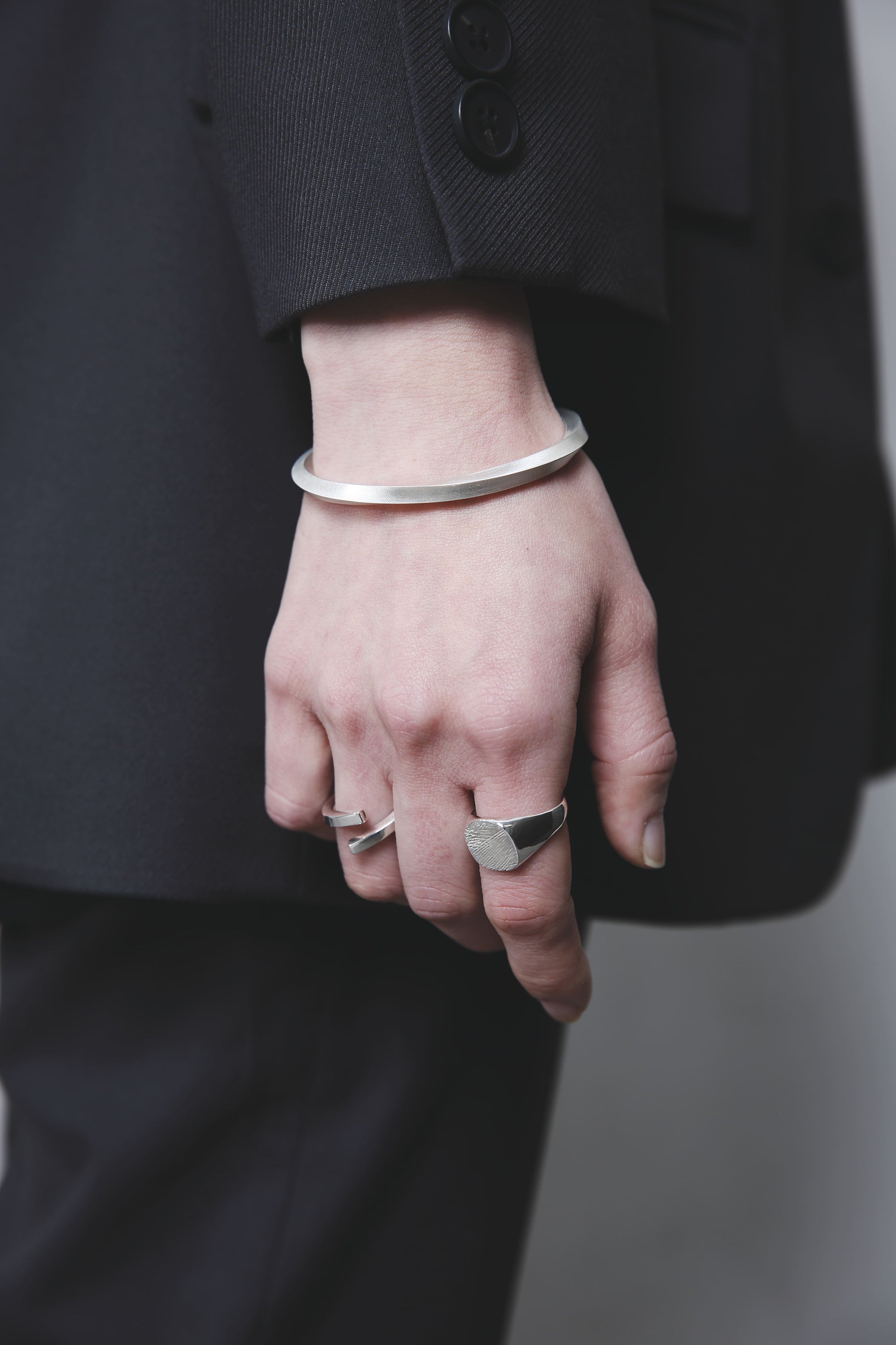 スターリングシルバー独特の重みや滑らかな手触りをお楽しみいただけるよう、裏抜きはせずしっかりと重量感を出しました。