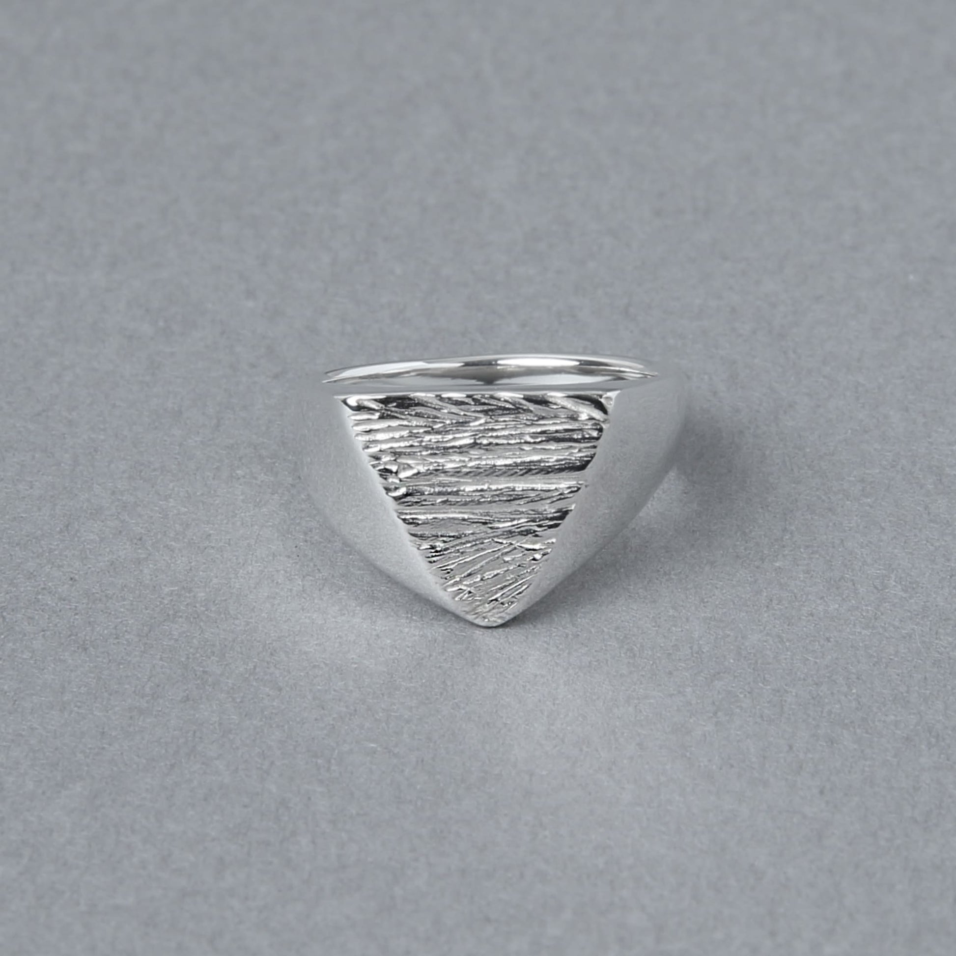 トップに無数の傷のようなデザインを加えることで、時間が経つにつれ溝部分にのみ硫化によって起こる黒色の変色が残るようになります。