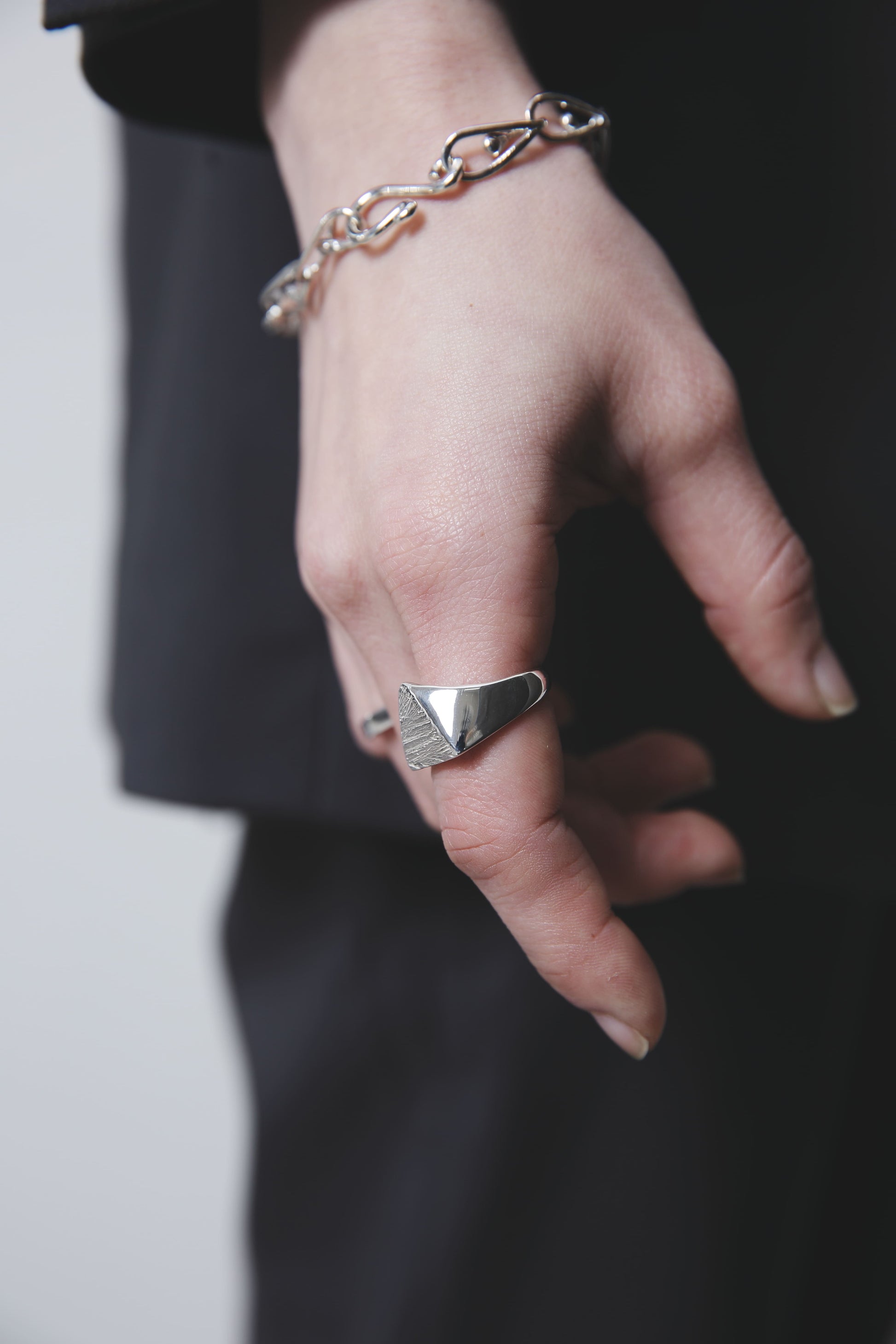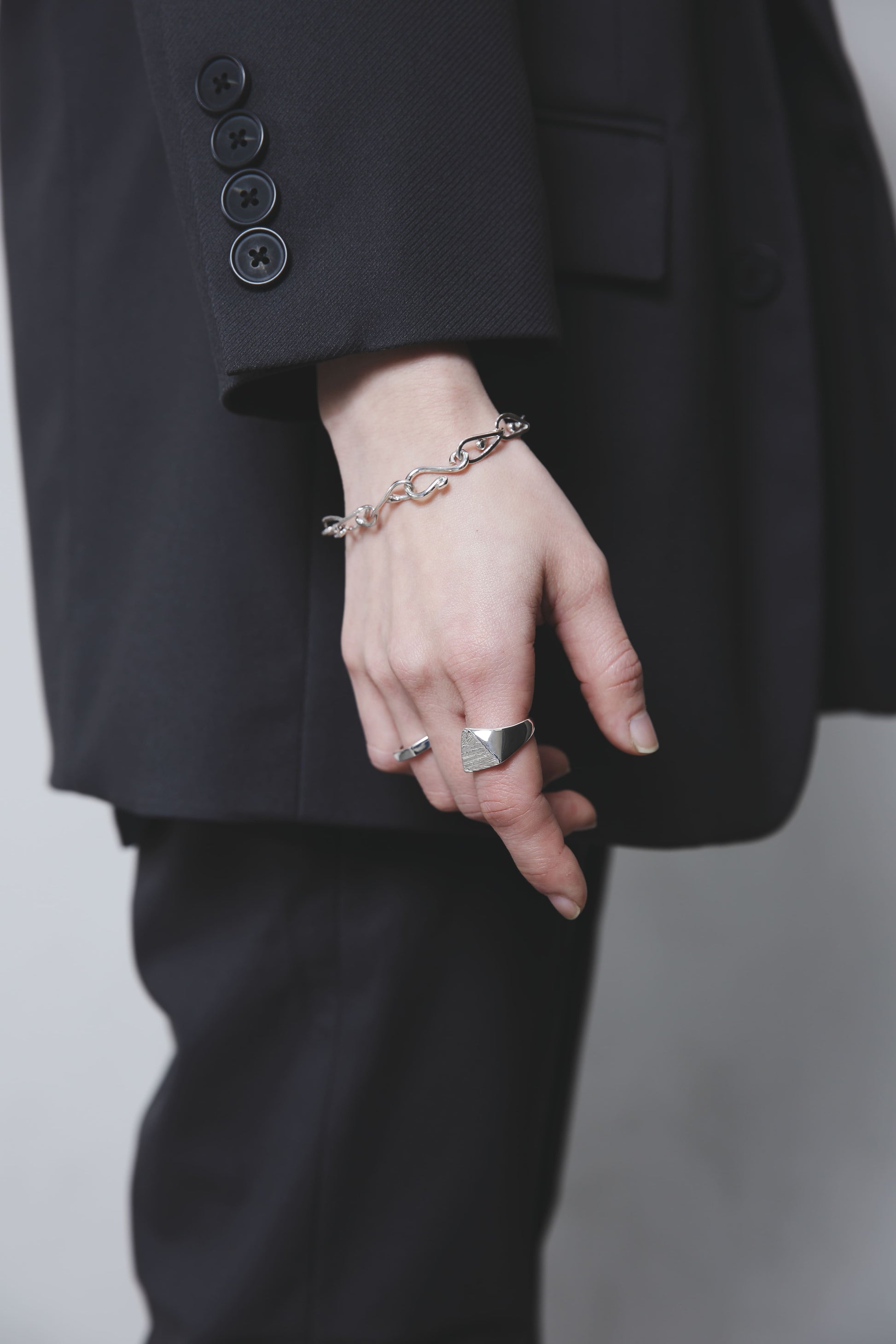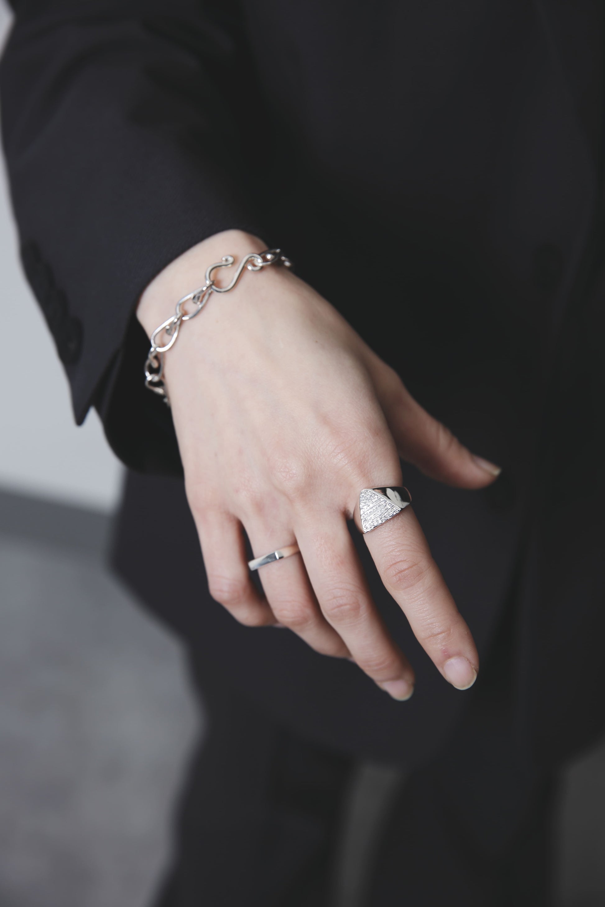 スターリングシルバー独特の重みや滑らかな手触りをお楽しみいただけるよう、裏抜きはせずしっかりと重量感を出しました。