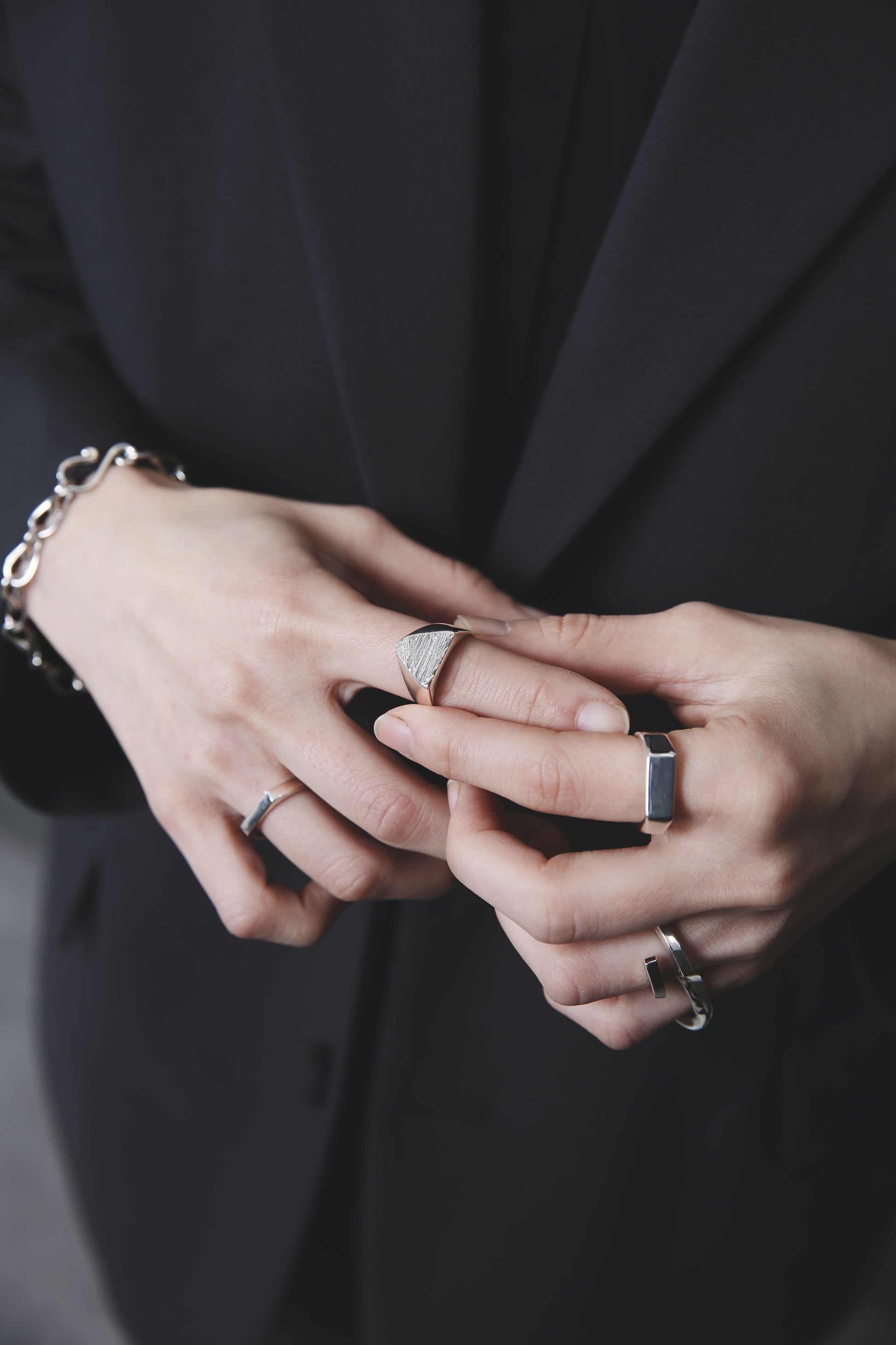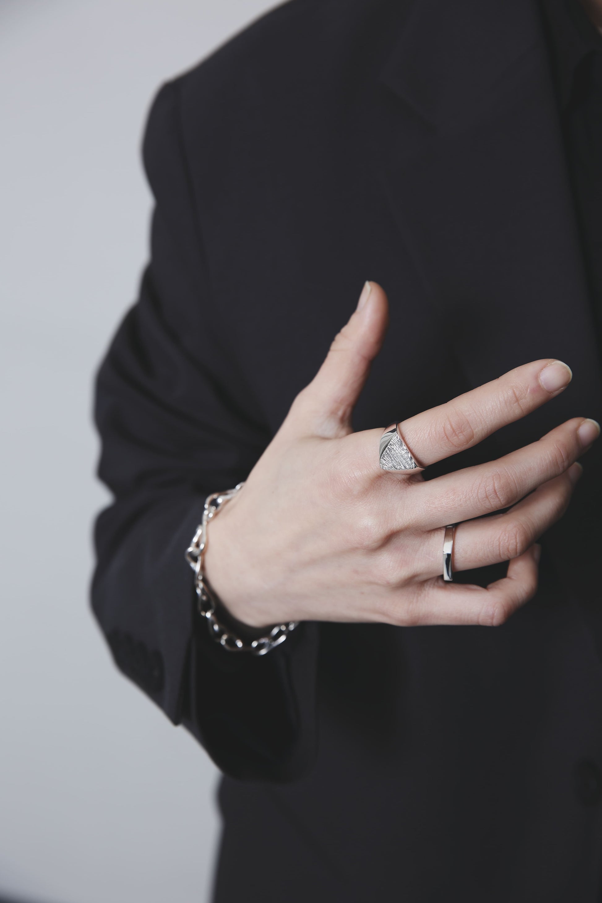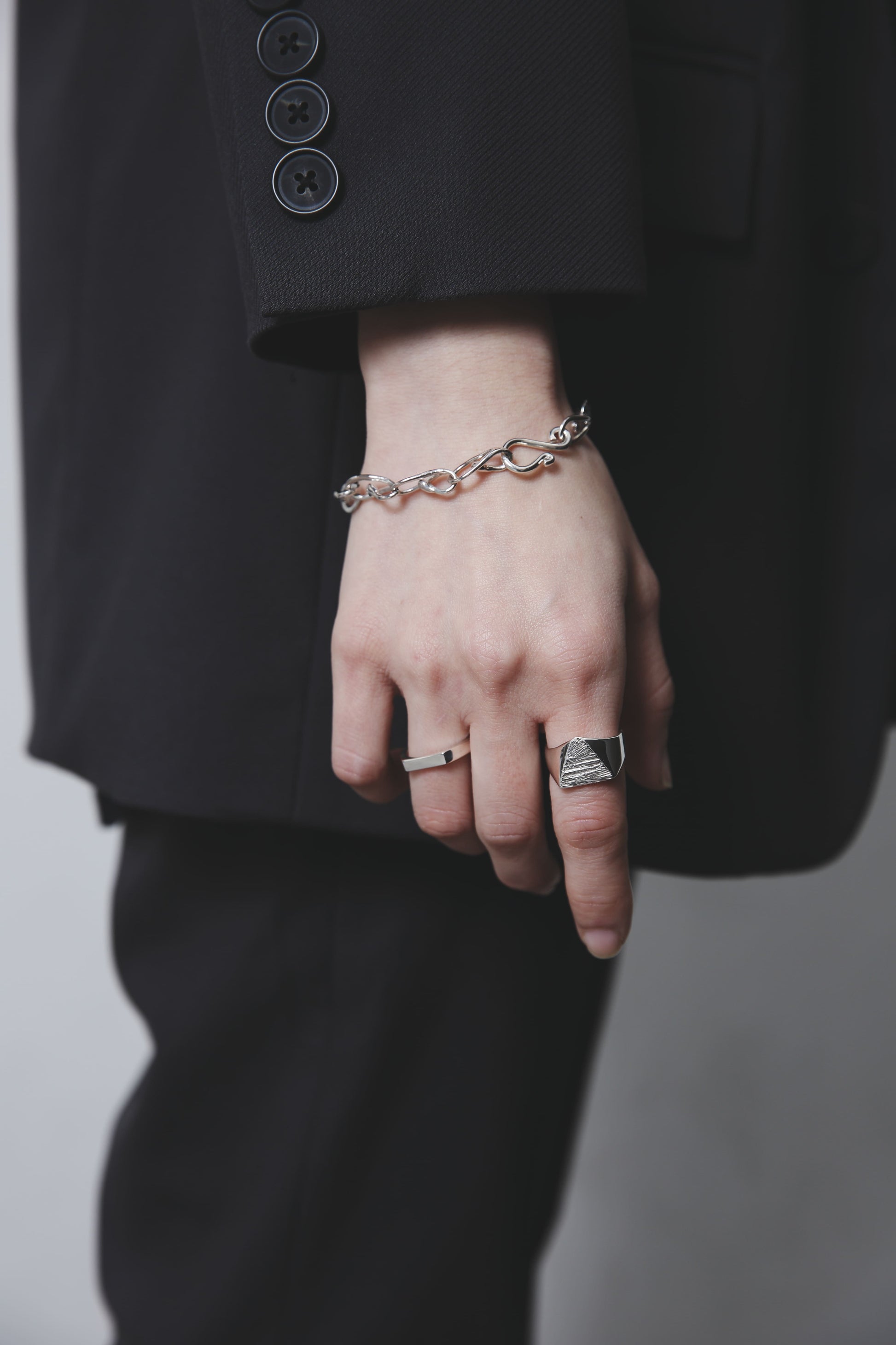 スターリングシルバー独特の重みや滑らかな手触りをお楽しみいただけるよう、裏抜きはせずしっかりと重量感を出しました。