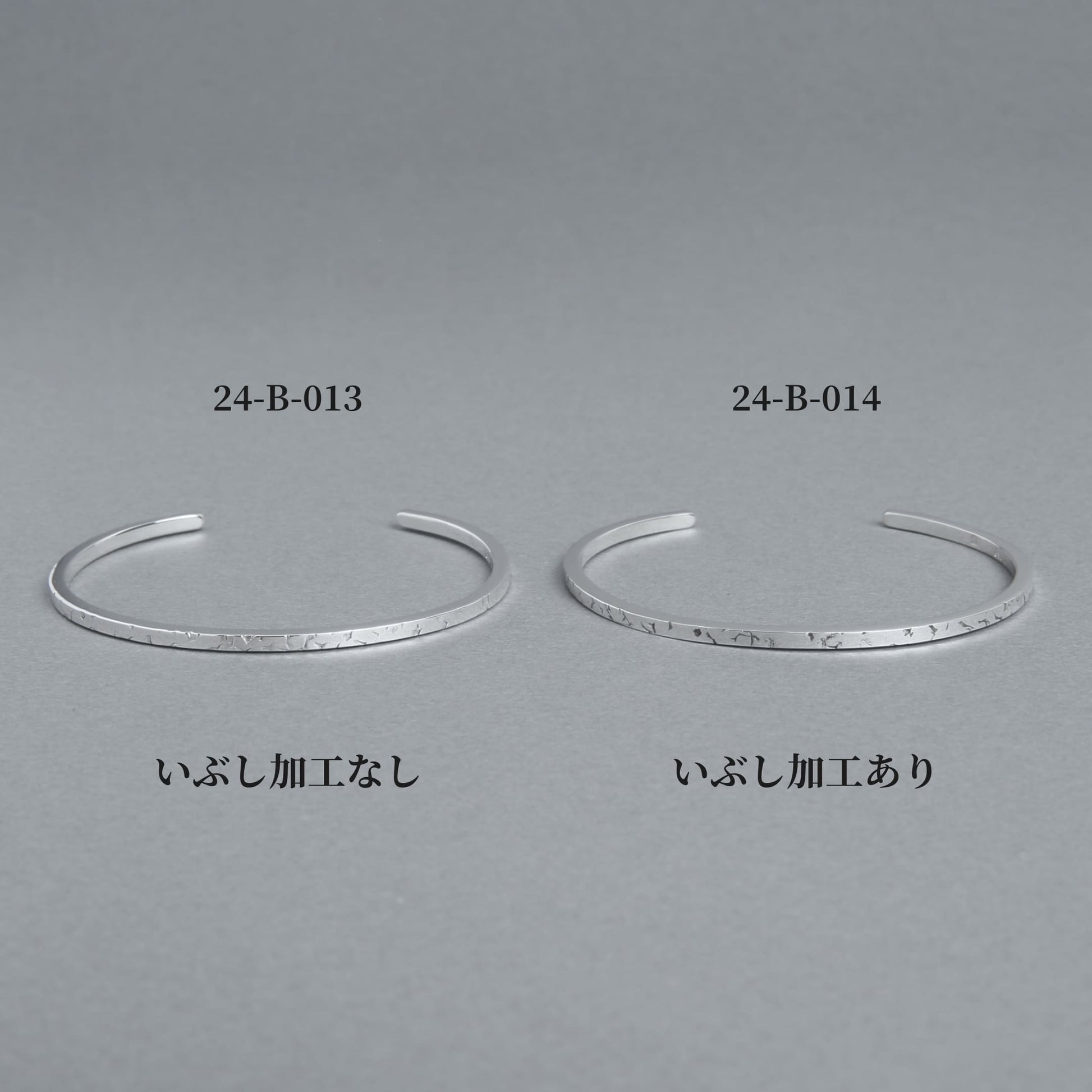▼同じデザインで叩き上げ模様にいぶし加工なしのバングルもご用意しております。よろしければご覧ください。