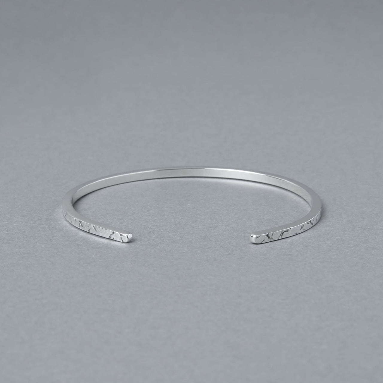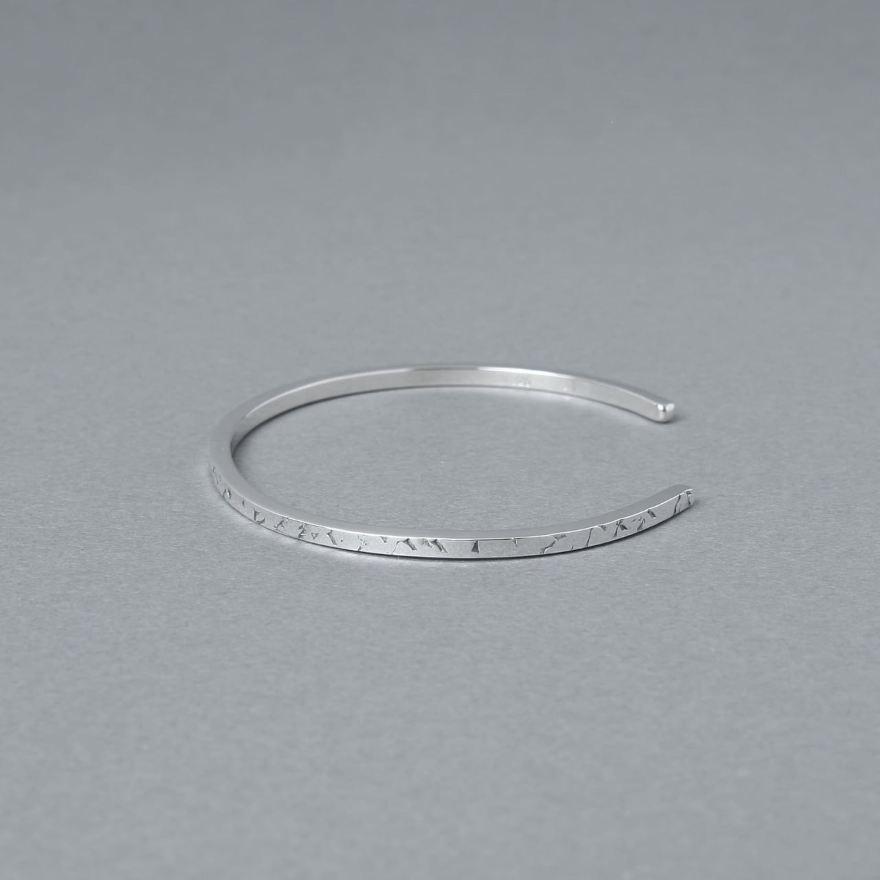 幅約2mmの細い角棒を使用し、華奢なデザインに仕上げたバングルです。
