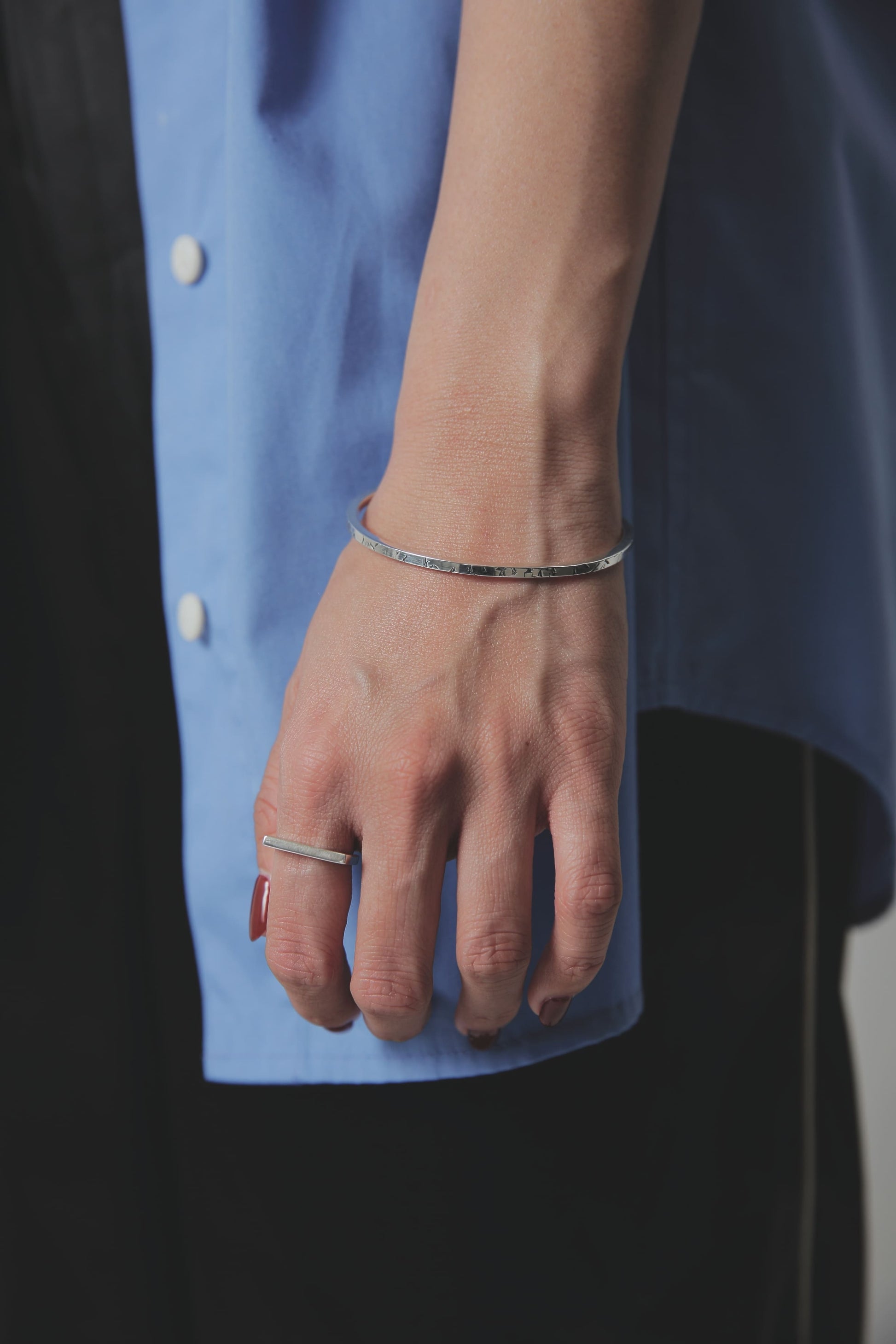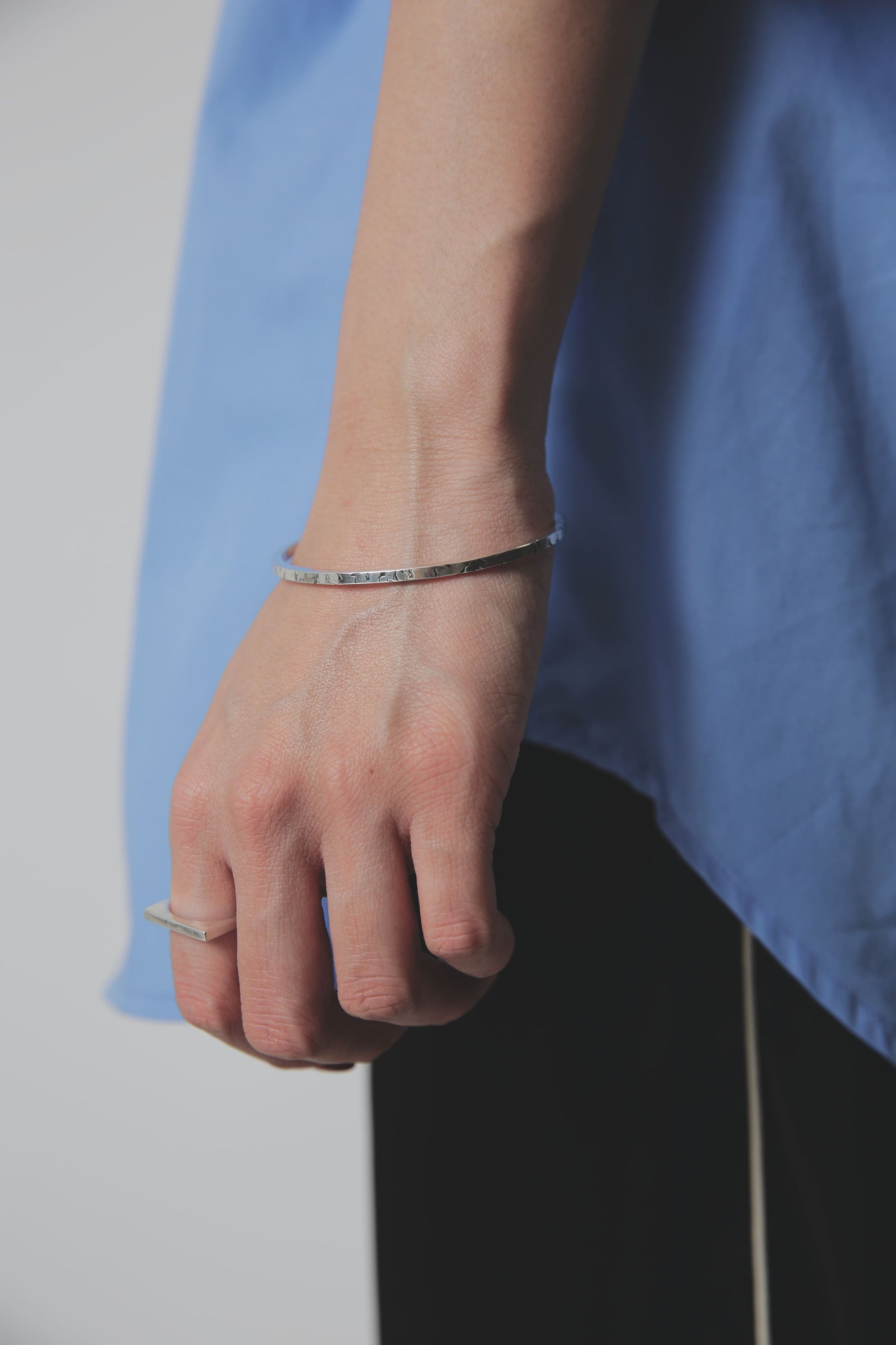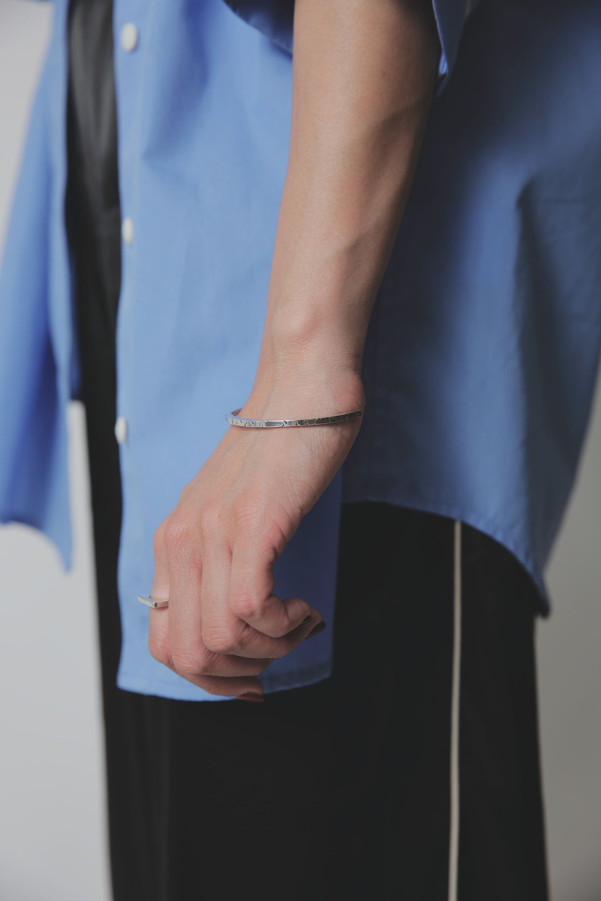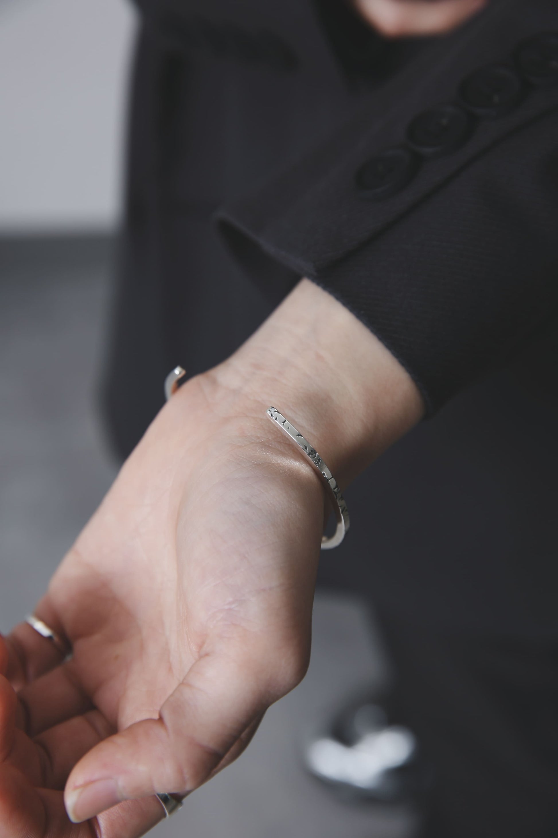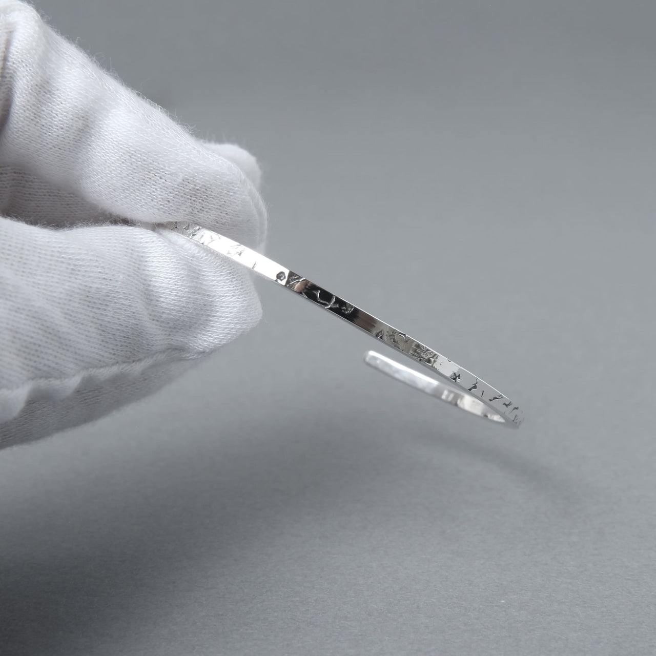 バングルを着けなれていない方や、腕でバングルが動いてしまうのが気になるという方も、これくらい華奢なバングルであればそこまで気にならないかもしれません。