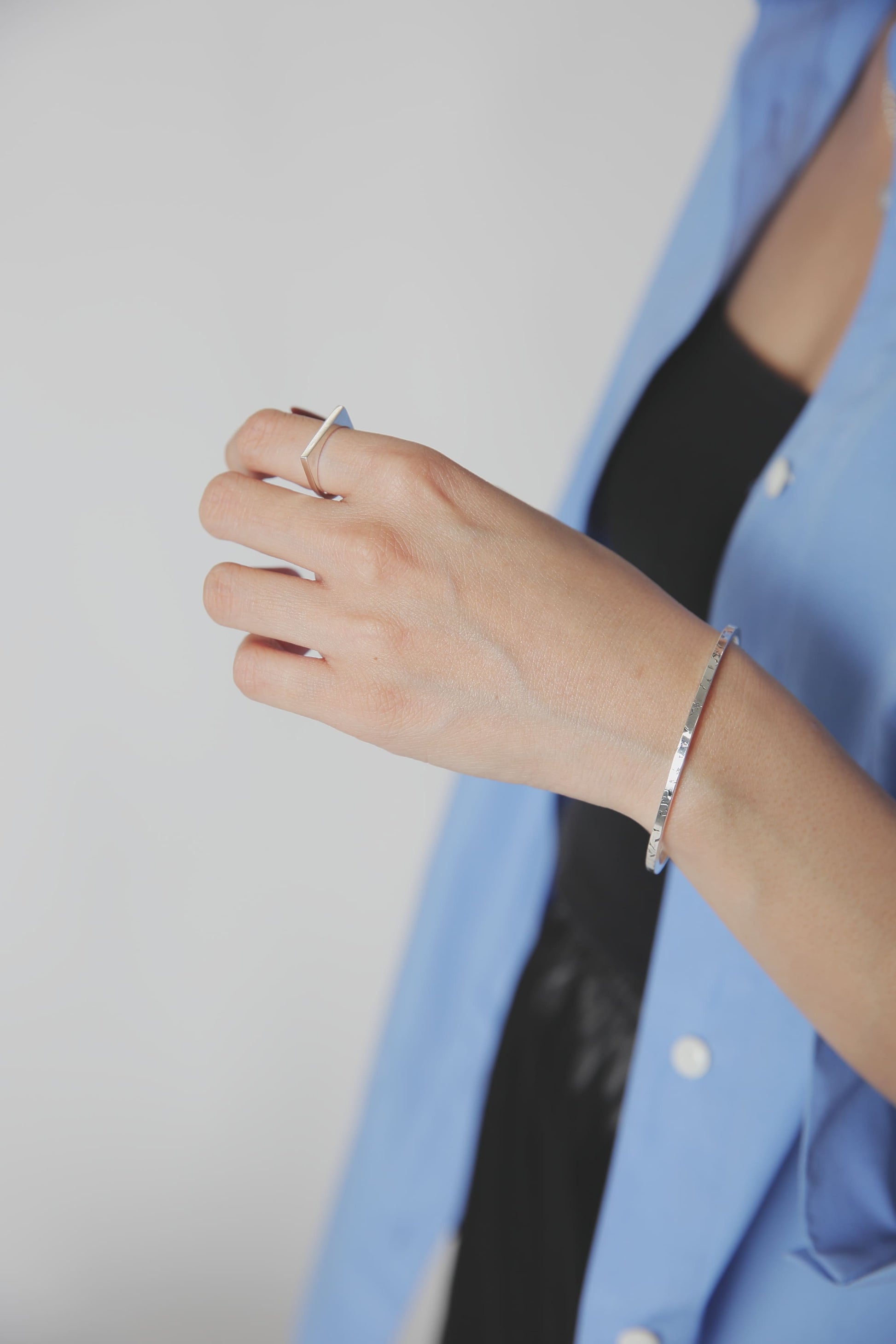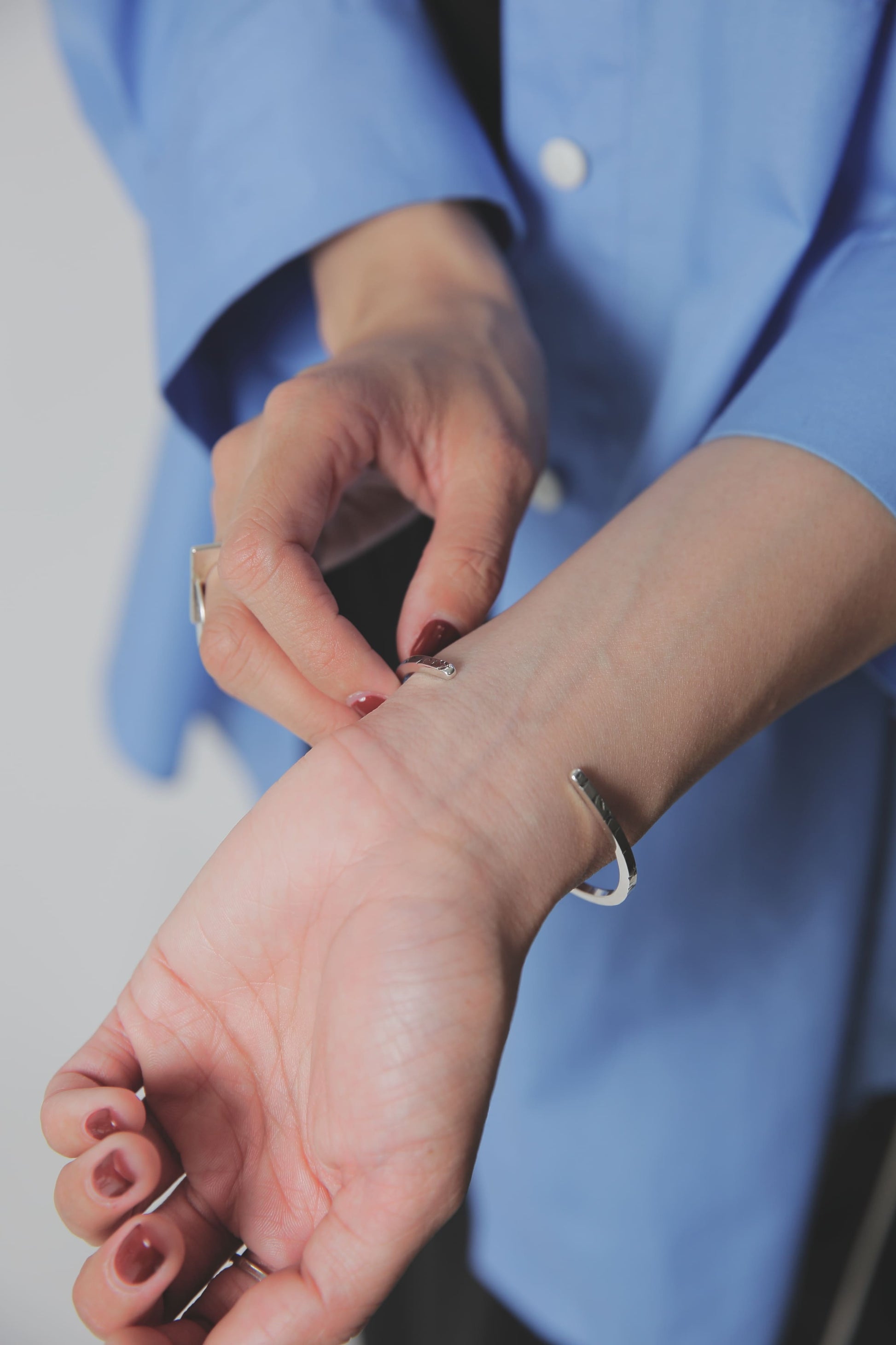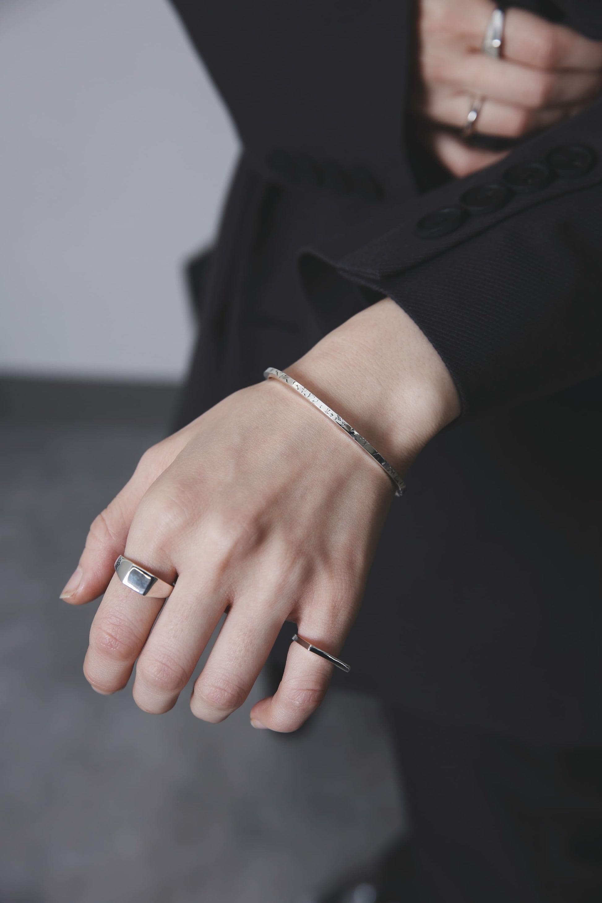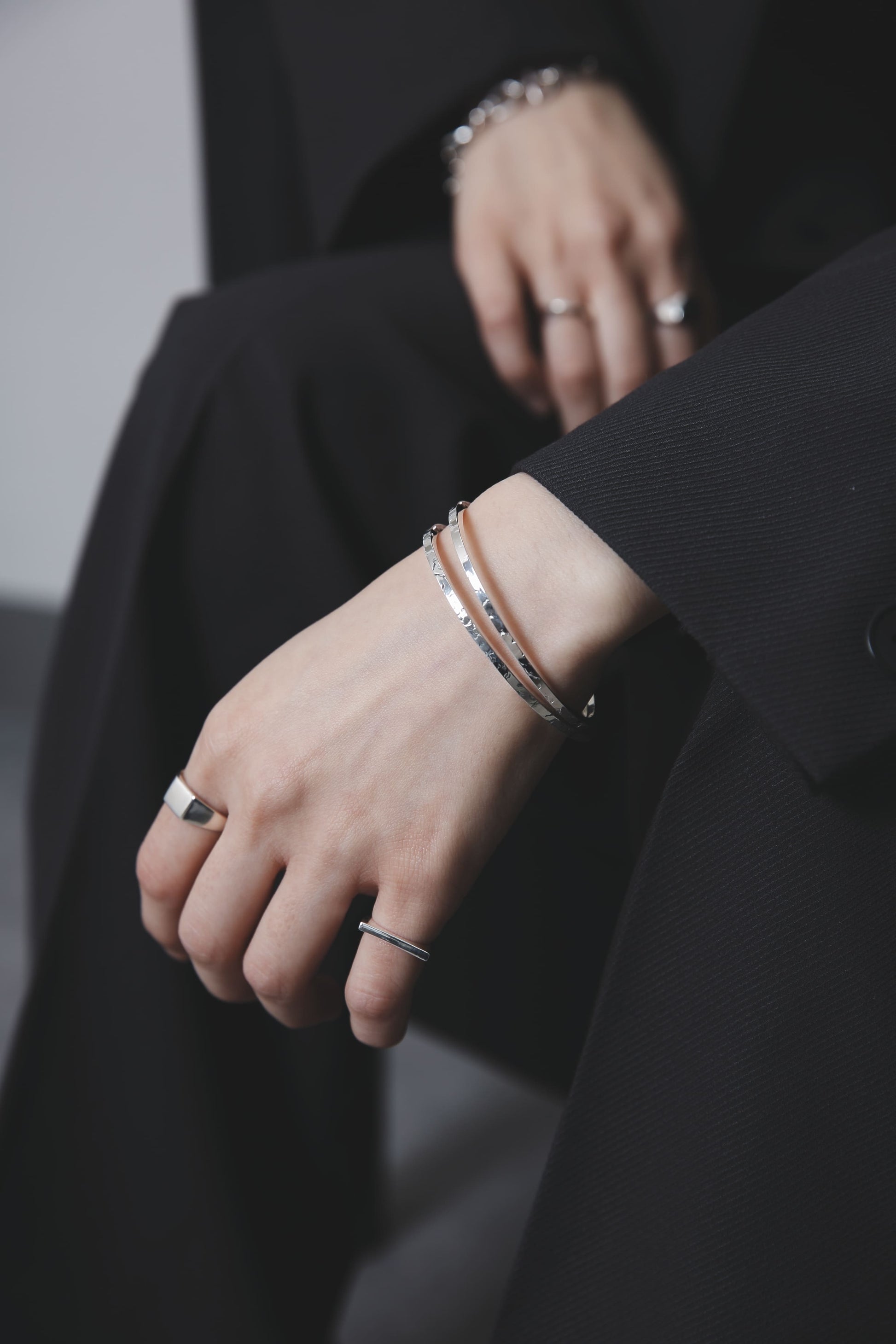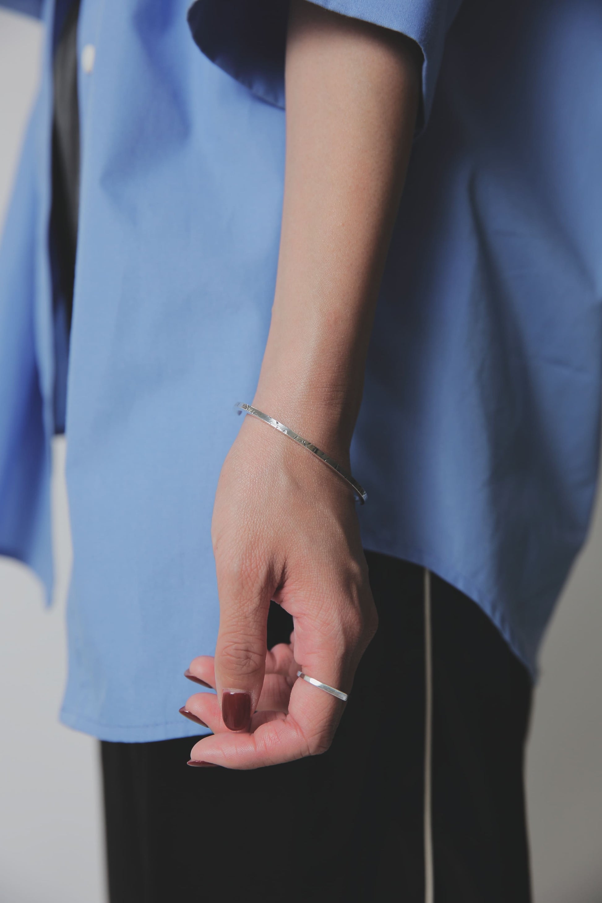 バングルを着けなれていない方や、腕でバングルが動いてしまうのが気になるという方も、これくらい華奢なバングルであればそこまで気にならないかもしれません。
