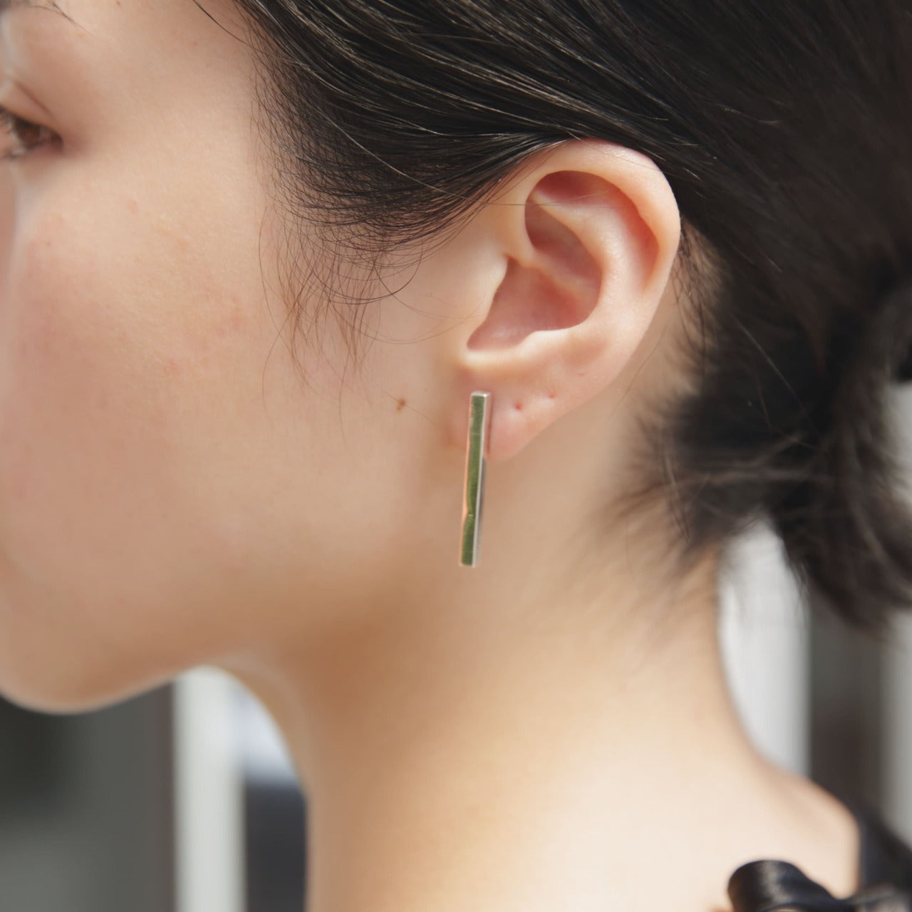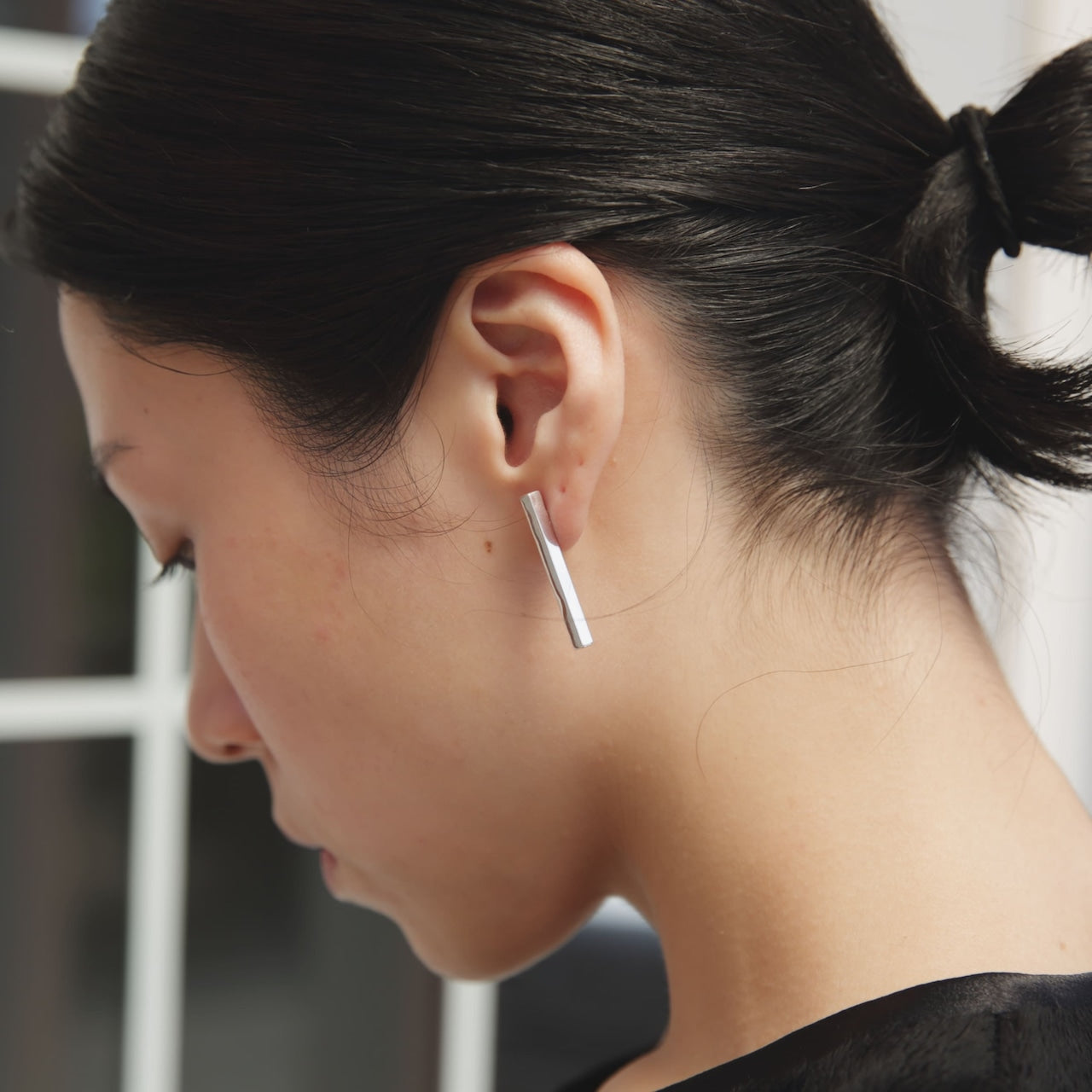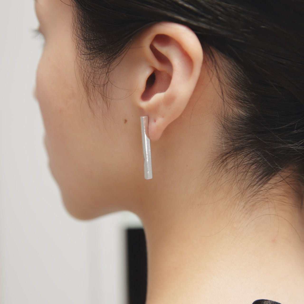 大胆にカットされた角棒が、銀特有の明るく白い輝きを放ち上品な耳元を演出します。