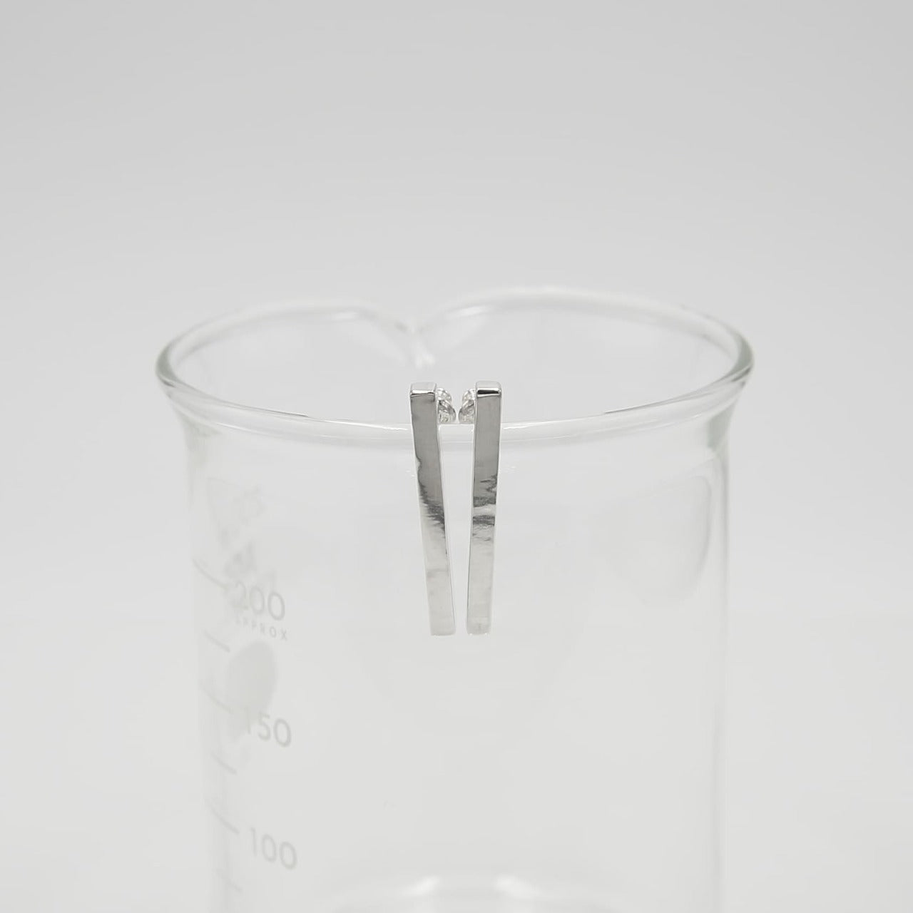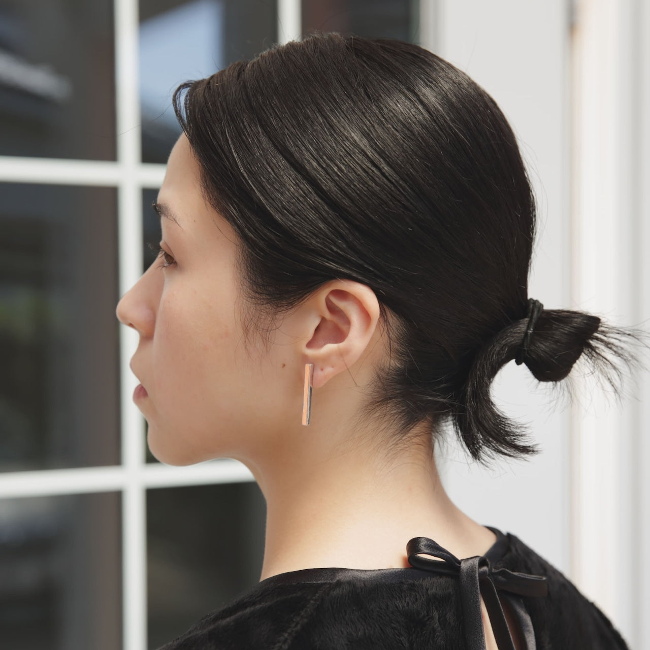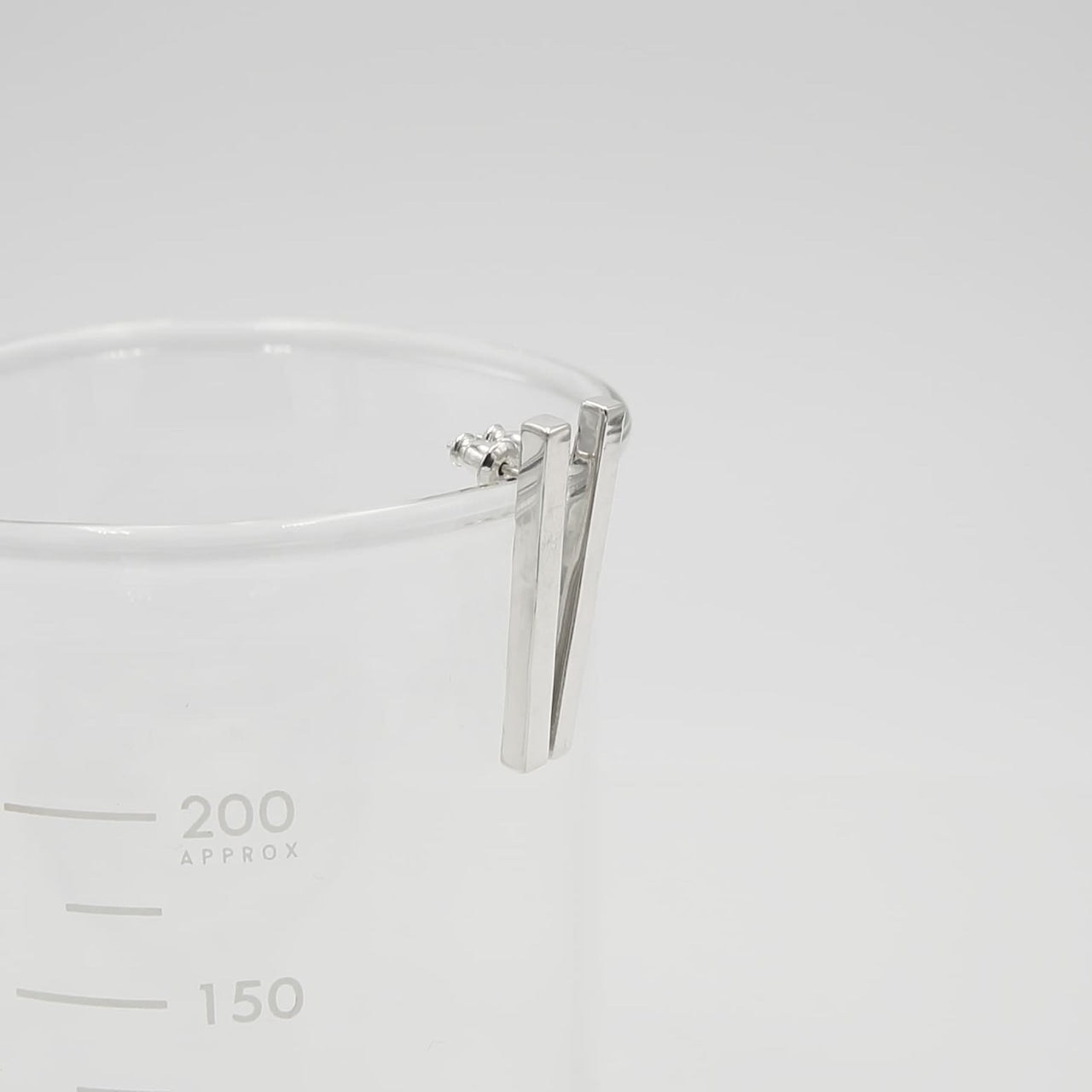 大胆にカットされた角棒が、銀特有の明るく白い輝きを放ち上品な耳元を演出します。