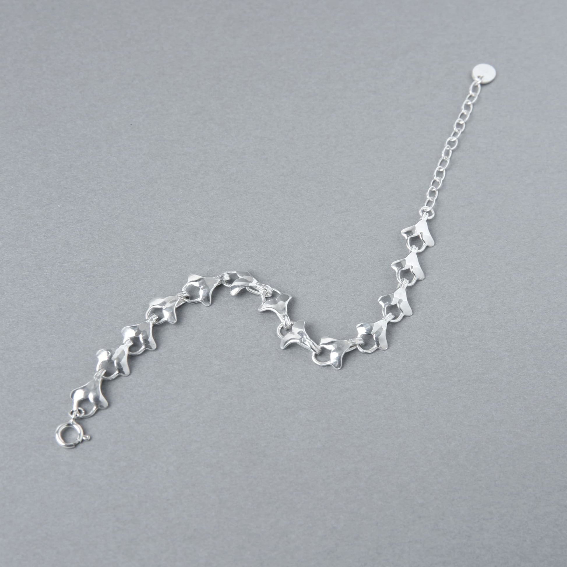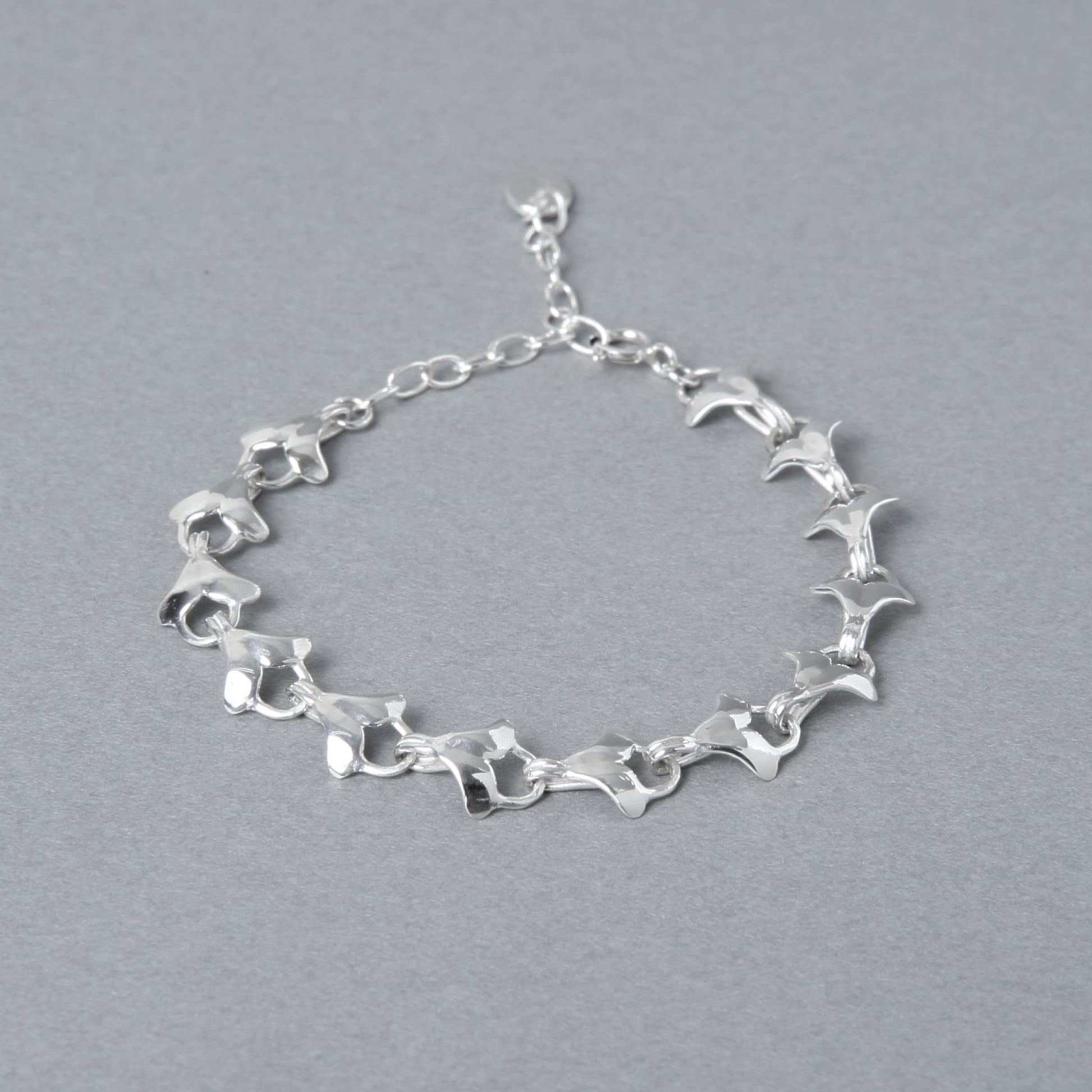 イチョウの葉をモチーフにしたオリジナルパーツを一つずつ繋いで、ブレスレットに仕上げました。