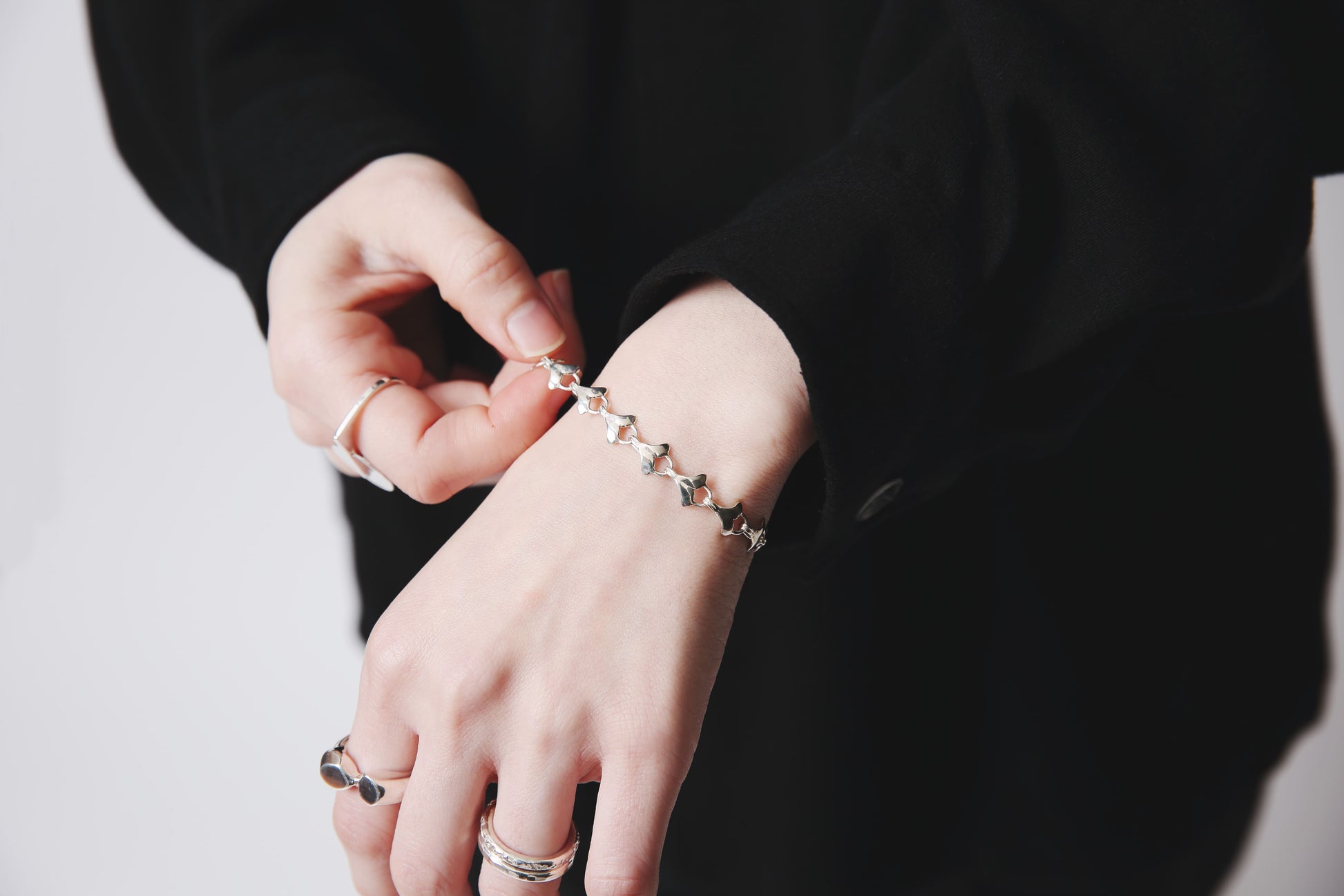 チェーンのブレスレットは気になるけど、あまりごてっとしたチェーンは付けずらいな...と言う方に、手首にそっと沿うように着用できるブレスレットを制作しました。