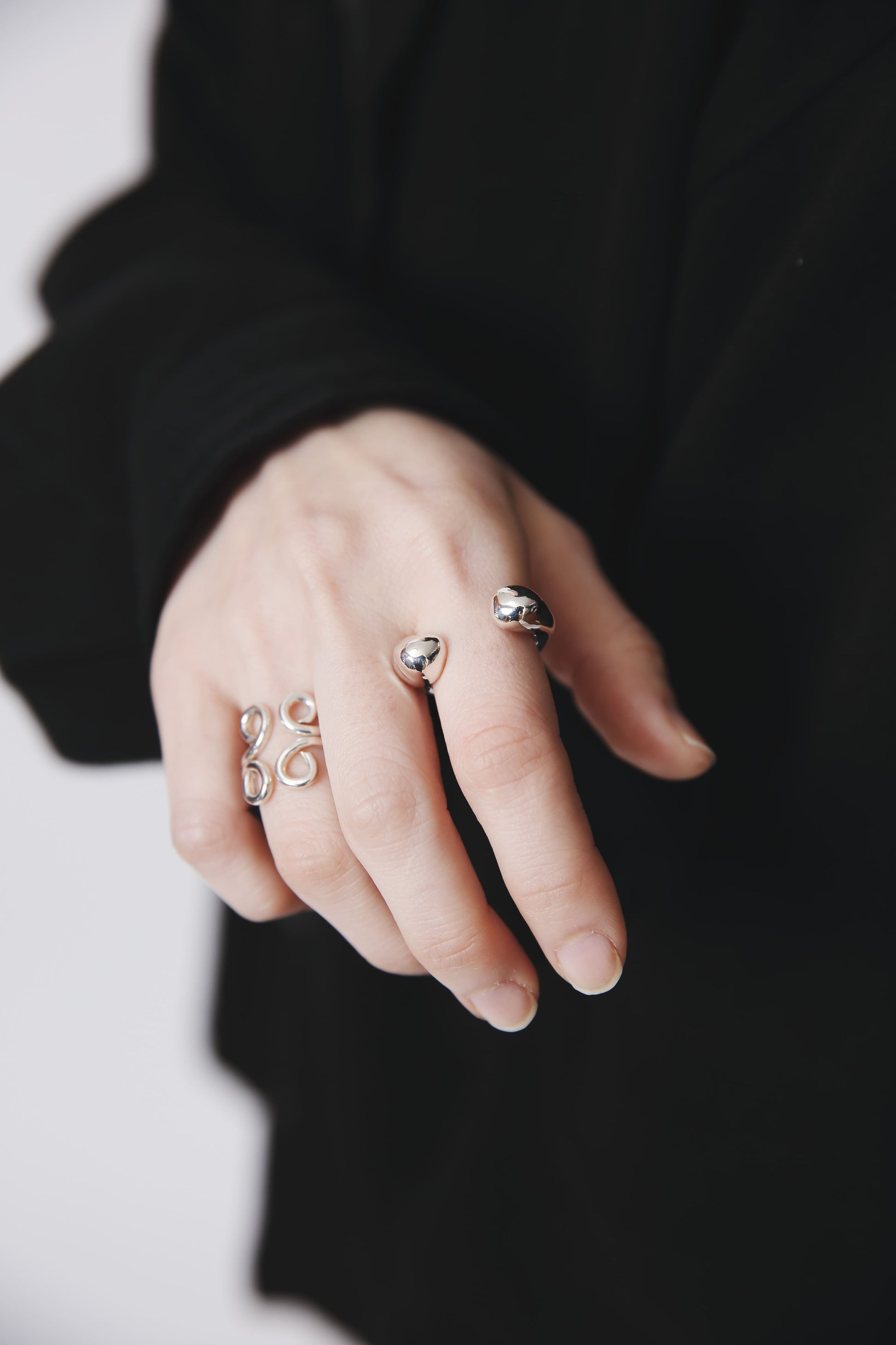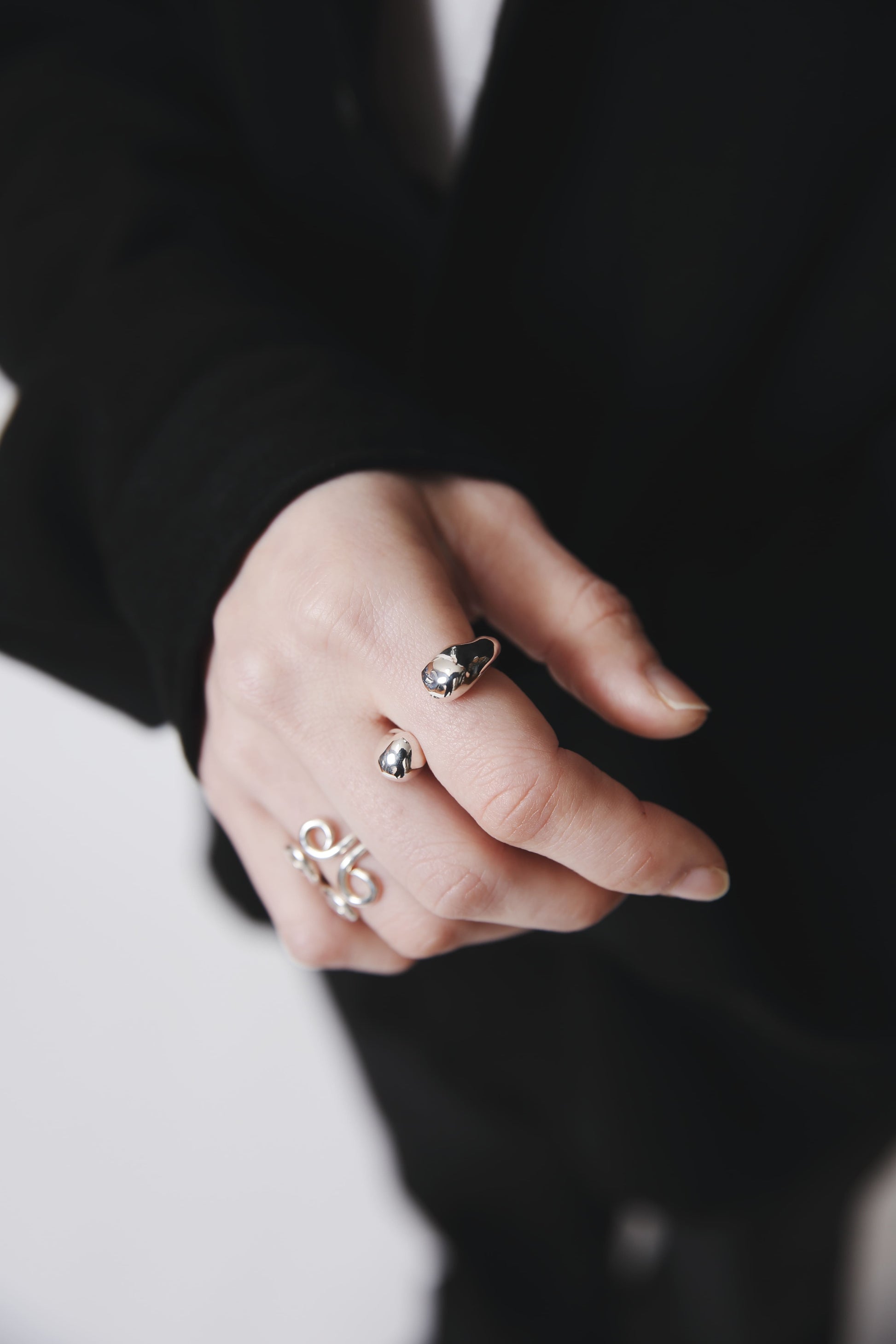 不規則な丸みとスターリングシルバーの美しさが生み出す、不均衡と違和感が何故かクセになるフォルム。