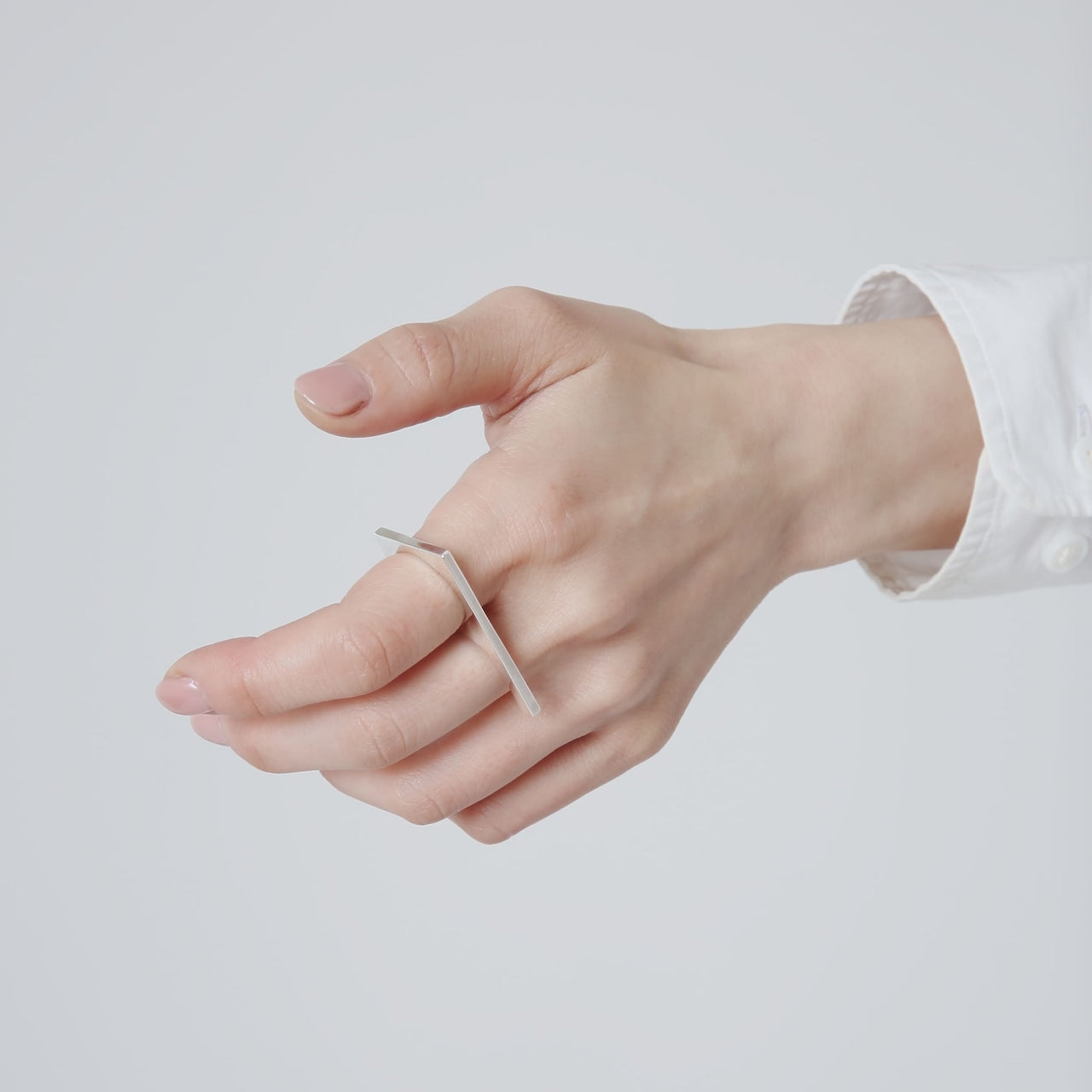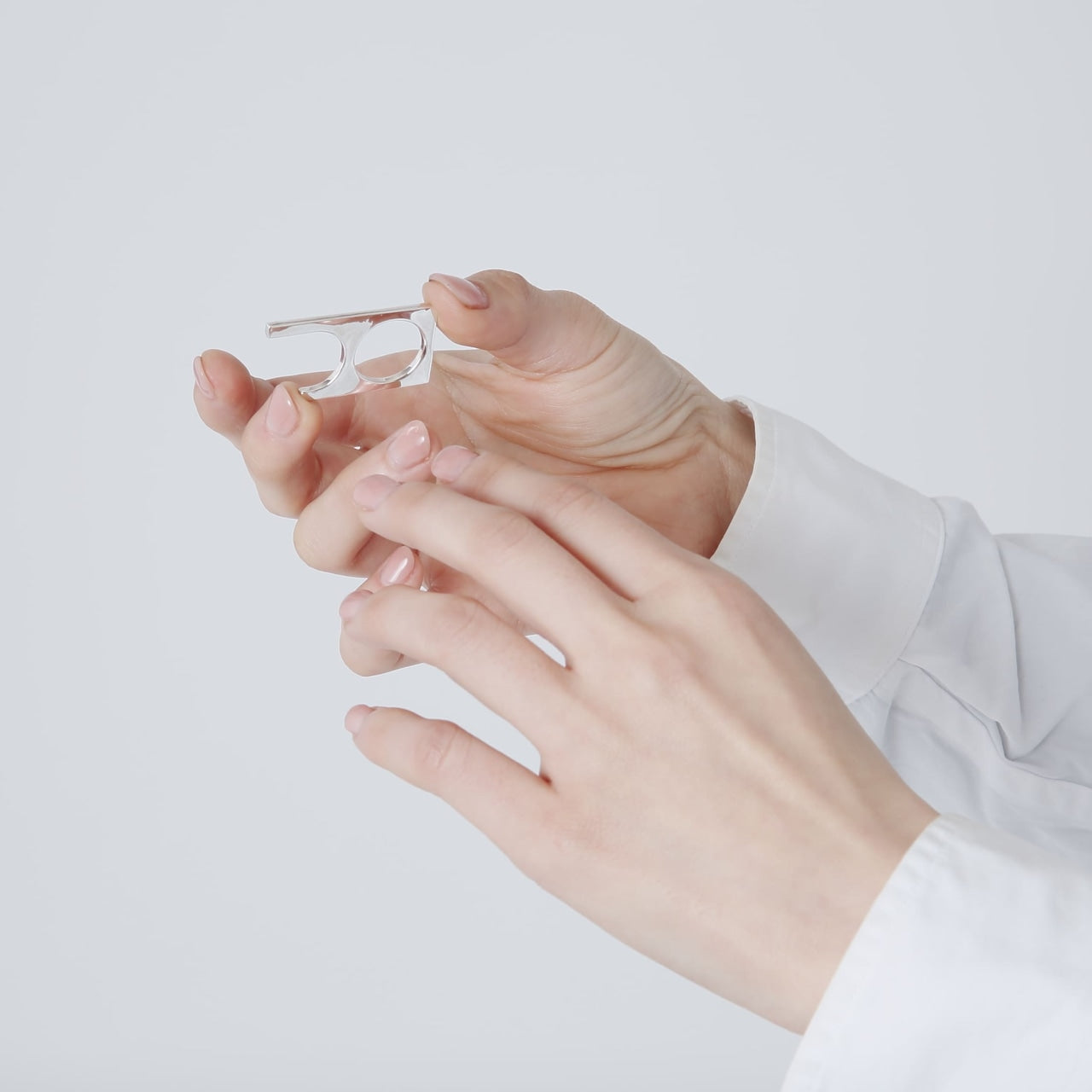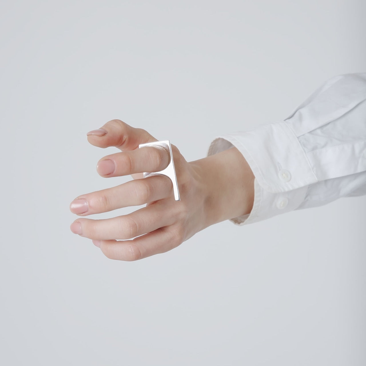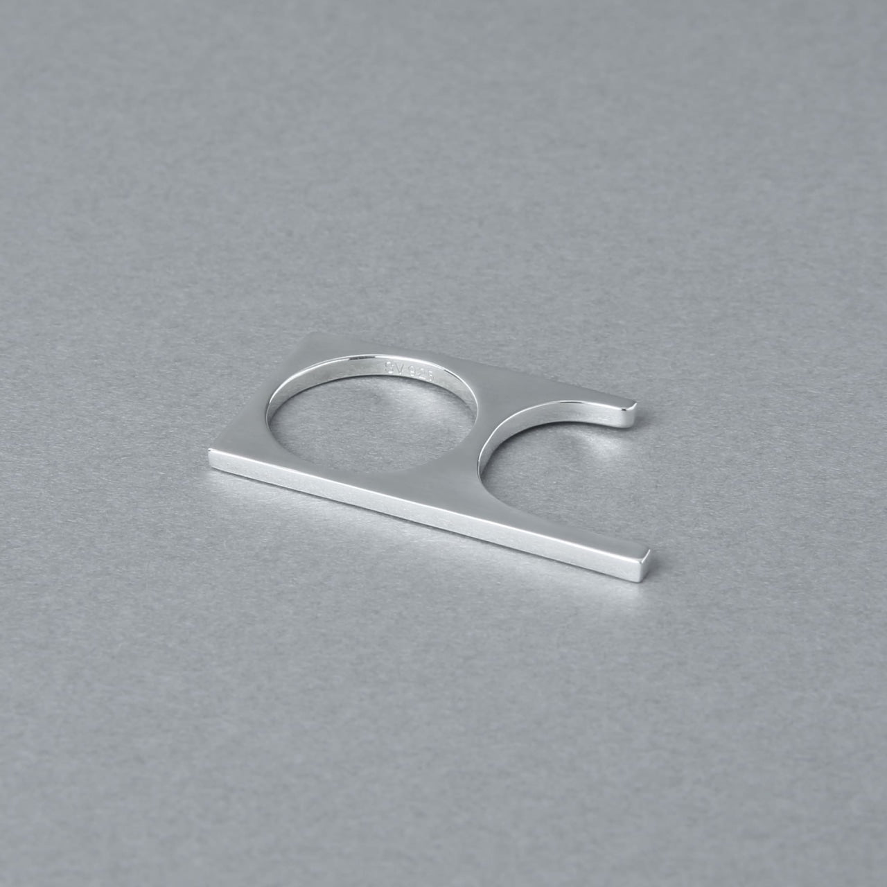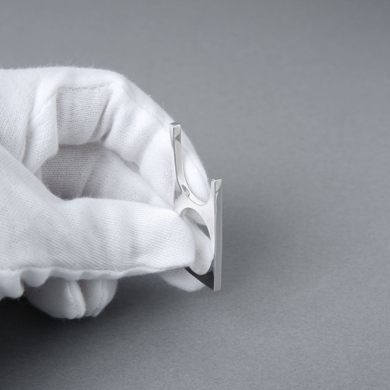 2連に繋がったリングのように見えますが、手のひら側は繋がっていない特徴的な形状。