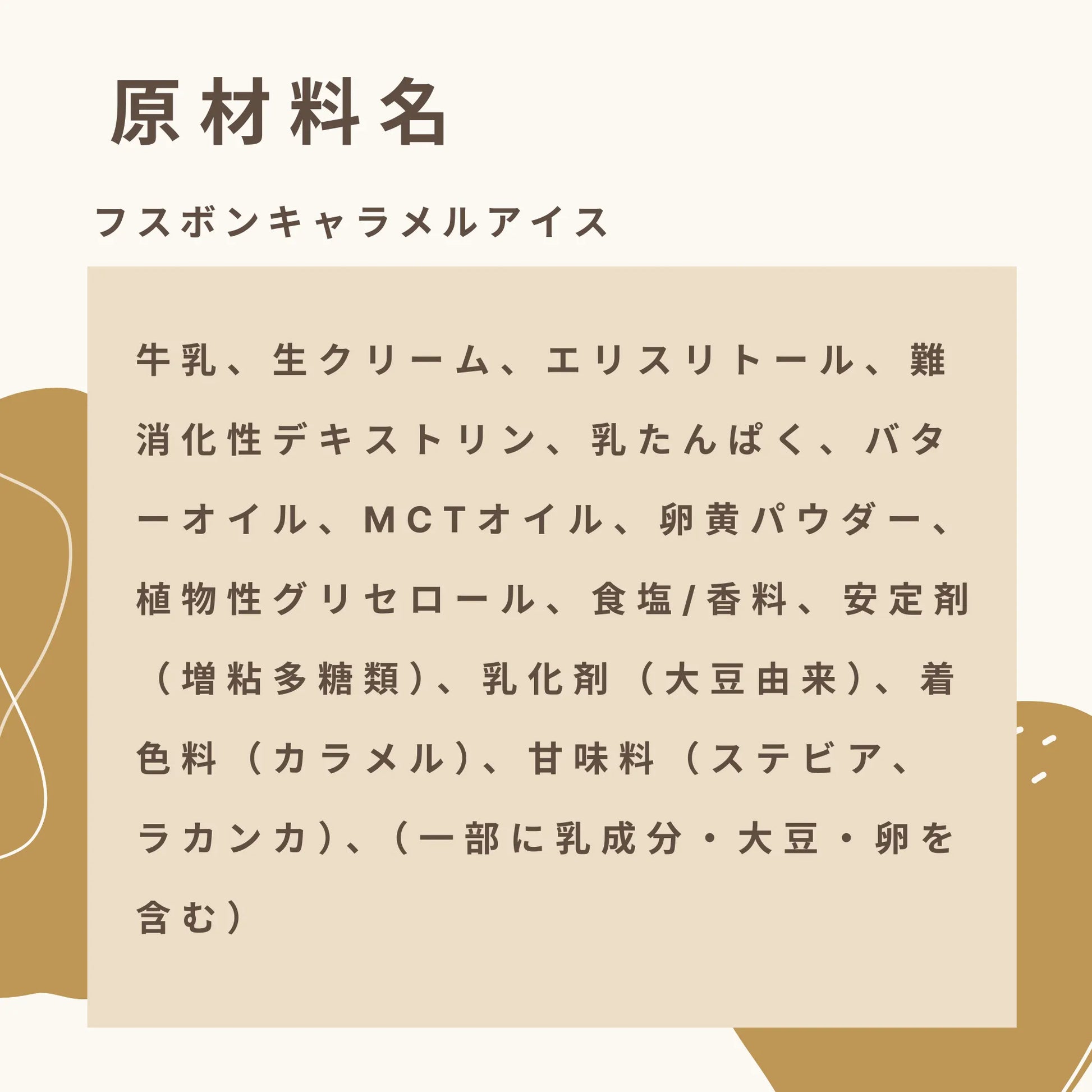 フスボンのキャラメルアイスクリームは、贅沢なキャラメルの風味と、濃厚でクリーミーな食感を楽しめる低糖質アイスクリームです。エリスリトールやステビア、ラカンカを使用し、後味の良い満足感のある甘さを実現しました。さらに、糖質を気にする方にも安心の糖質4.4g(エリスリトールを除く)で、低糖質ながらリッチな味わいをお楽しみいただけます。