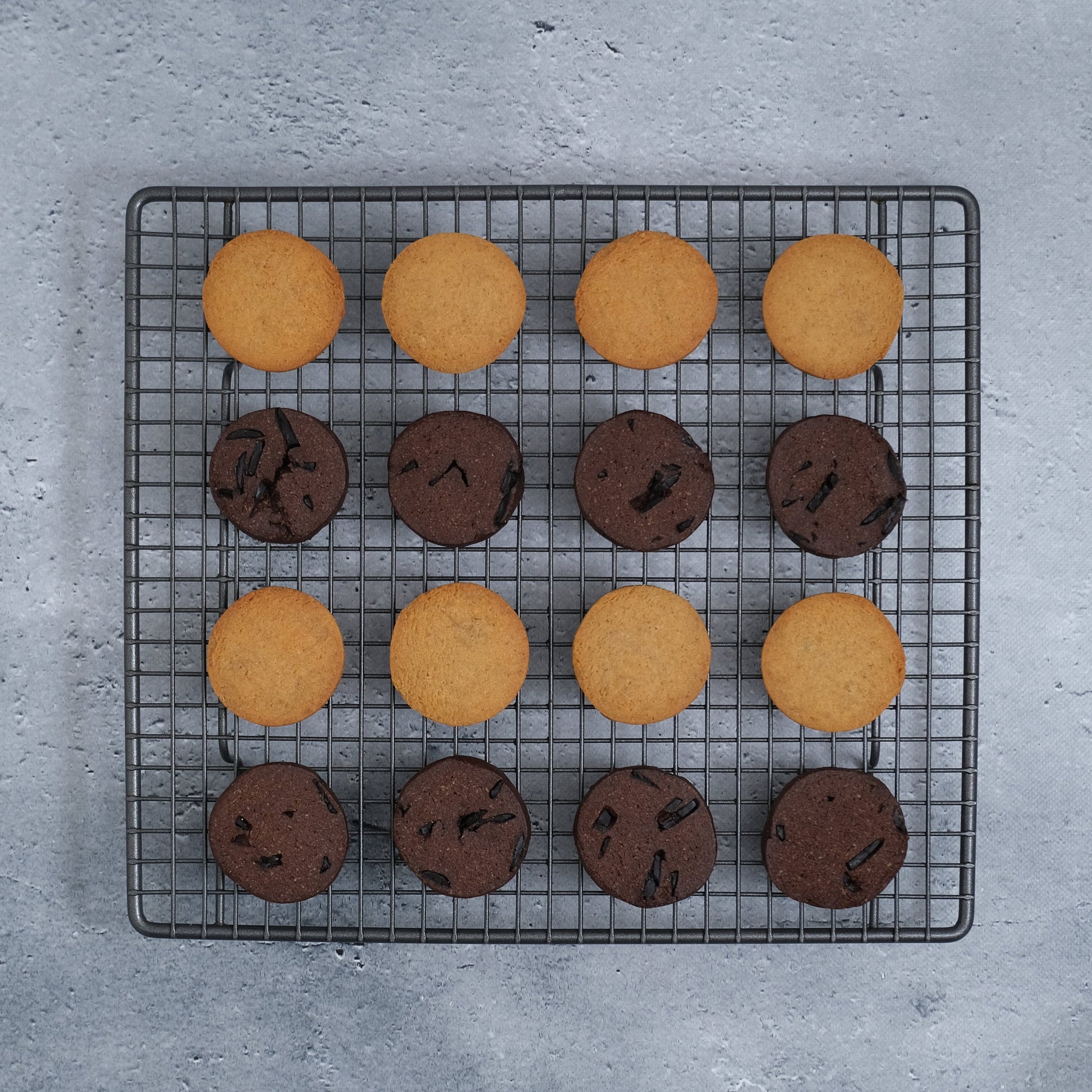 フスボンプレーンクッキーにのバニラオイルの代わりにカカオパウダーを使用し、フスボンチョコをチップにして閉じ込めました。