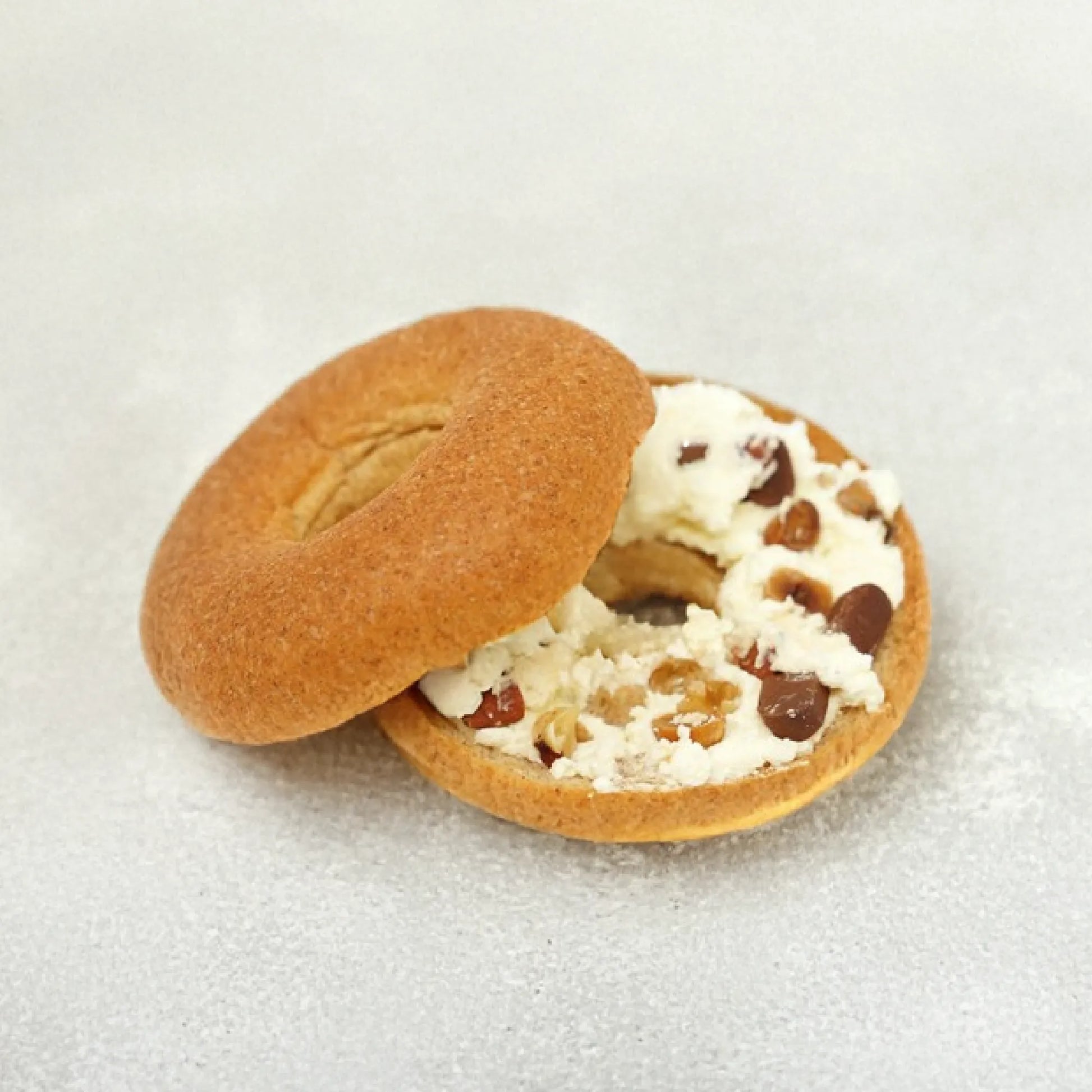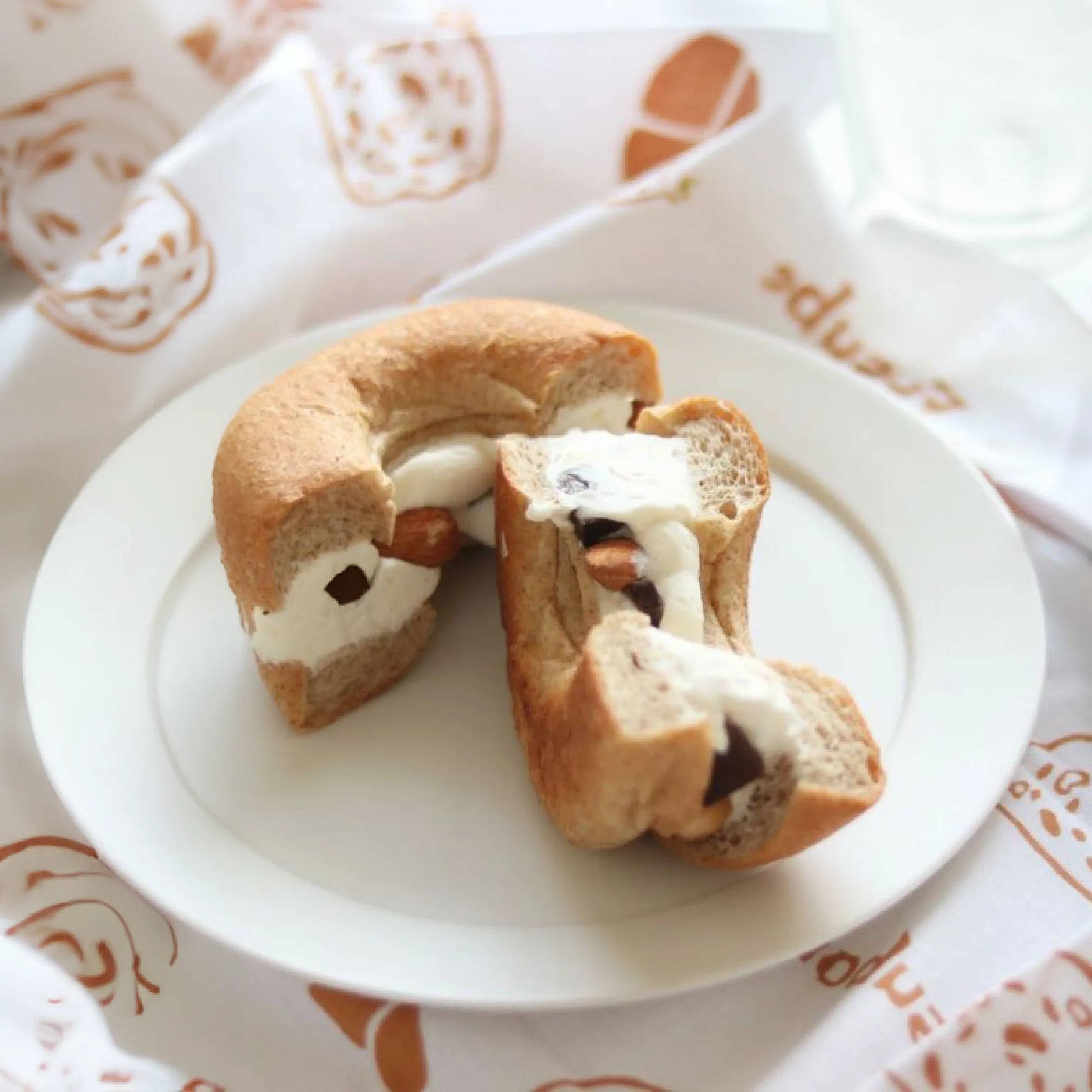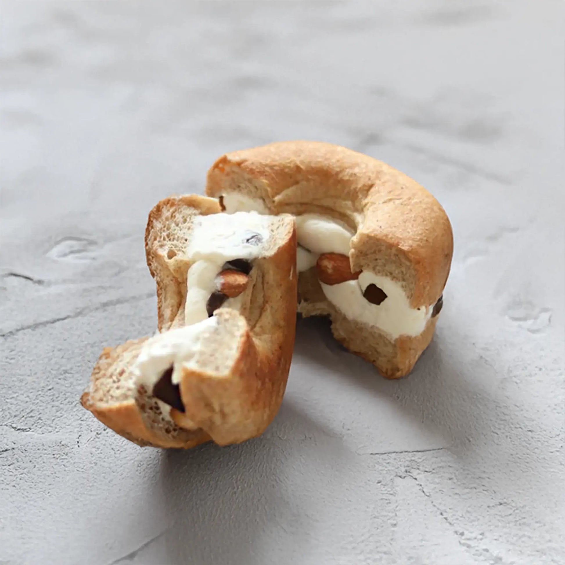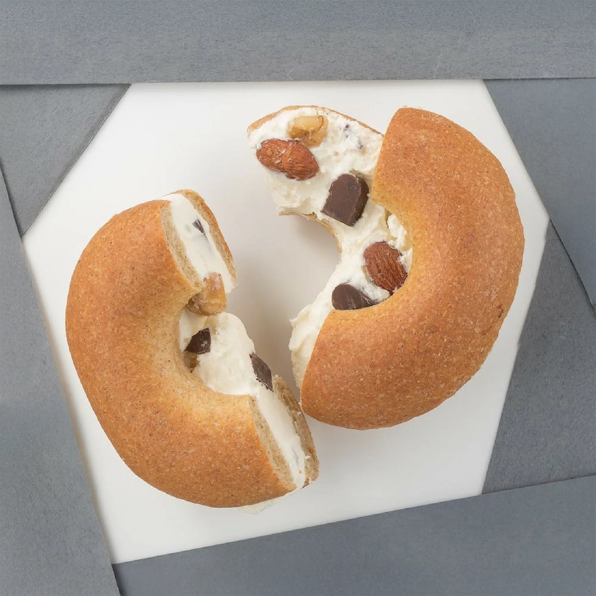 もっちりとした食感の生地とダブルクリームの濃厚な味わい、パリパリとしたチョコとナッツの食感が絶妙なハーモニーを奏でます。