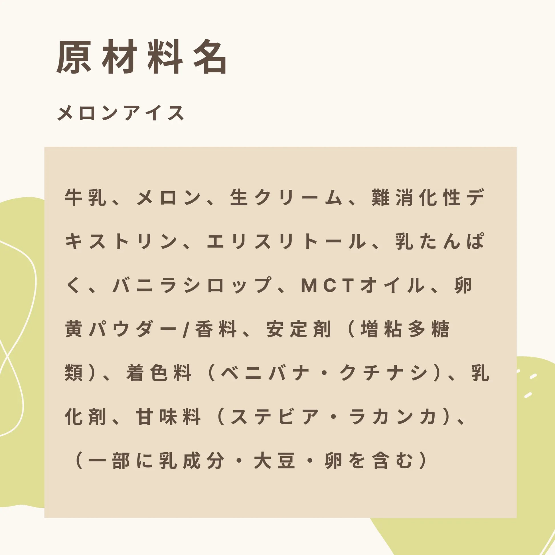 メロンのジューシーな風味を引き立てた、爽やかな甘さの低糖質メロンアイス。牛乳と生クリームのまろやかさがメロンの香りと絶妙に調和し、なめらかな口どけが楽しめます。
