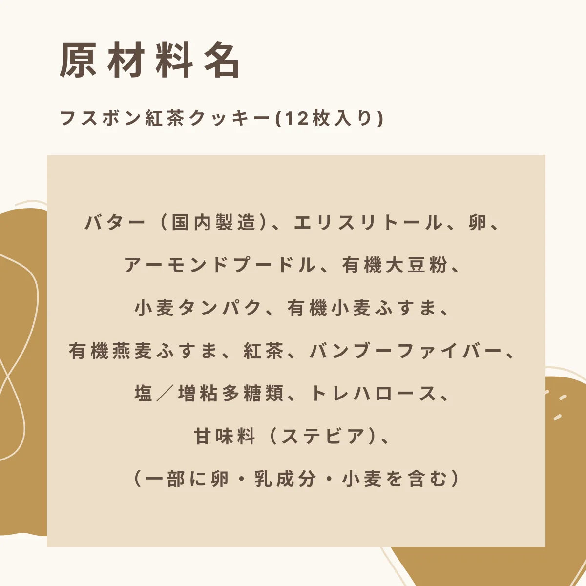 フスボンの紅茶クッキー(12枚入り)は、糖質を意識している方にも楽しめるデリケートな味わいを提供します。