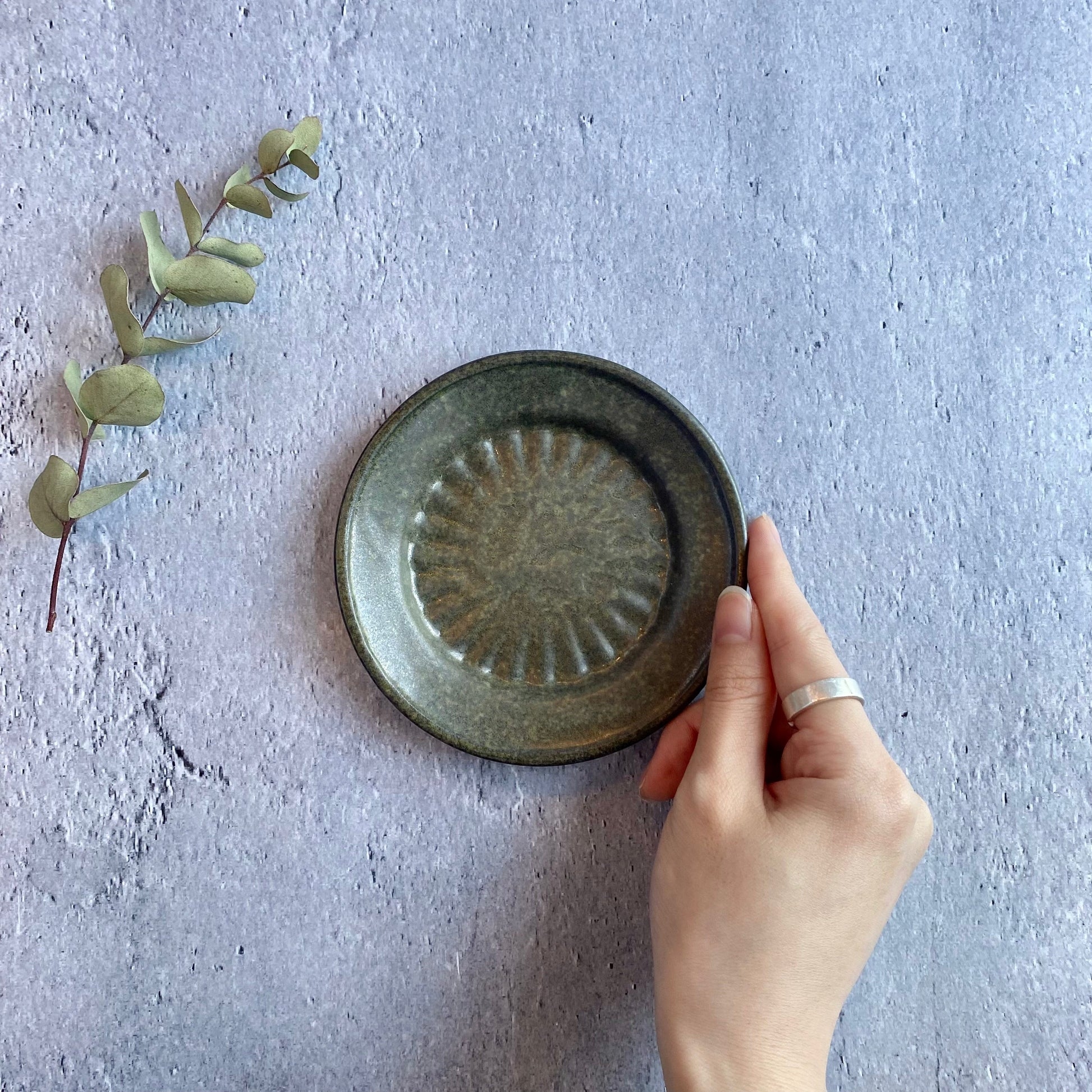 作家 飛松灯器 山プレート / 丸 / S / olive【8】