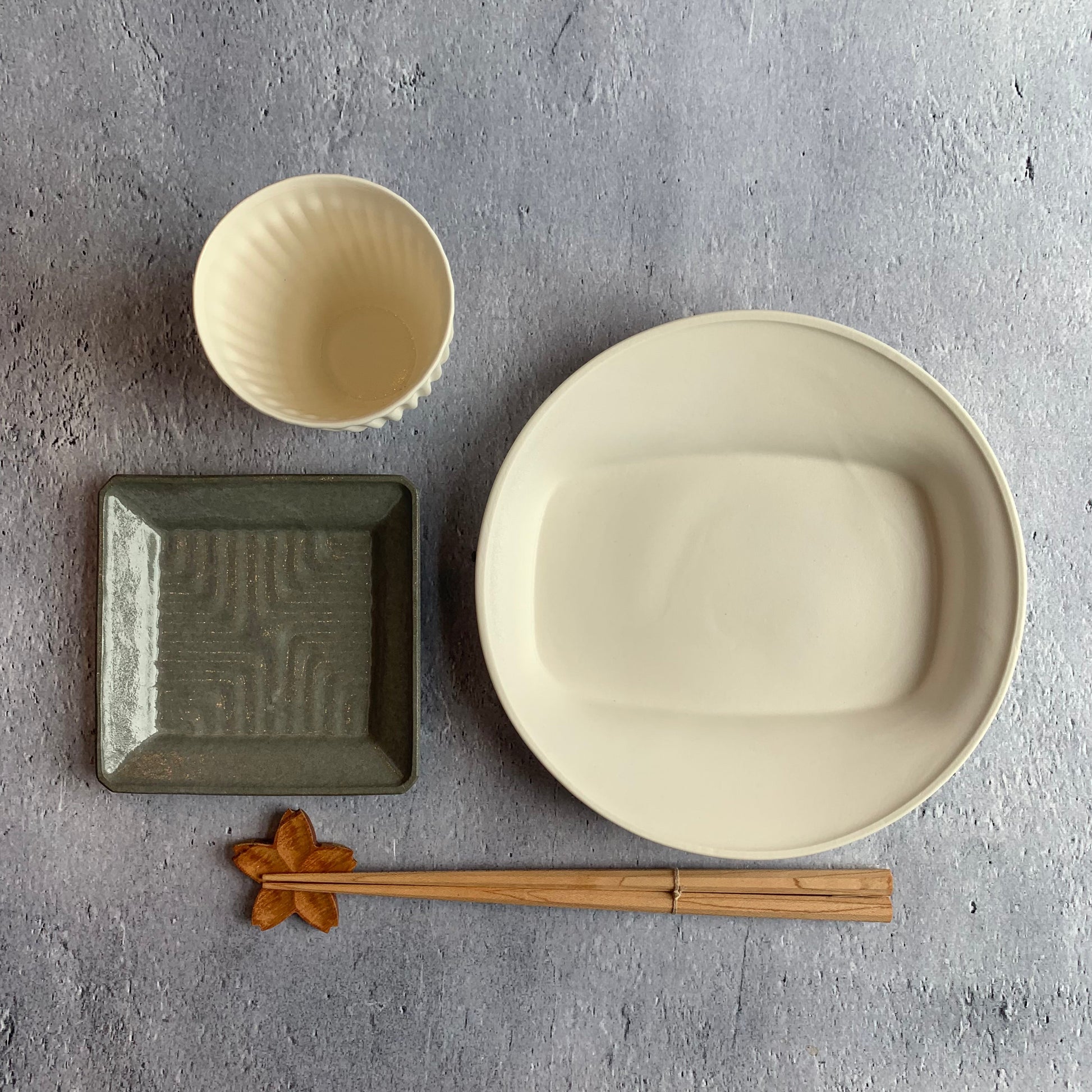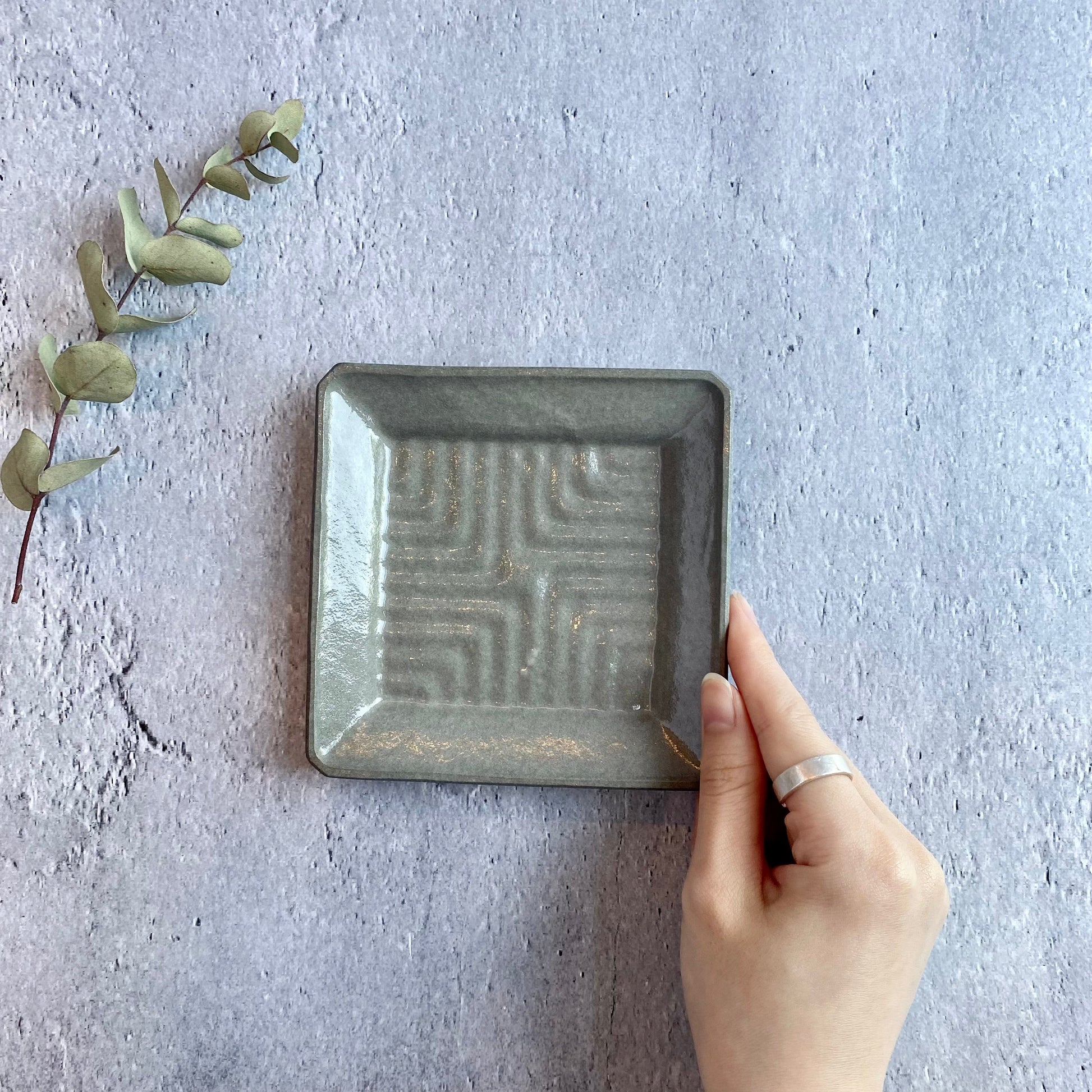 落ち着いたグレー色の釉薬は、温かみがありながらモダンな印象を与えます。