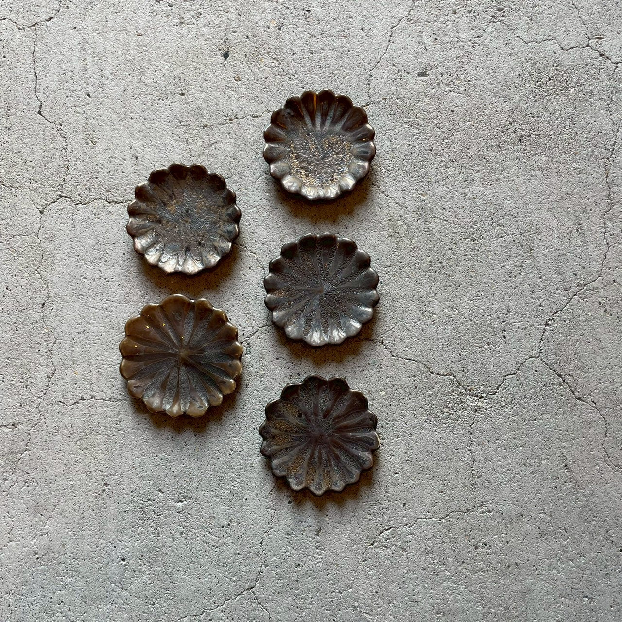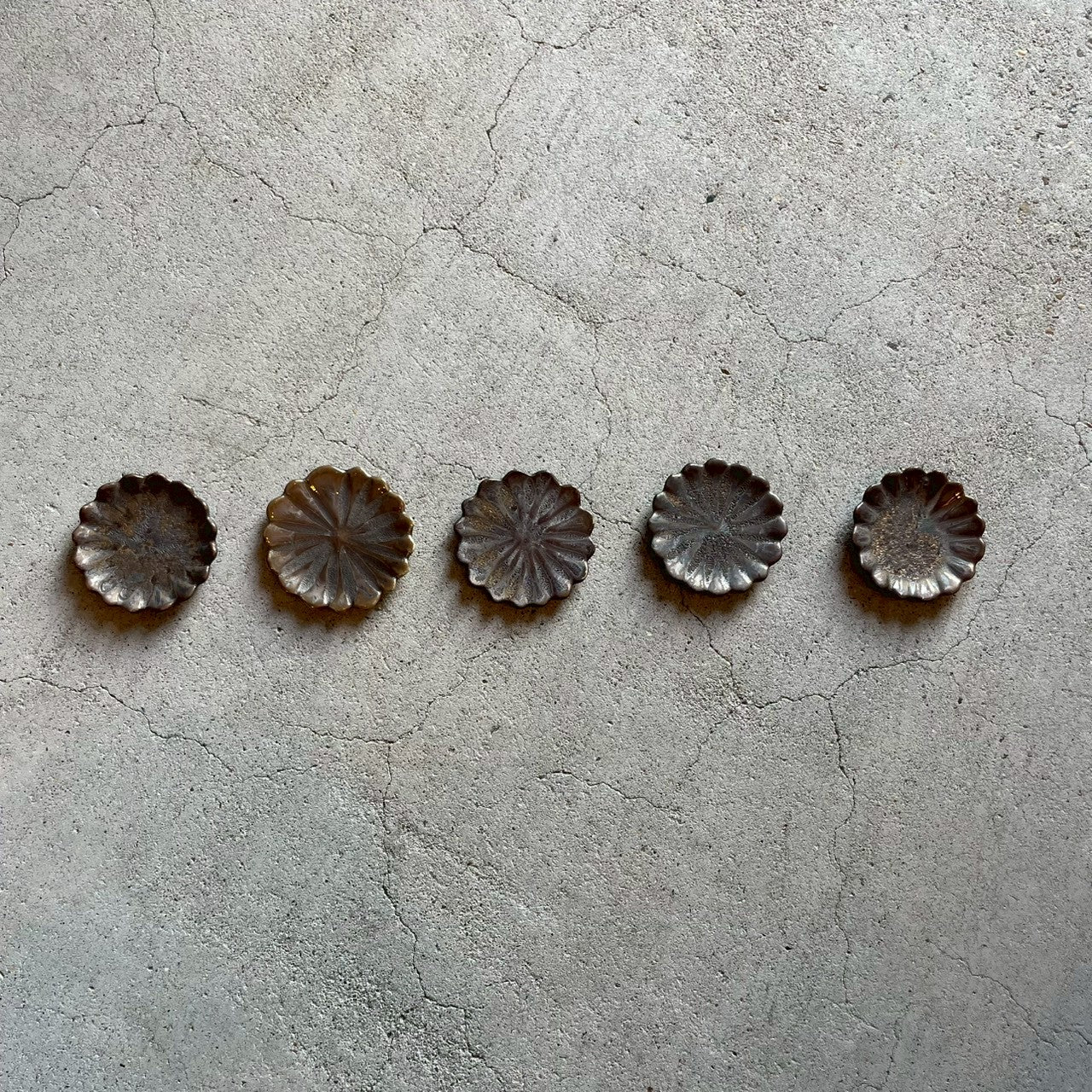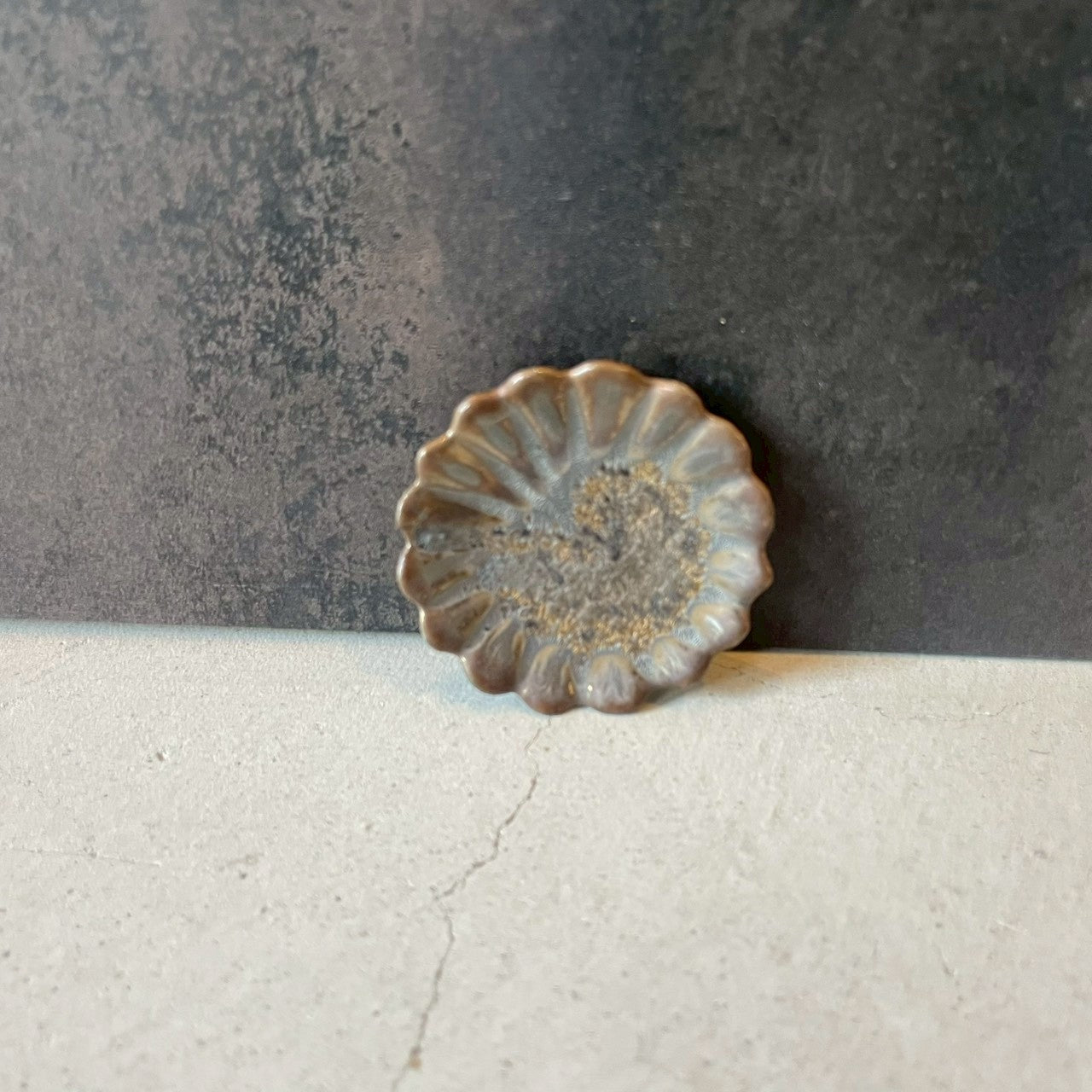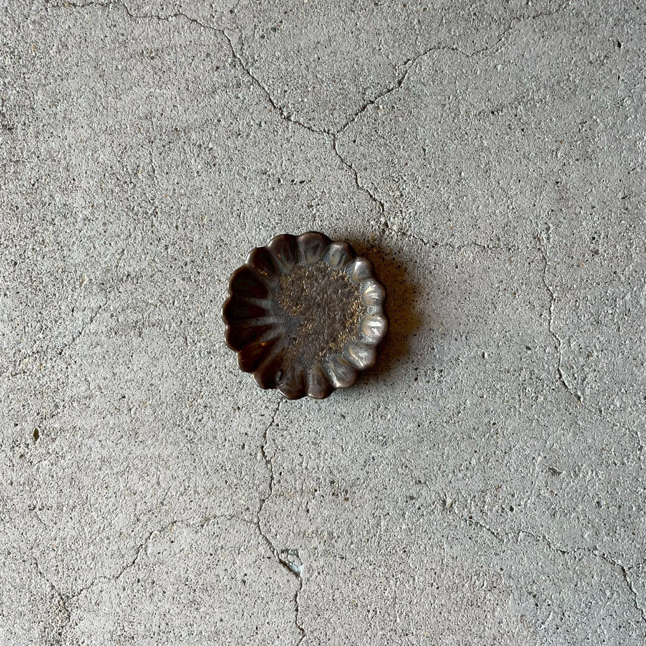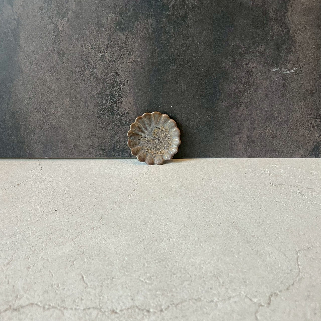 藤村佳澄さんの「箸置き カトラリーレスト φ5.5 ブロンズ」は、手のひらに収まる小ぶりなサイズながら、深みあるブロンズの輝きで存在感を放つ箸置きです。金属的な光沢を帯びた器肌は、光を受けるたびに陰影を変え、テーブルに洗練された印象を添えてくれます。