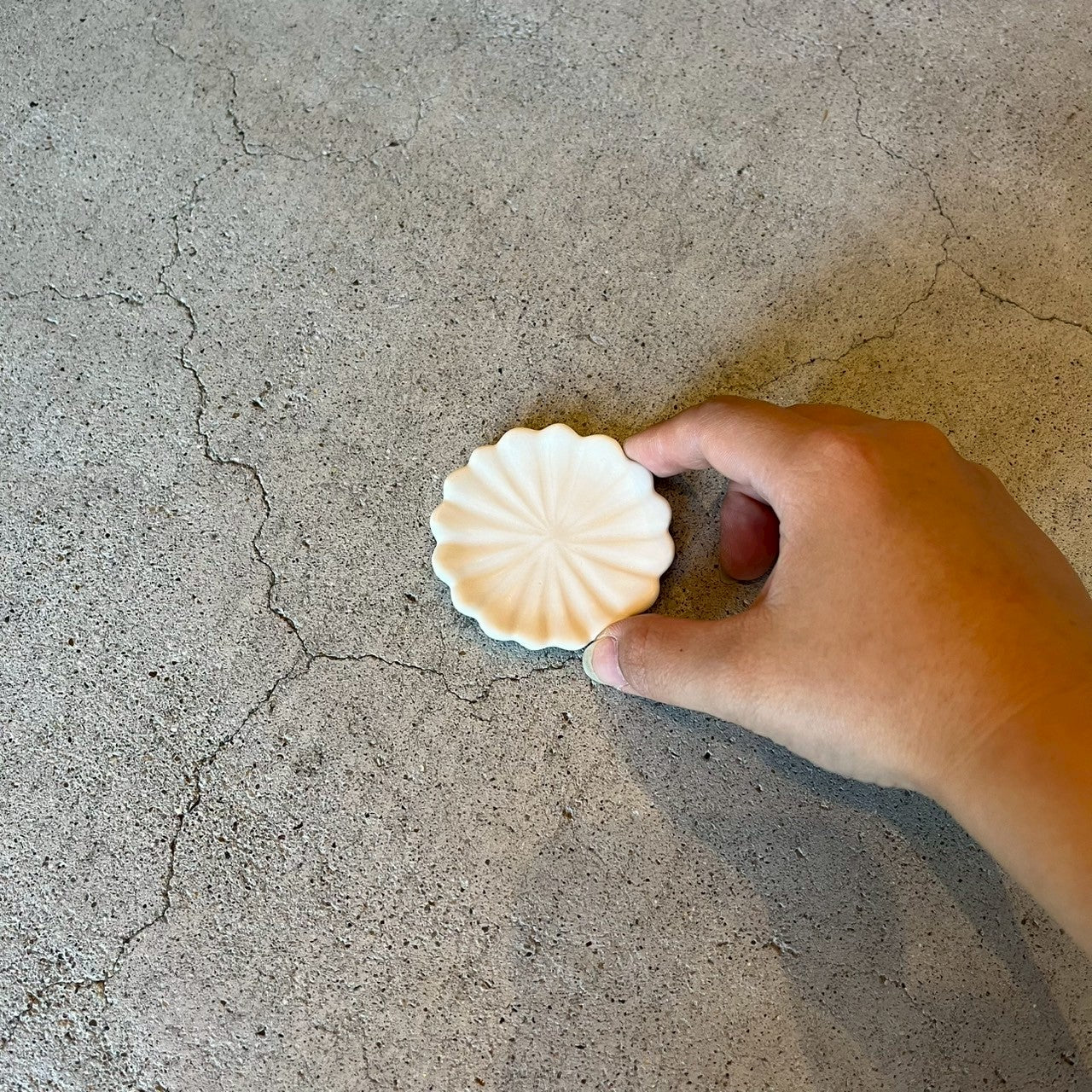 藤村佳澄さんの「箸置き カトラリーレスト φ5.5 白」は、コンパクトなサイズ感ながら、白磁の澄んだ華やかな美しさが際立つ箸置きです。清らかな白はどんな器や料理とも調和し、食卓にすっきりとした余白と上品さを与えてくれます。