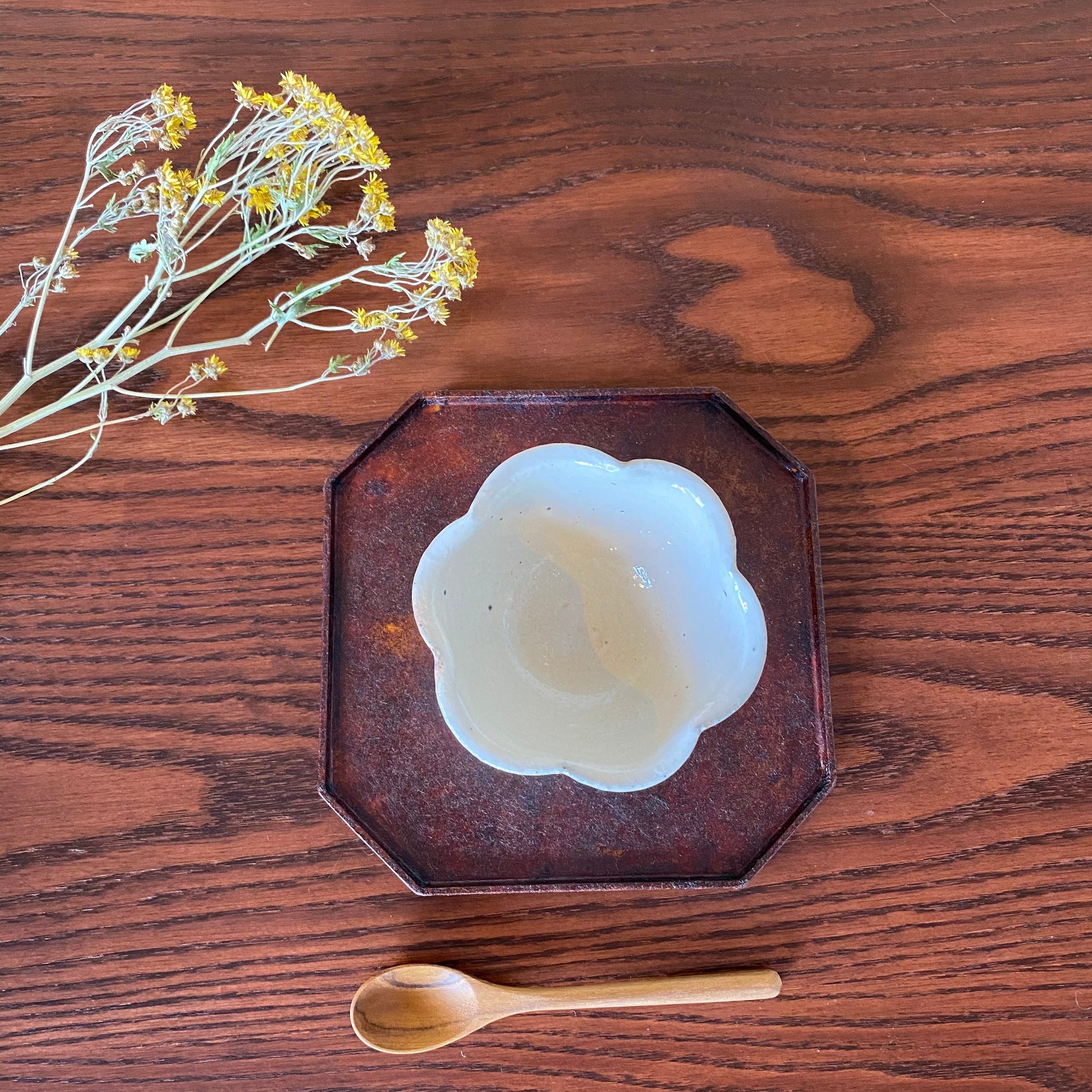 古谷製陶所の「輪花豆鉢 鉄散」は、可愛らしい花の形(輪花)をした豆鉢です。