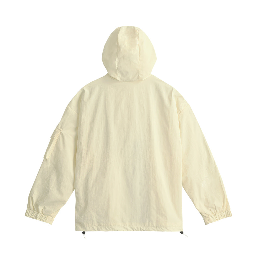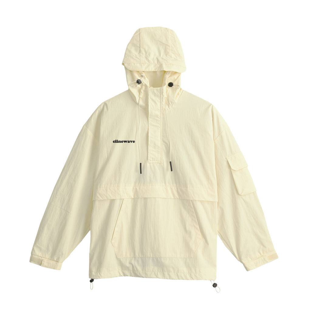 軽量でジッパーになっているので着脱しやすく、これからの梅雨シーズンやマウンテンパーカーとして活用できるアウター。 撥水加工が施され、耐久性にも優れている。 柔らかめの生地感でゆとりのあるシルエットなので羽織りやすい。
