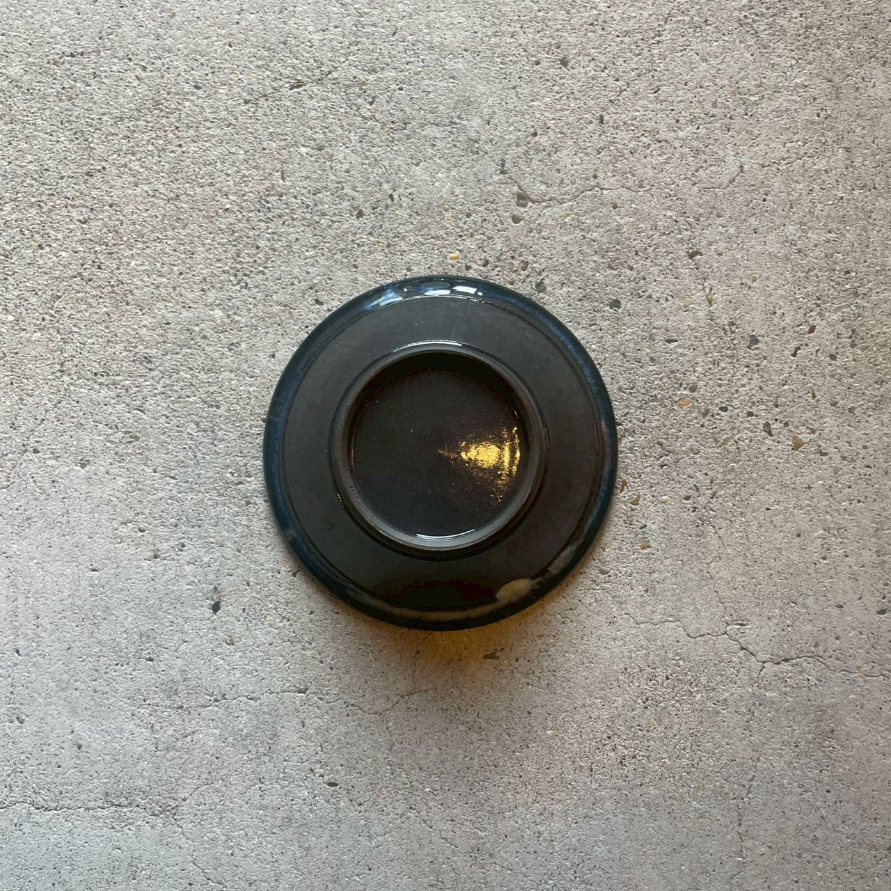 川澄智一さん(笠間焼)の「p/小鉢」は、青と黒の織りなす神秘的な表情が魅力的な笠間焼の小鉢で、今回の展示会の新作です。長年かけて、川澄智一さんが研究した理想の青色の釉薬がついに完成しました。まるで宇宙の星雲や銀河をのぞき込んでいるような、静謐で深遠な世界を宿しています。その中に広がる模様は無限の広がりを感じさせます。青の濃淡が奥行きに沿ってゆらぎ、見る角度や光によって表情を変えるのも魅力のひとつです。日々の空間に、一瞬だけ宇宙が入り込んだような、不思議な存在感をもたらしてくれる作品です。