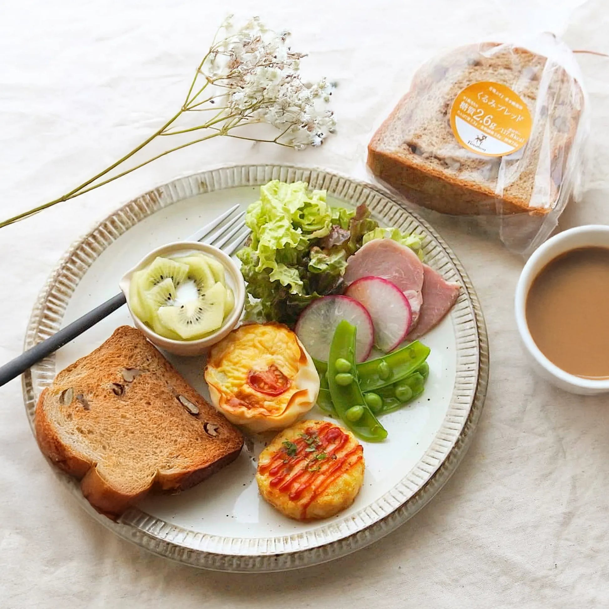 ドライフルーツ不使用で糖質控えめ、タンパク質やオメガ3も摂取できる栄養豊富な食パンです。