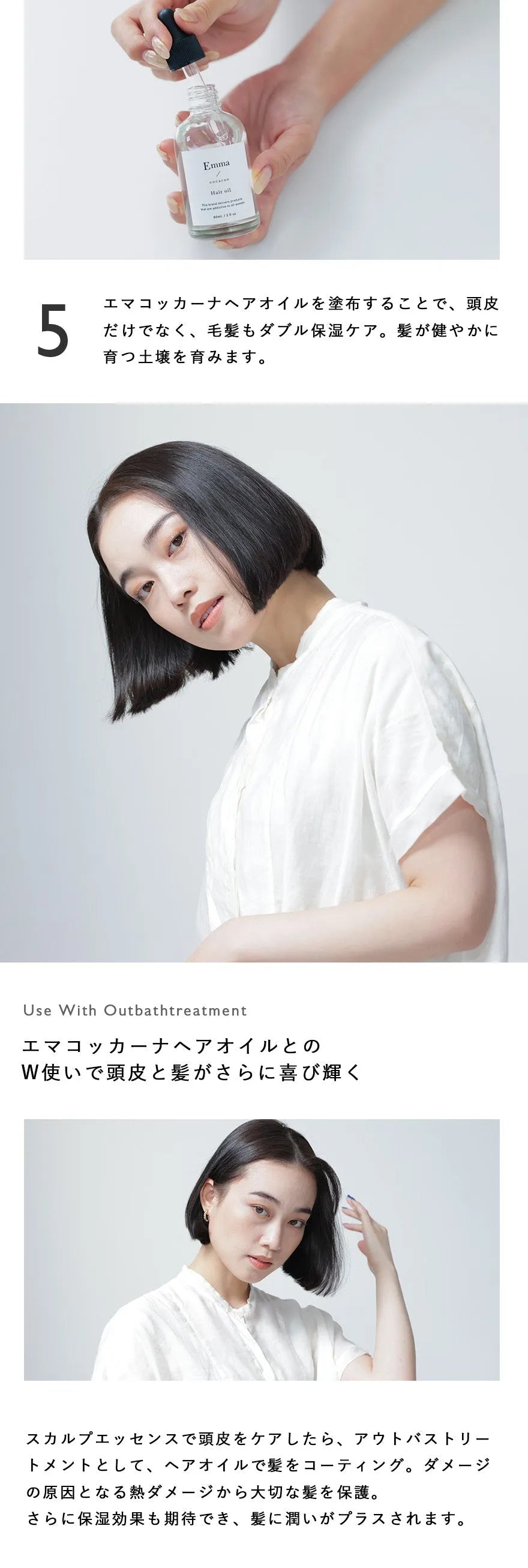 エマコッカーナ スカルプエッセンスは、天然由来の頭皮ケア成分が潤いを与え、頭皮のエイジングケアをサポートします。