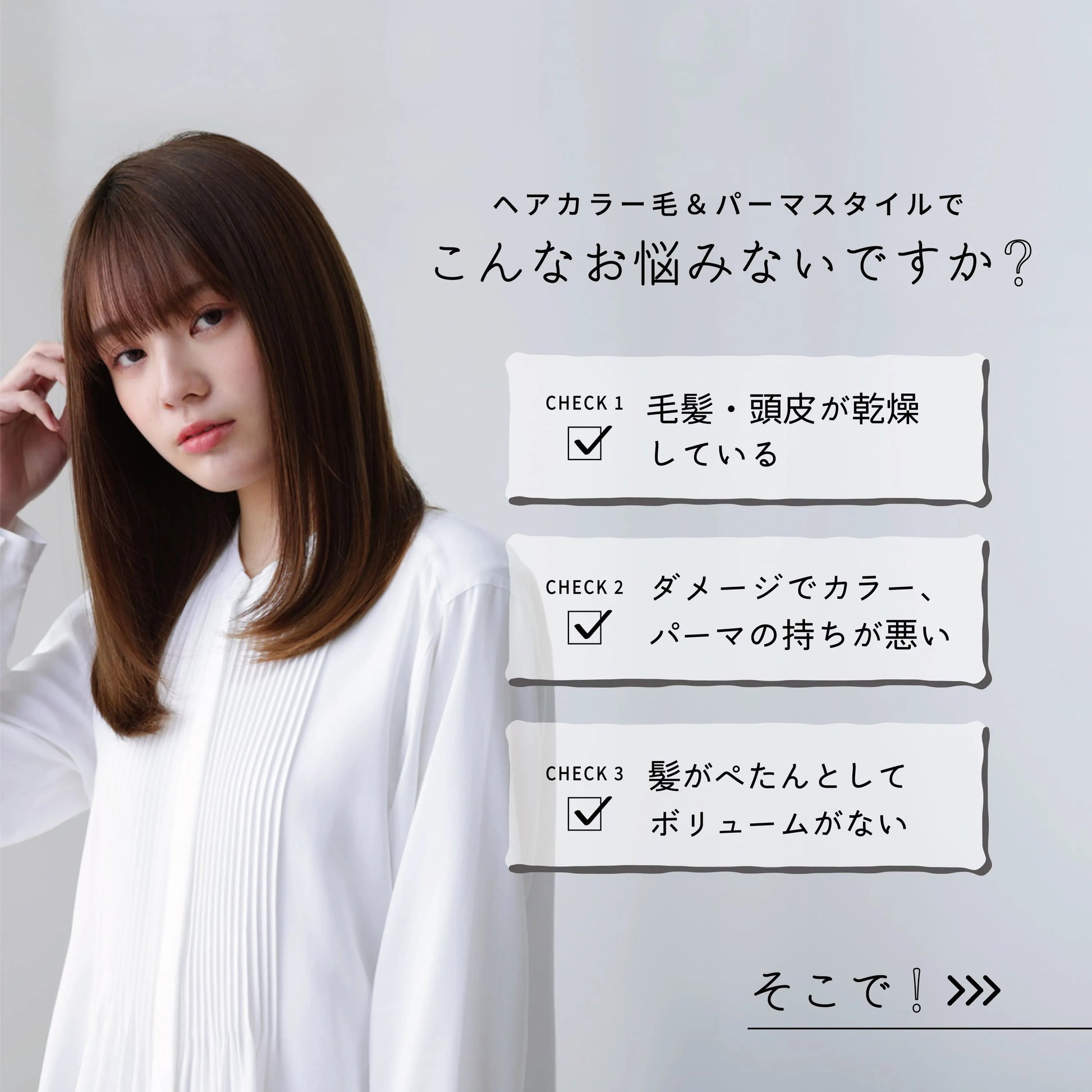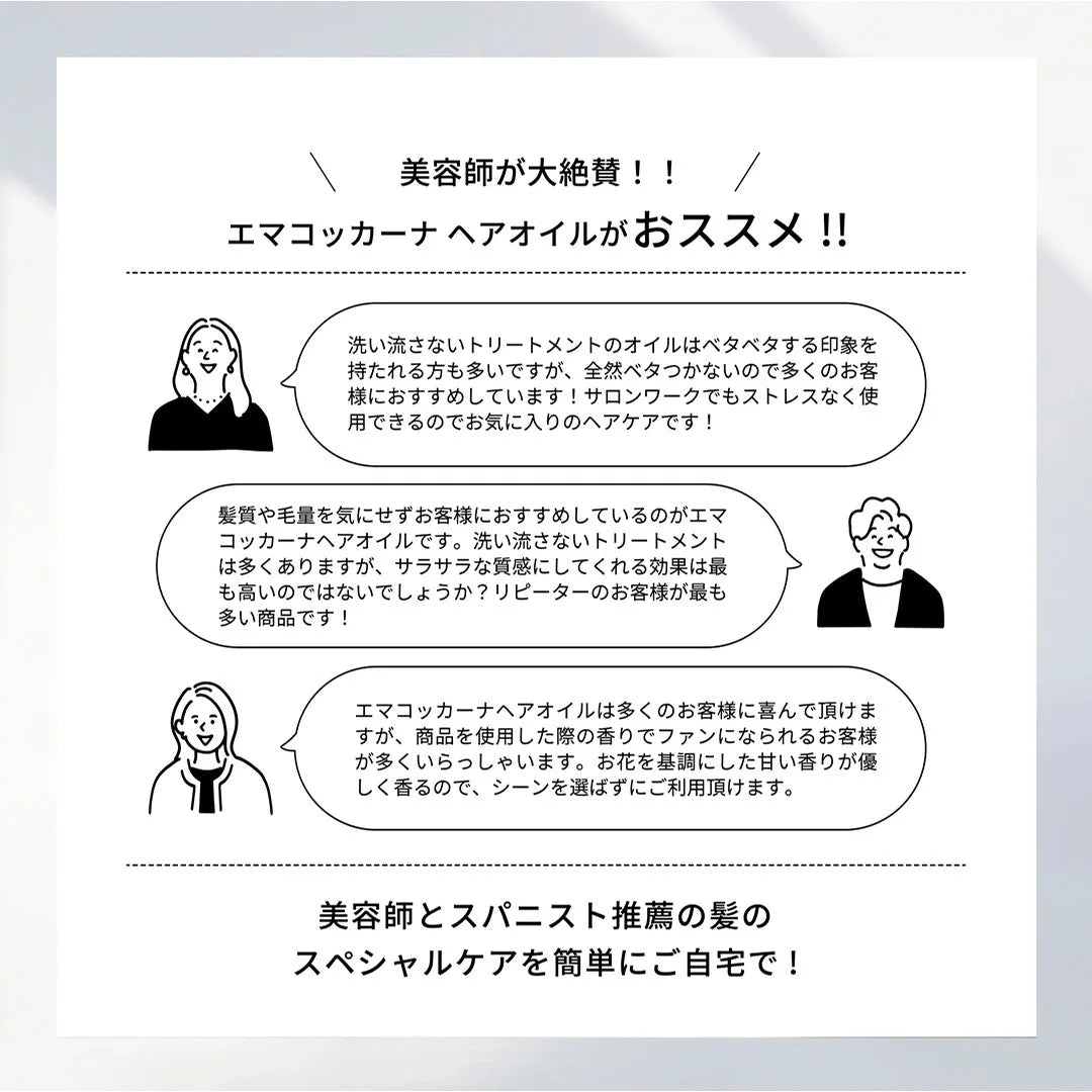 パサつき傷んだ髪を補修し、なめらかでしっとりとした質感へと導きます。
