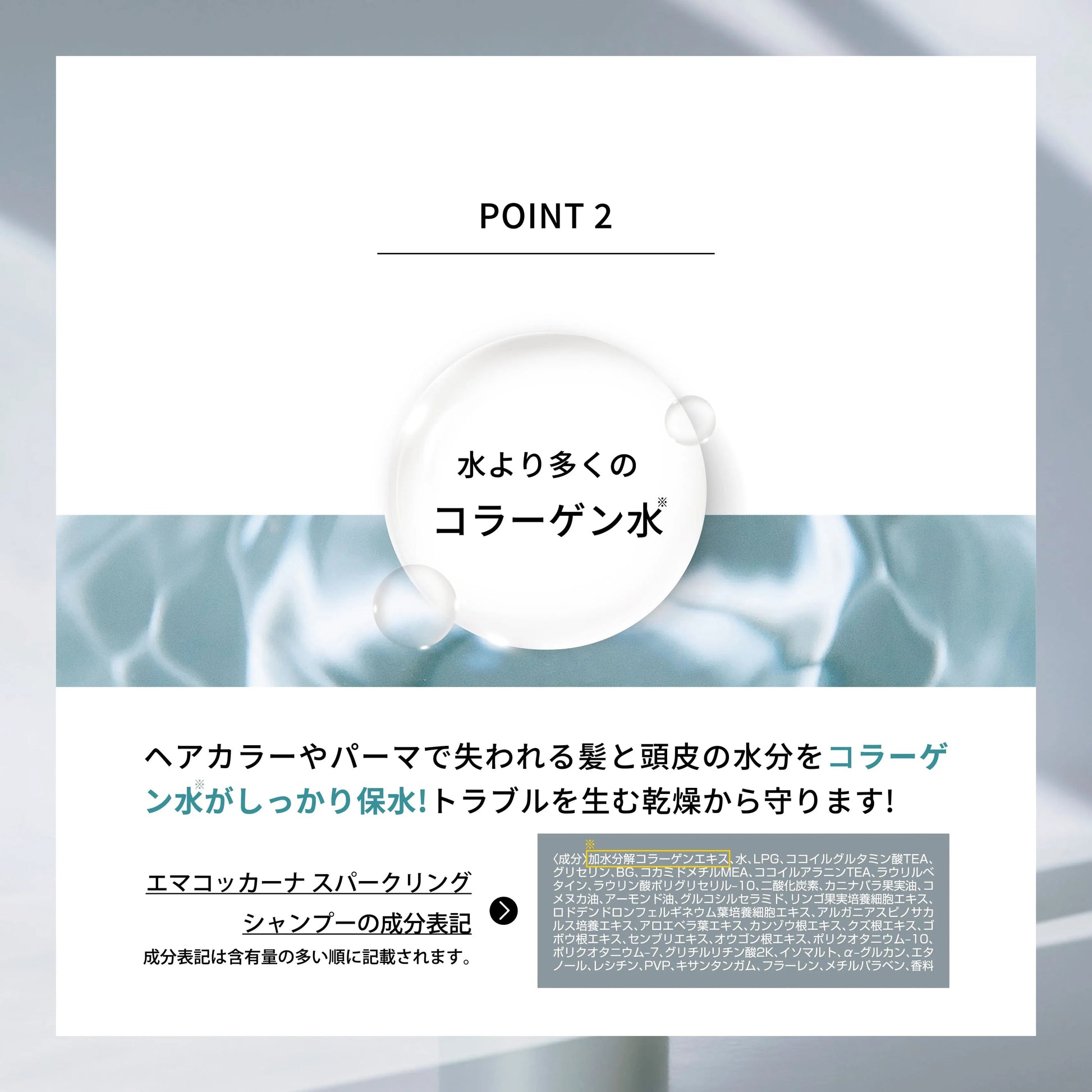 コラーゲン水をベースにした炭酸シャンプー。