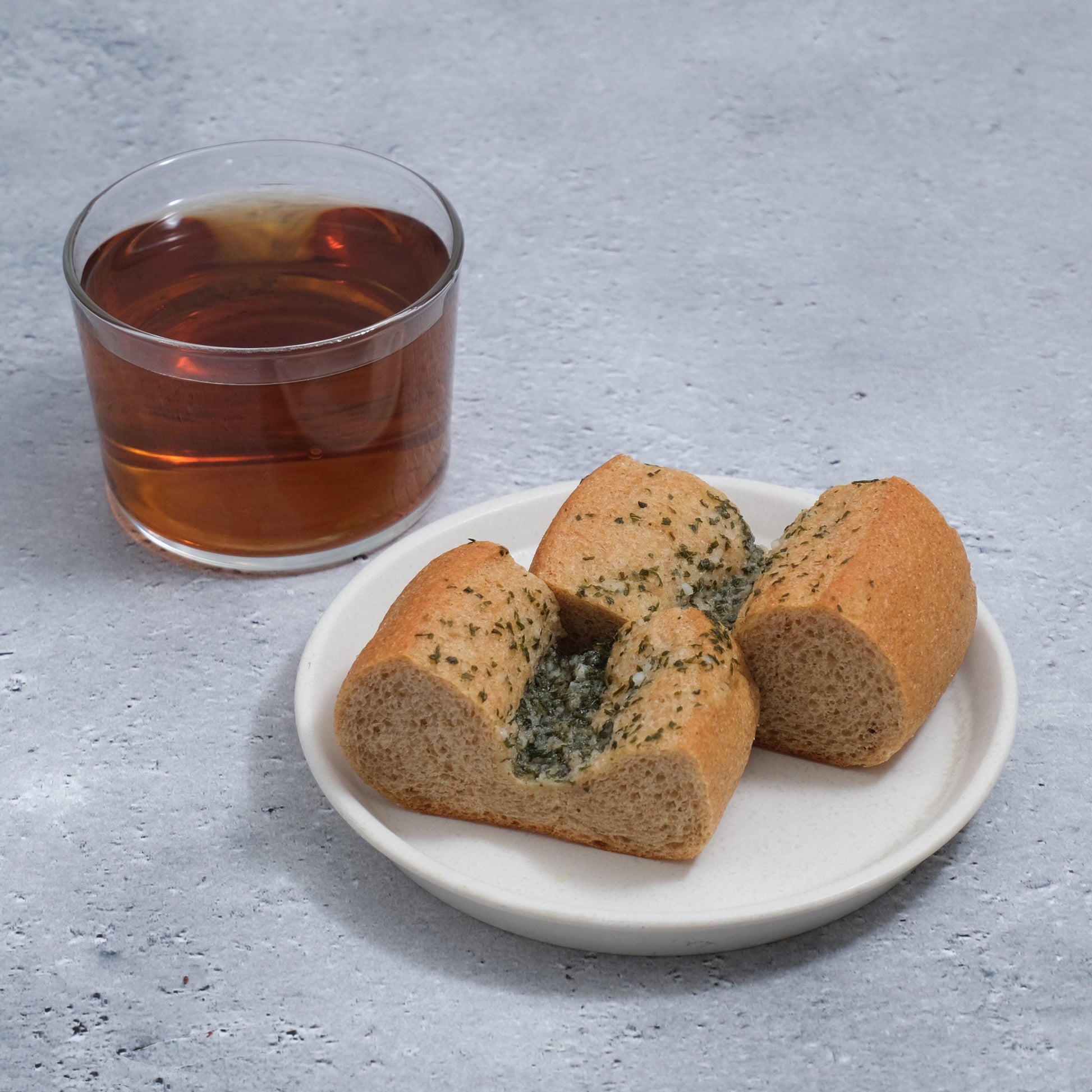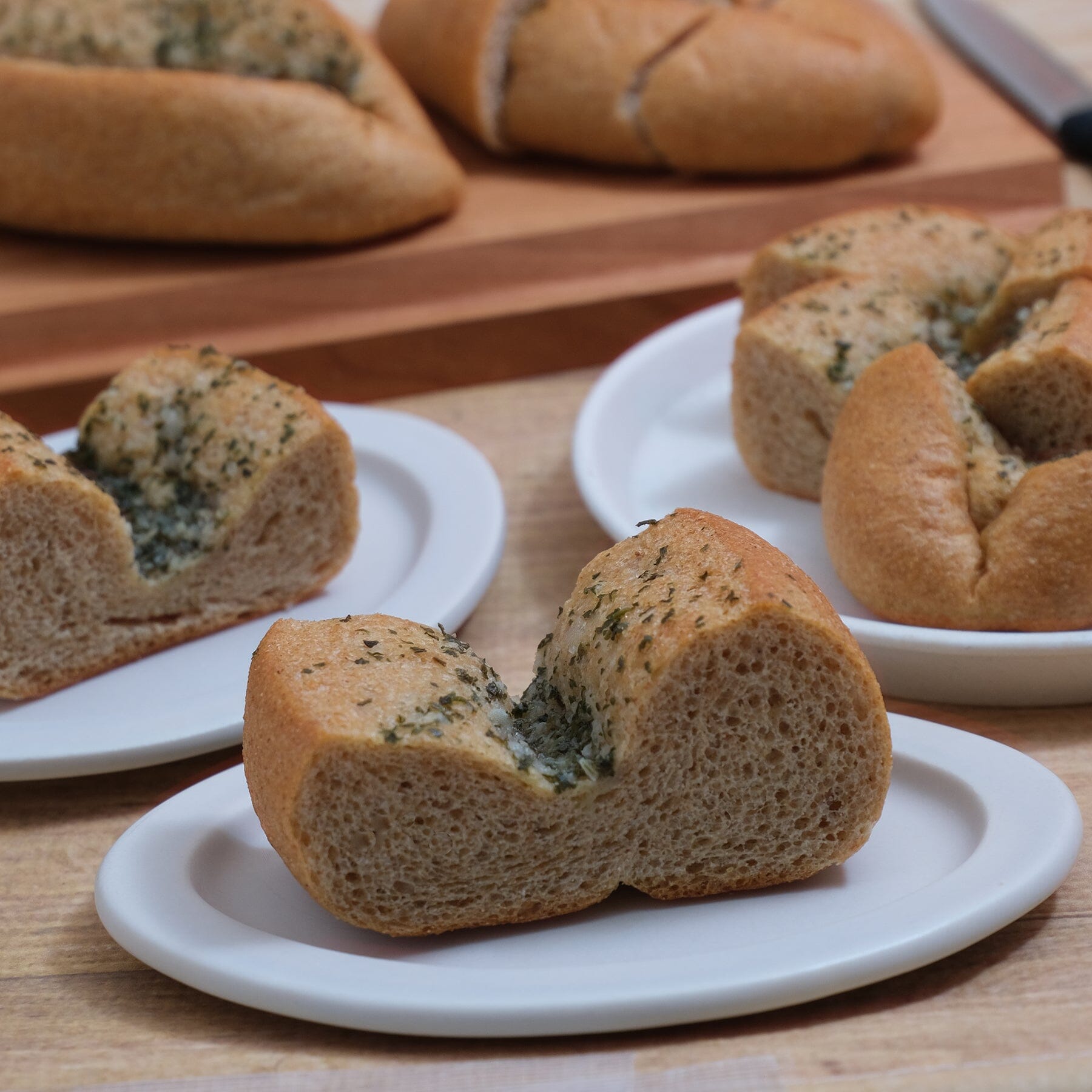 フスボンのパンにガーリックと濃厚なバターをしみ込ませた香り高いガーリックバターブレッドです。
