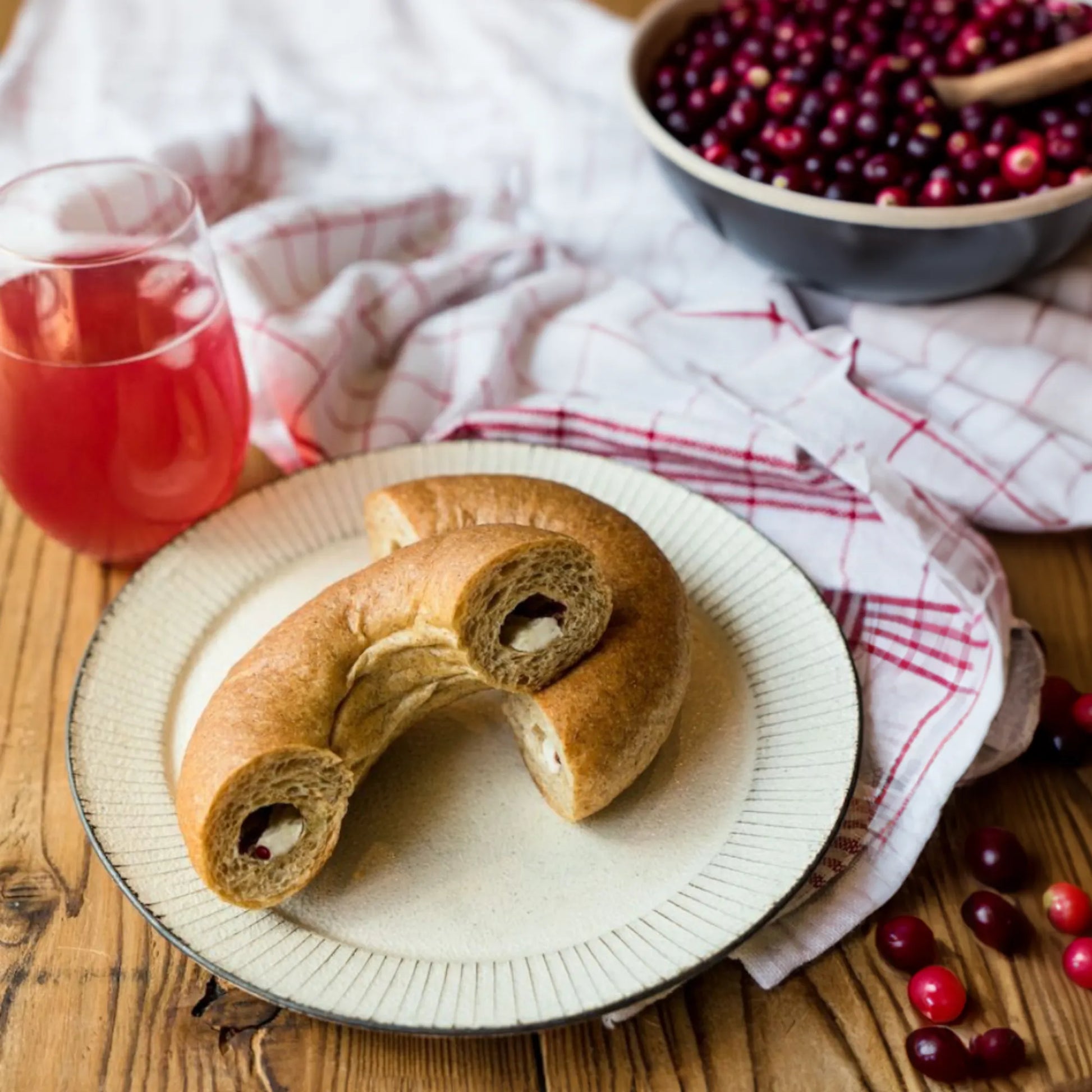 爽やかな甘みのクランベリーと、濃厚で滑らかなクリームチーズが絶妙なバランスを奏でるクランベリークリームチーズベーグル。ひと口食べるたびに、甘酸っぱいクランベリーのフルーティーな味わいと、リッチなクリームチーズのコクが広がります。朝食やおやつにぴったりの、贅沢な一品です。