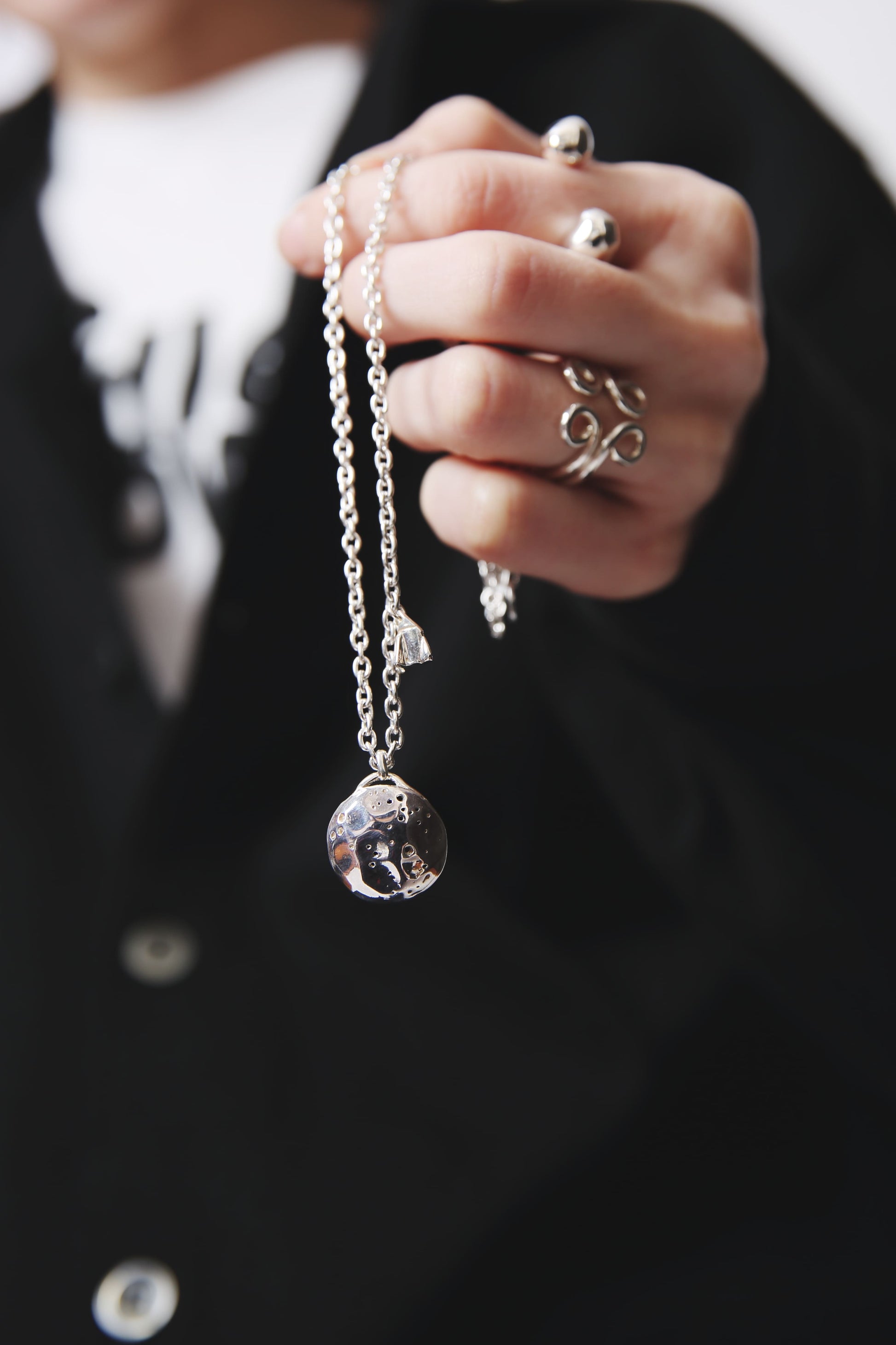 このネックレスを愛用いただいているお客様は、日によって月面に着陸させたり、させなかったりして遊んでいるとおっしゃられていました。