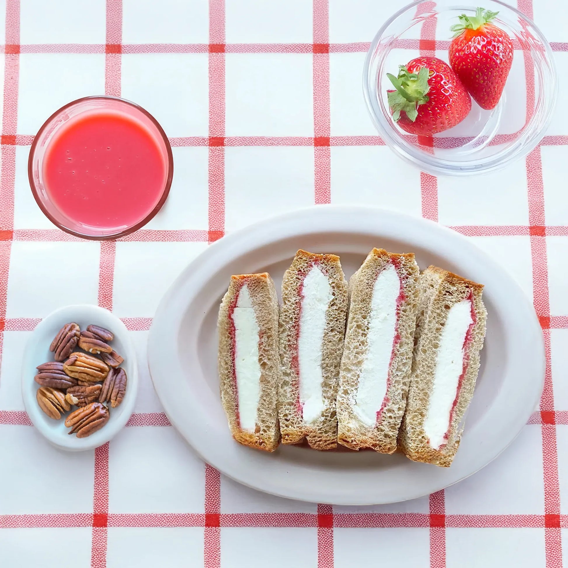 天然甘味料で甘みをつけたフレッシュな国内製造の生クリームと無糖イチゴジャムをフスボンプレーンブレッドでサンド。