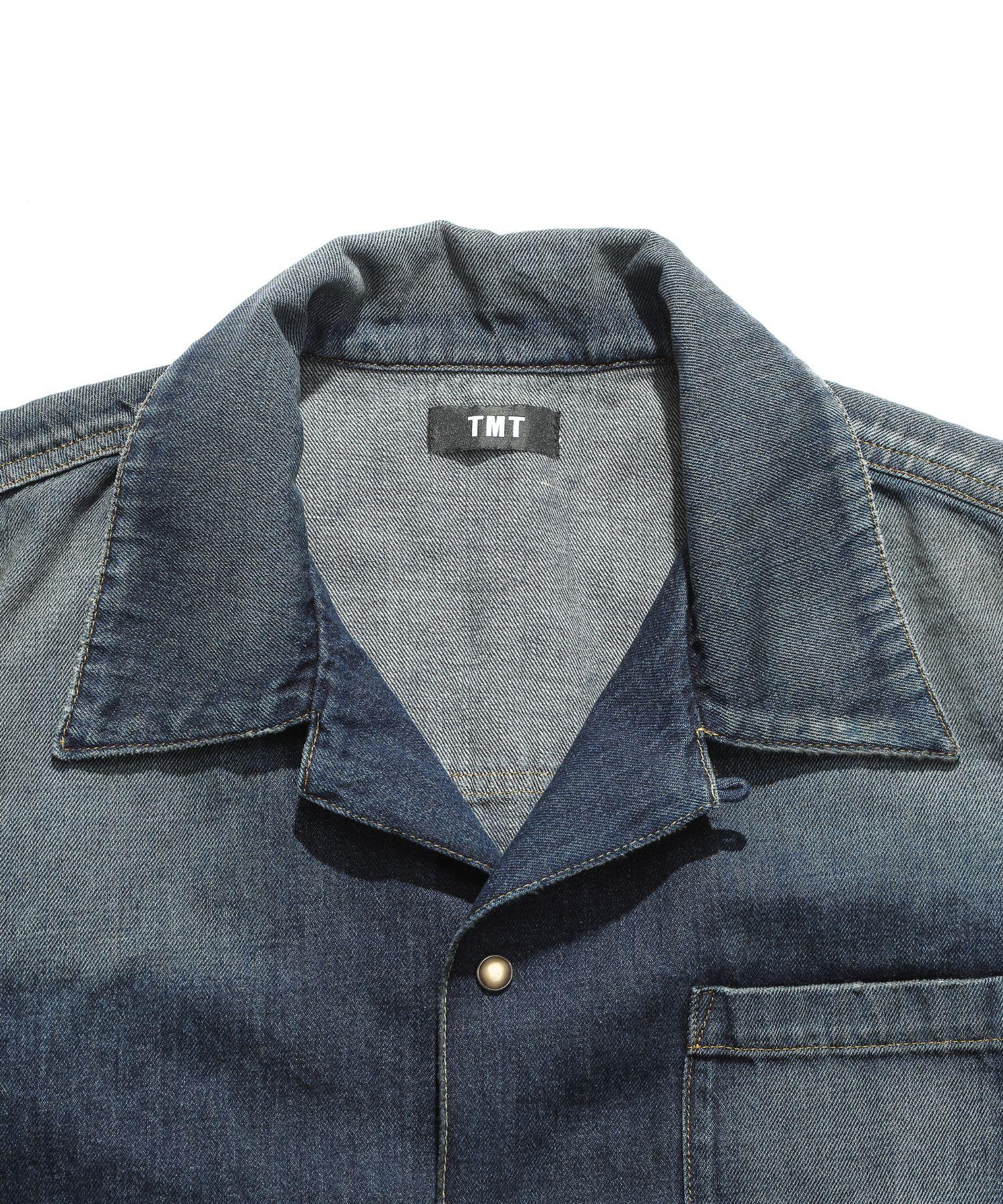 10OZのカイハラデニムを使用し、TMTが得意とするデニム生地を岡山の職人にリアルな加工に仕上げてもらいました。シルエットは大き過ぎず、タイト過ぎないジャストサイズに。肩、脇線には巻き縫いの表チェーン使いを採用しています。