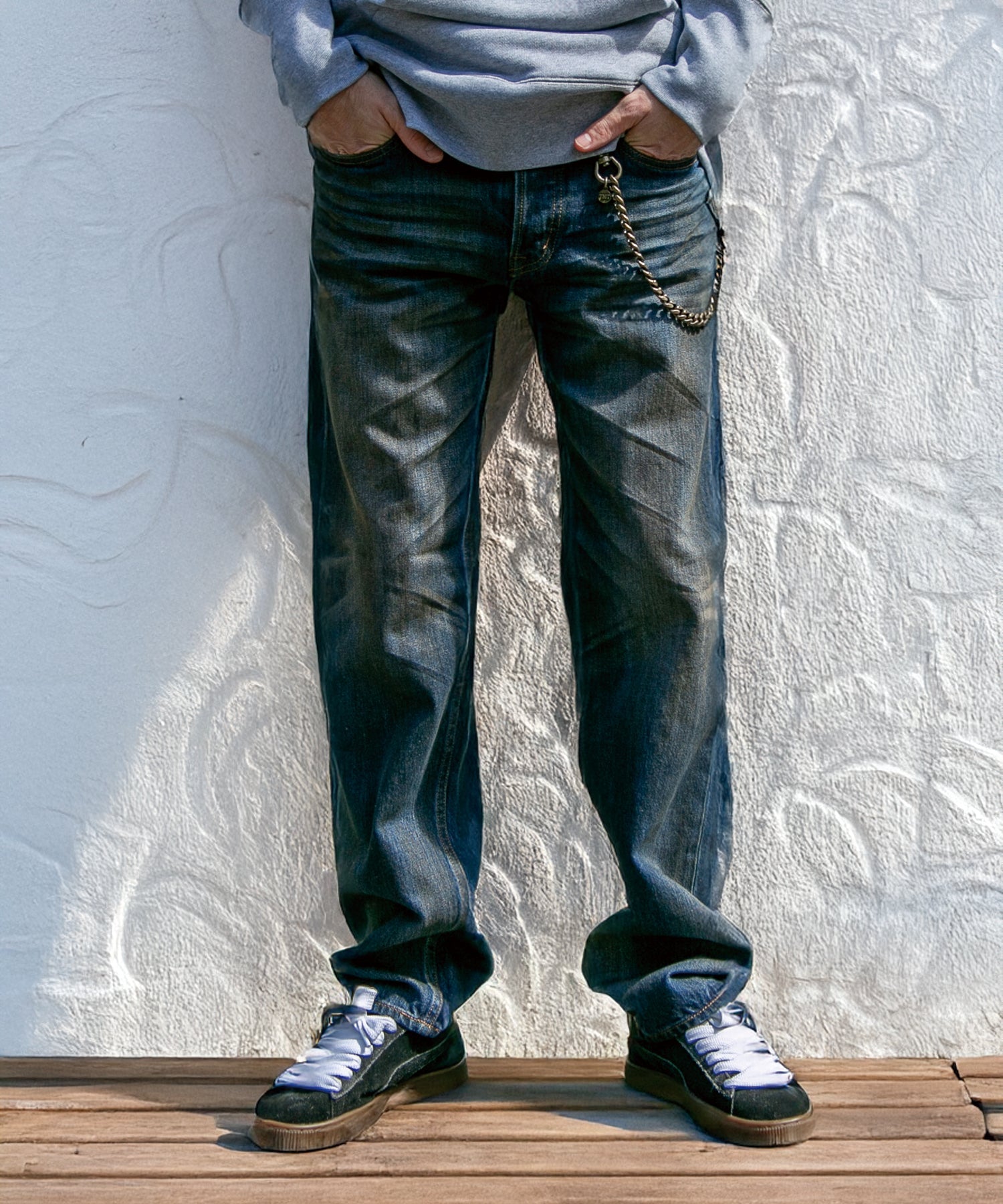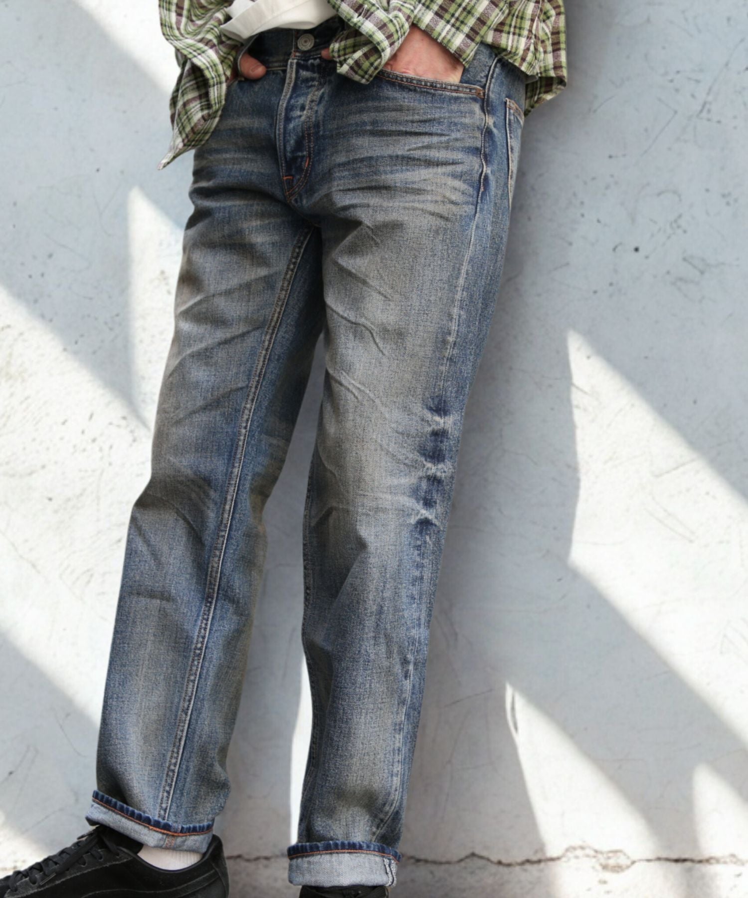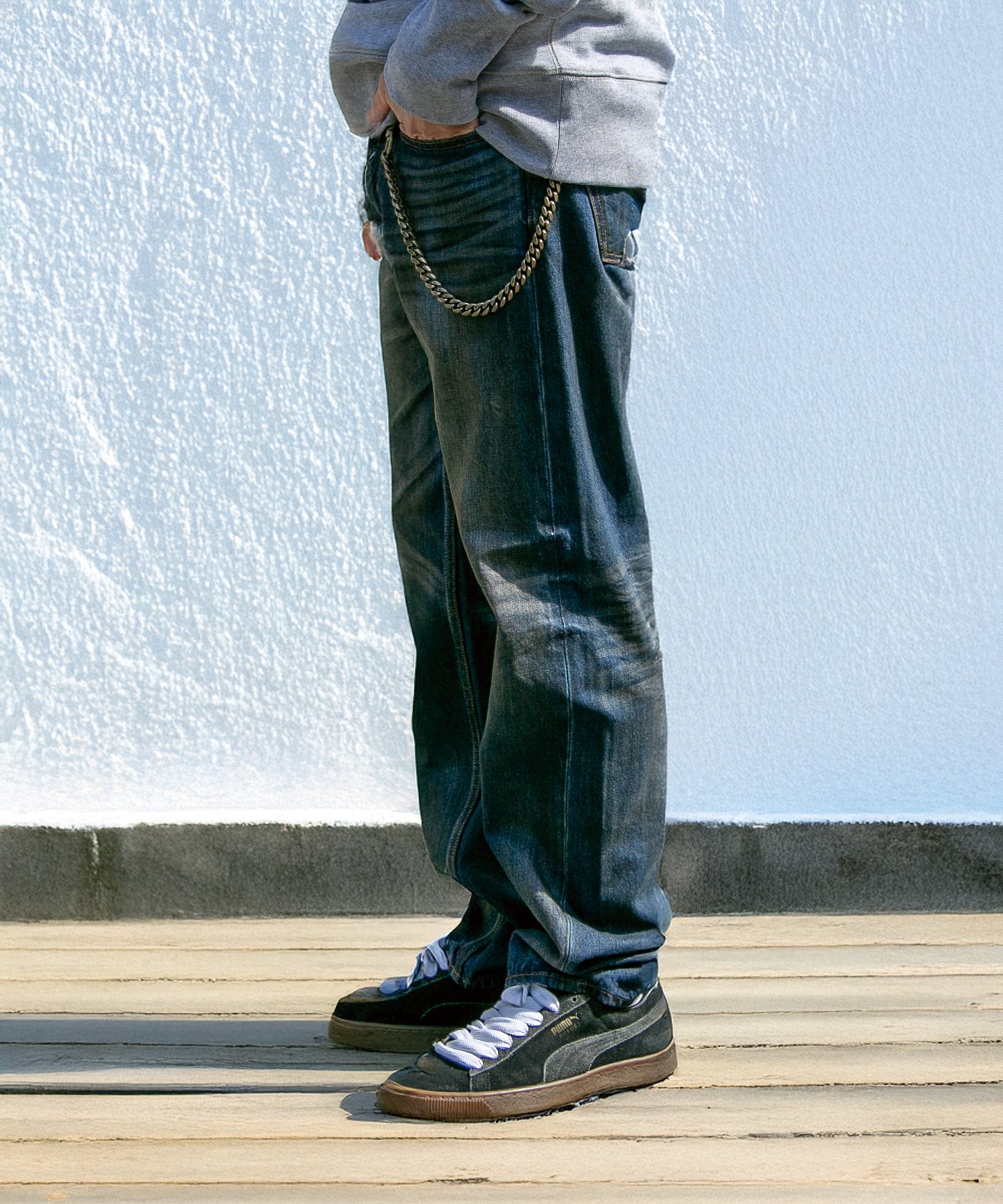 シルエットは、ややルーズなストレートシルエットで裾直し不要の程良い長さのジャストレングス仕様。