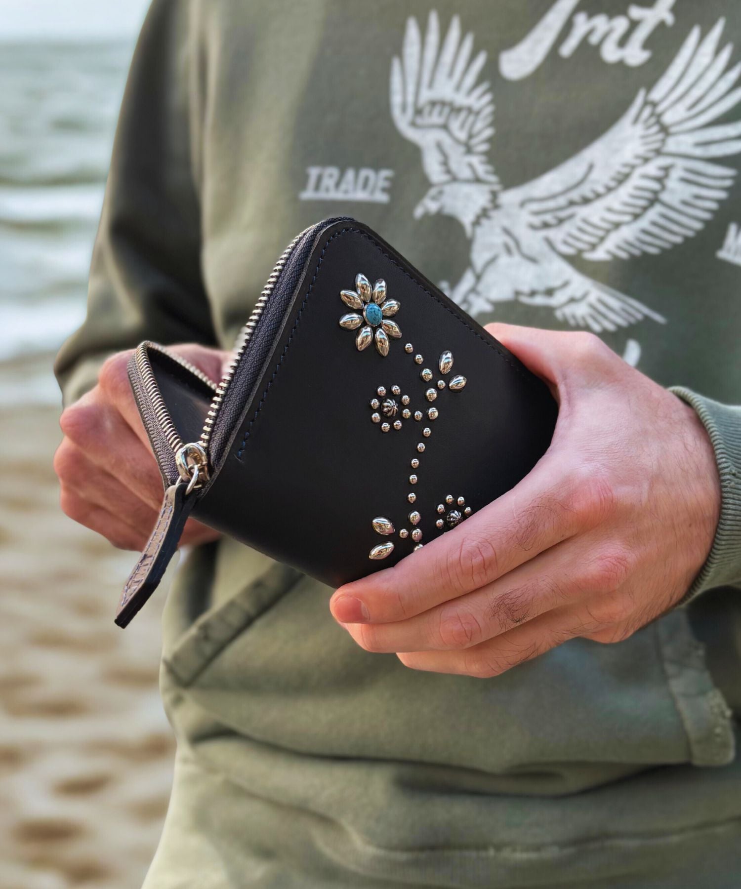 INDIGO LEATHER STADS WALLET (MIDDLE)
