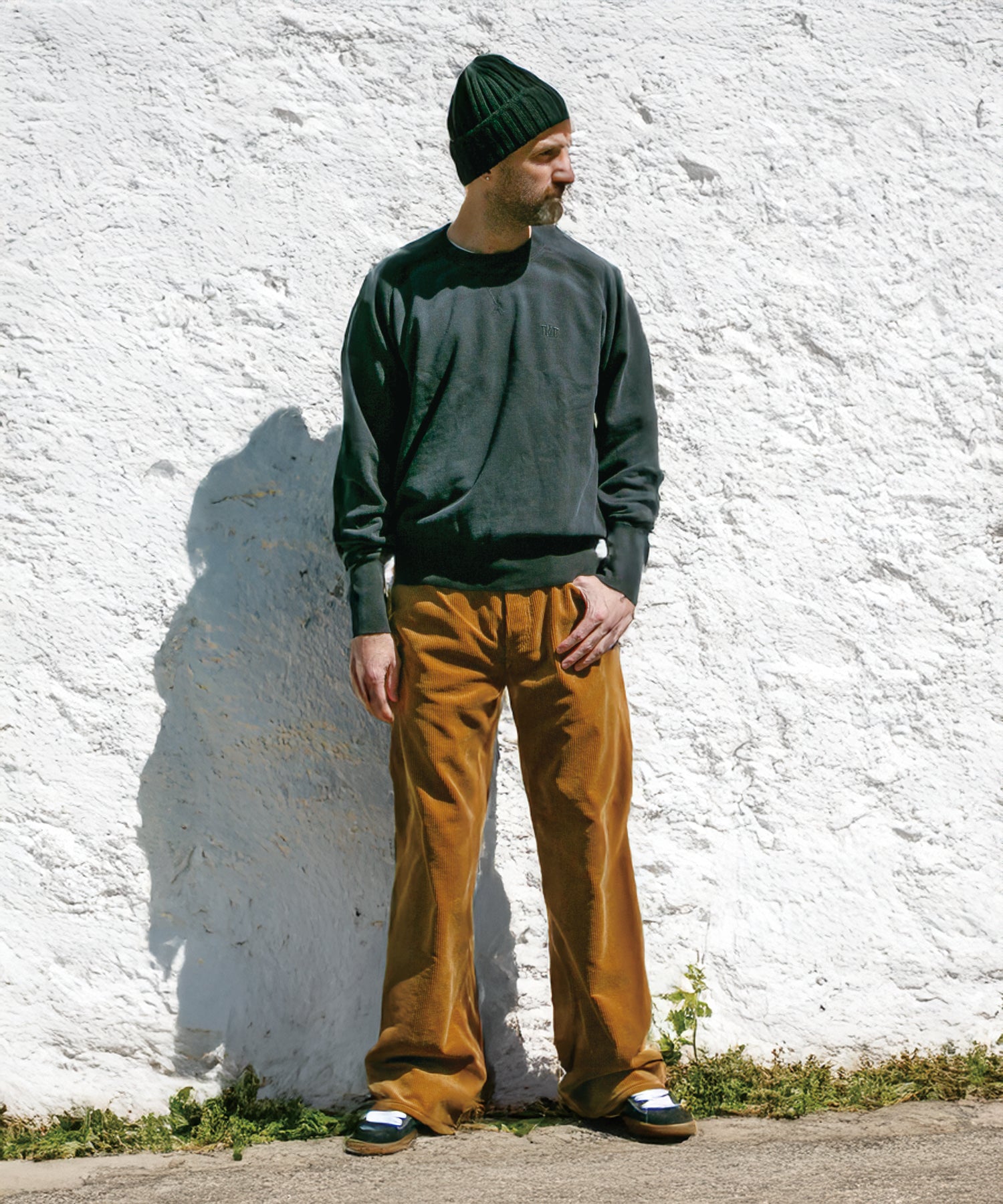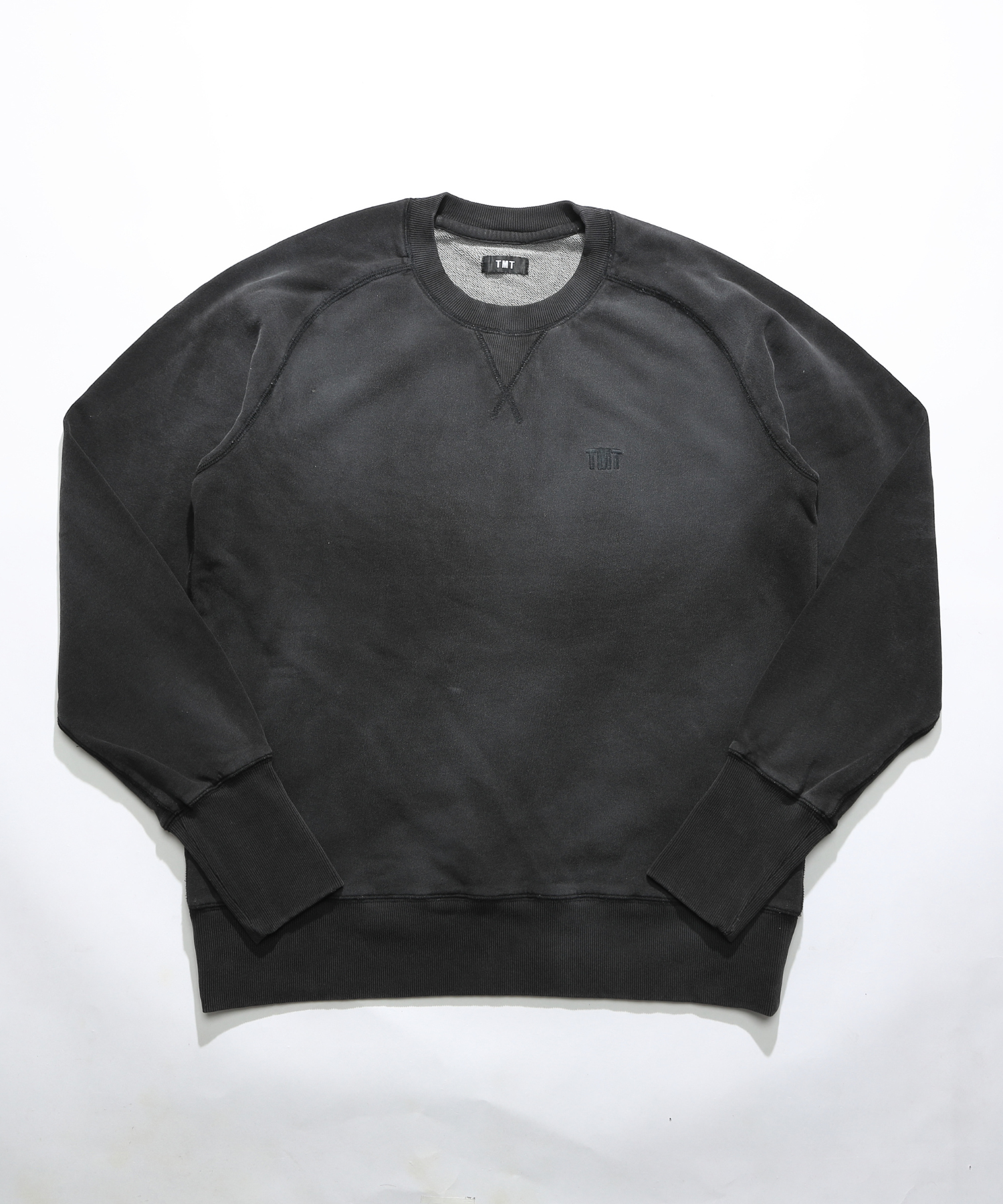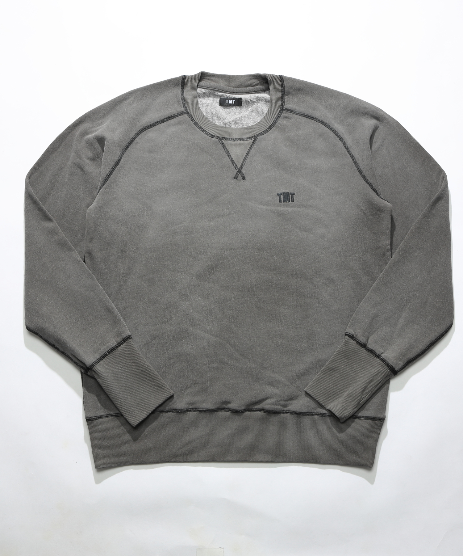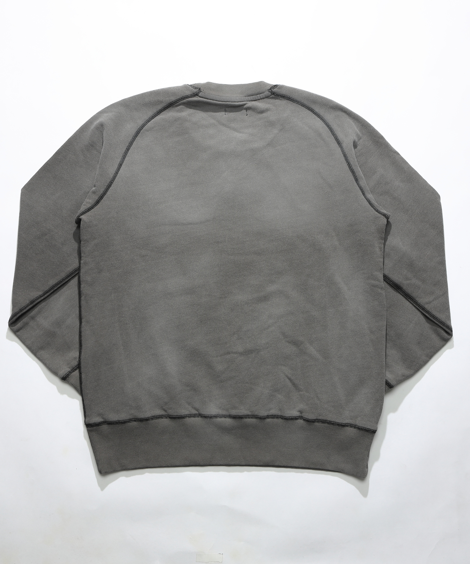 裏毛素材をデニムさながらのヴィンテージ加工で重厚感のある仕上がりにしています。